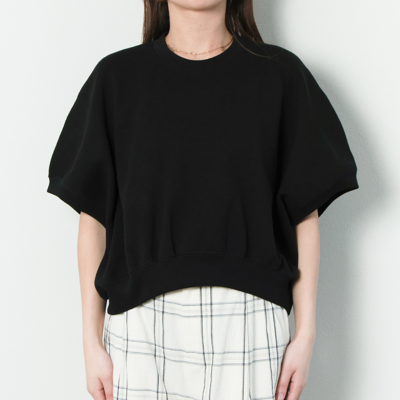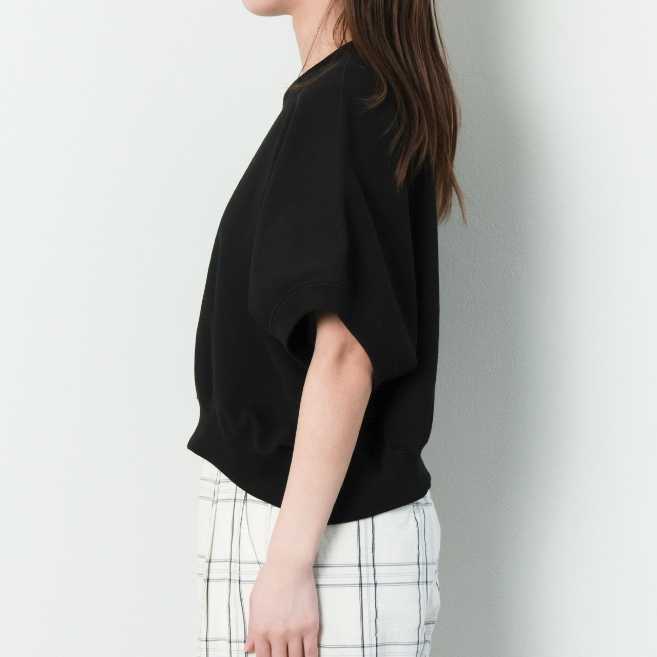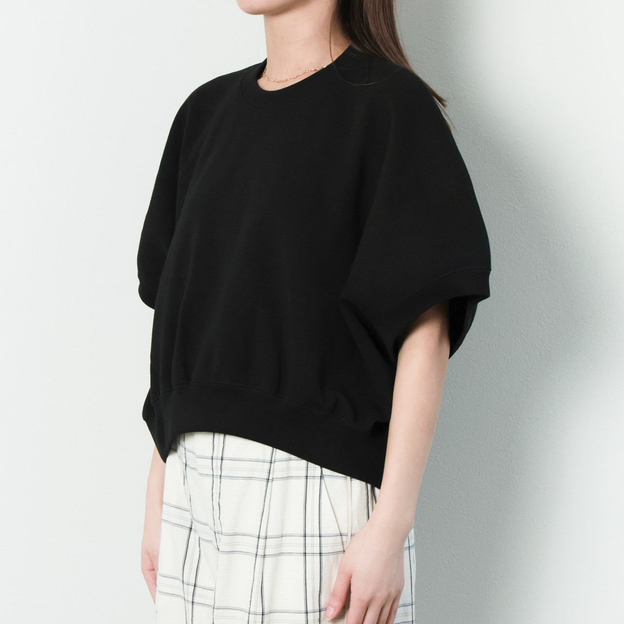 身頃続きのギャザースリーブから生まれる立体的なフォルムとクロップド丈が魅力。ラウンドさせたヘムデザインもポイントの、存在感のある新鮮な一着です。