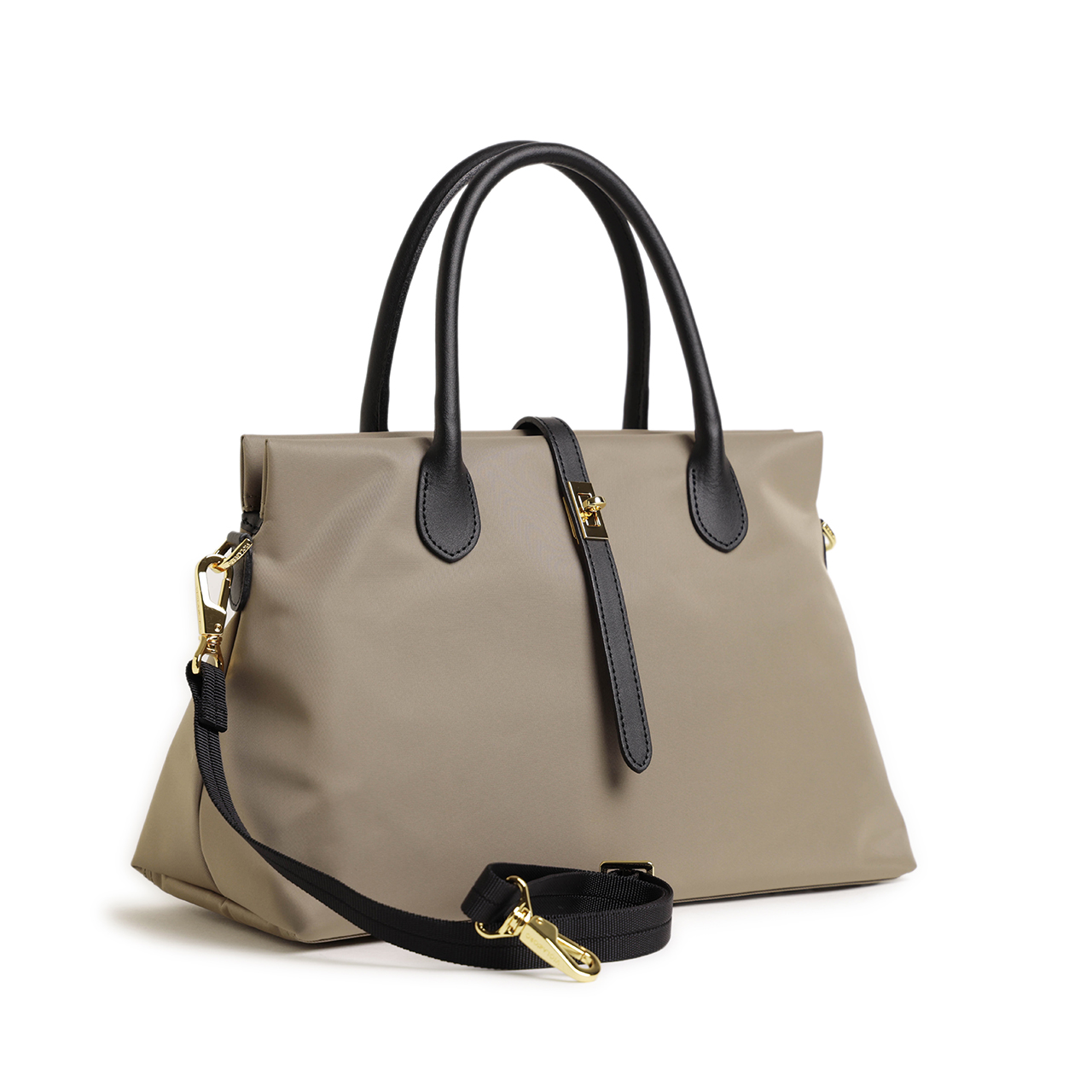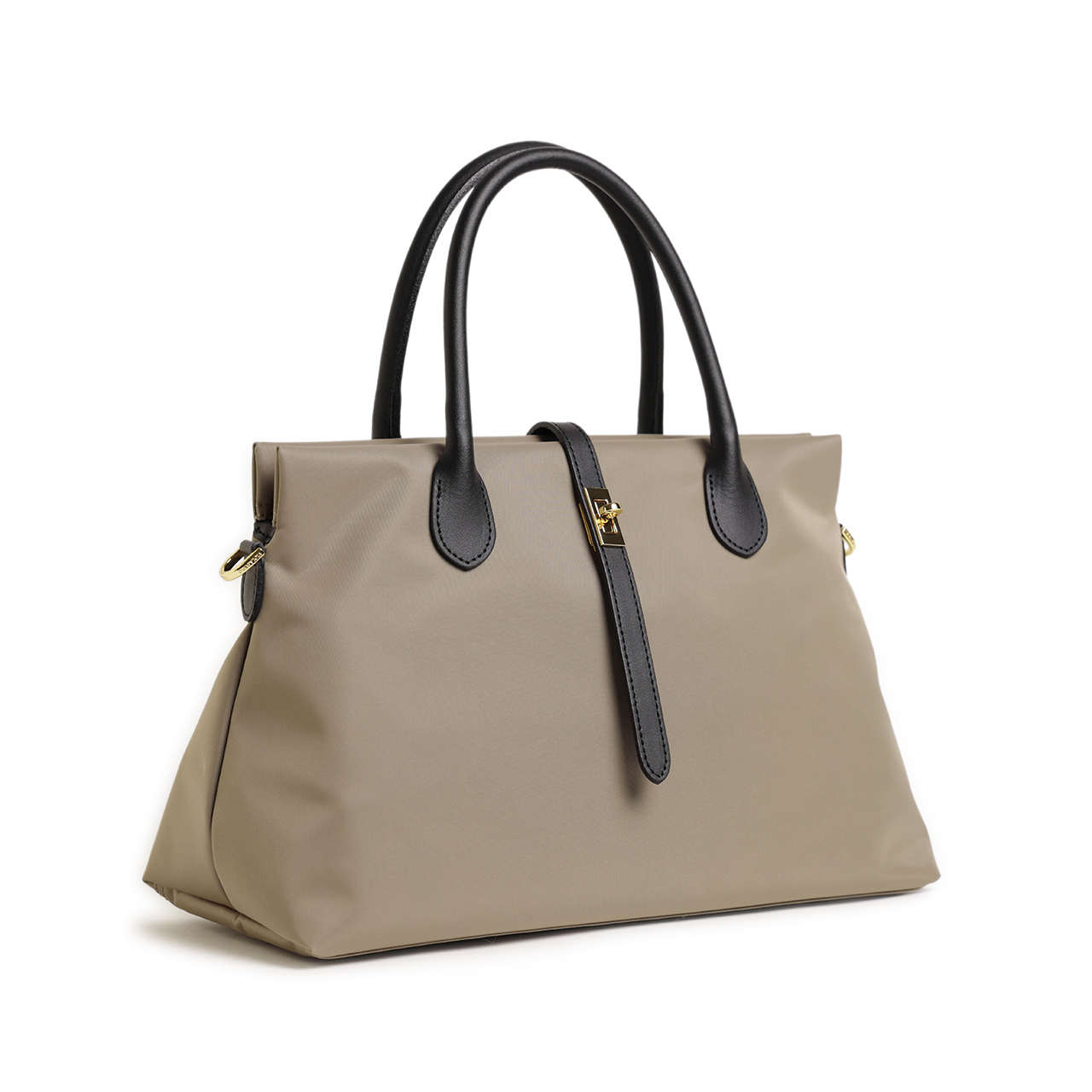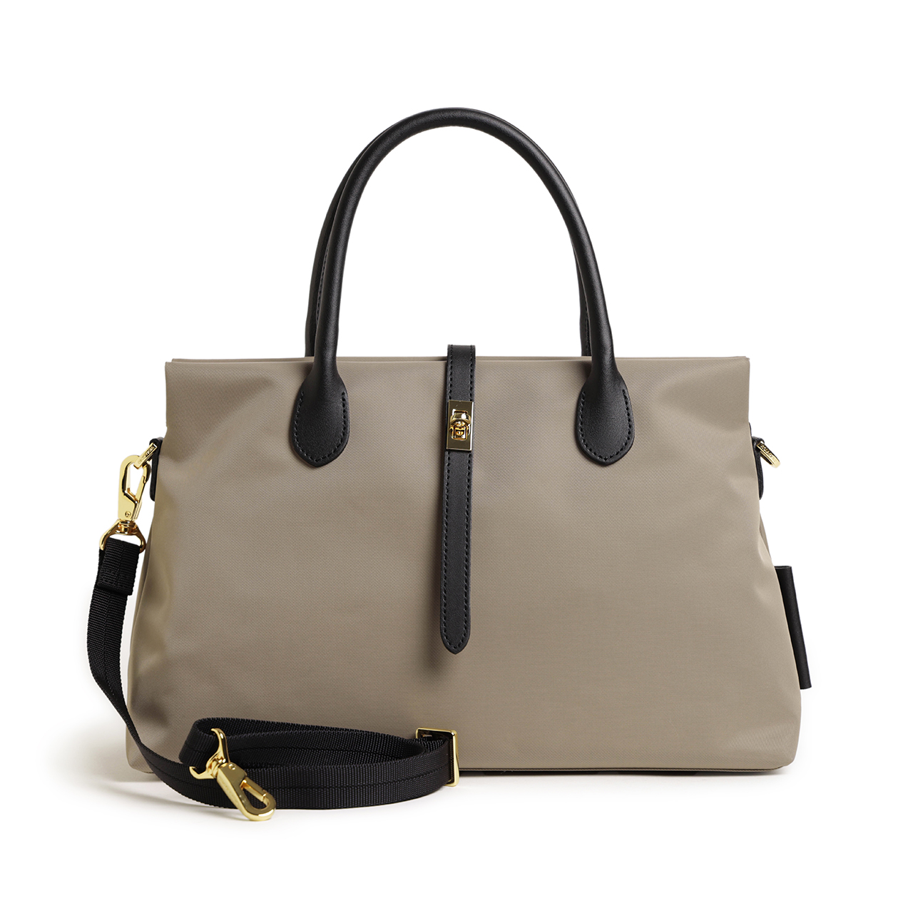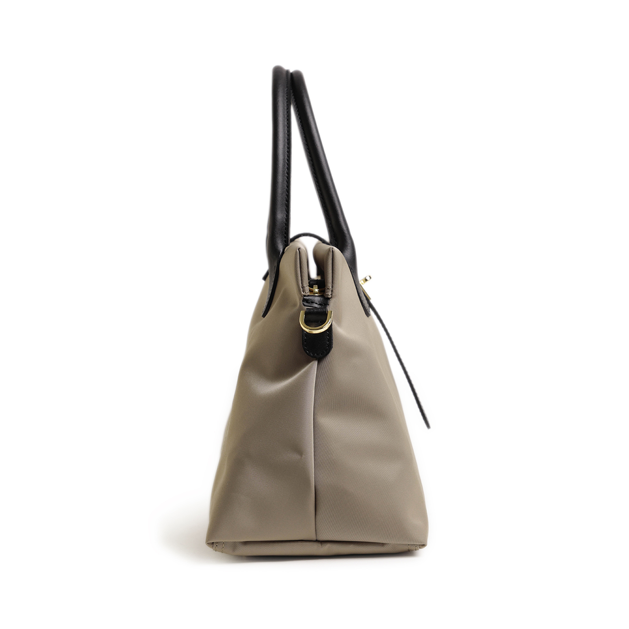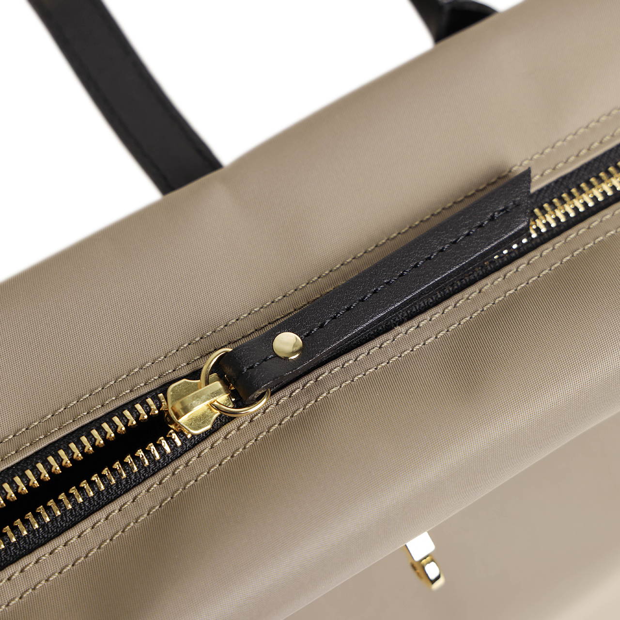 ハンドル、ベルト、ファスナーの引手にはおなじみのイタリアンレザーを使用。しっとりとした感触ときめ細かな革が特徴的です。