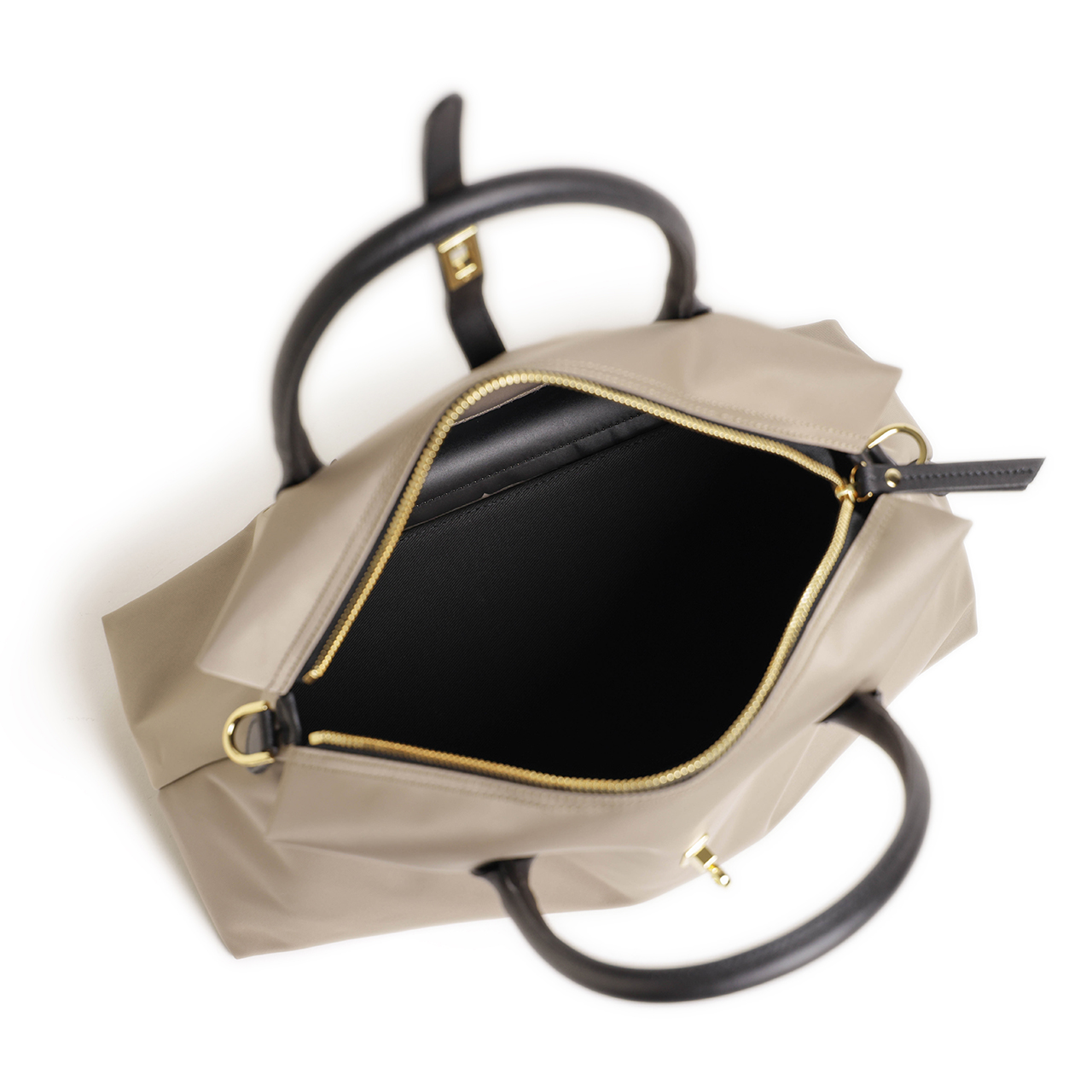 天井部分にジップをつけることで、中から物が落ちたり、他の人に中を見られる心配がないというのもトートバッグの大事なポイント。
