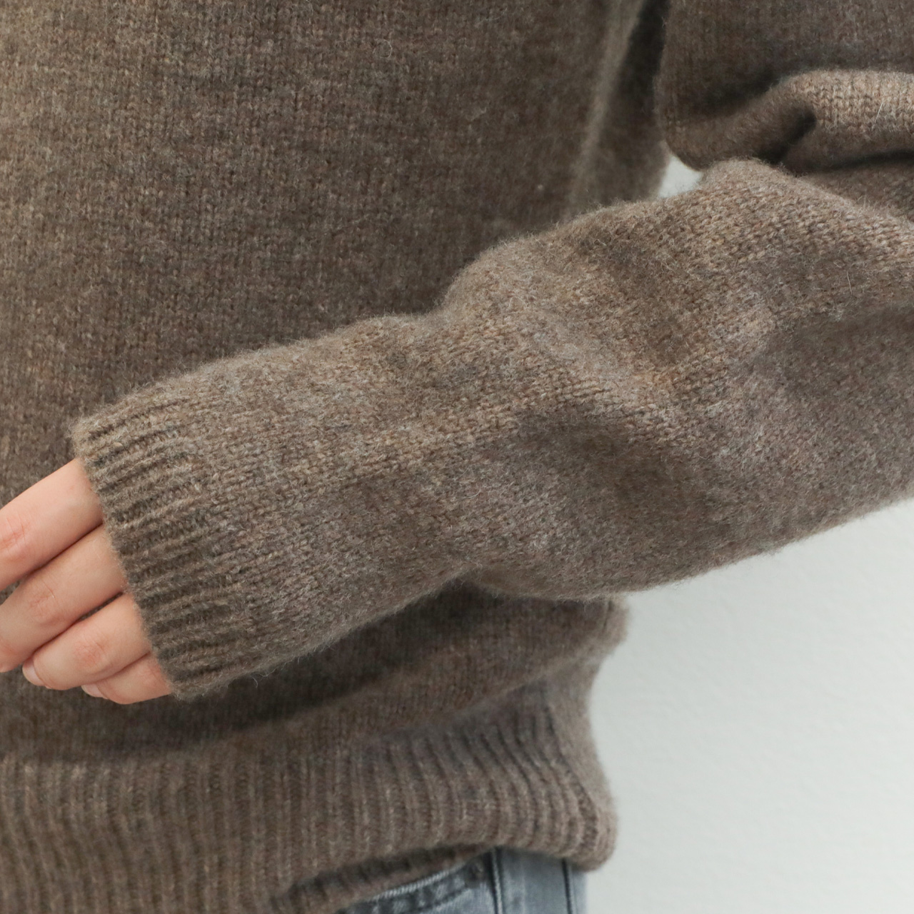 素材はウールをメインにナイロンを混紡した糸を使用。程よい起毛感が秋冬らしい暖かみを感じさせます。