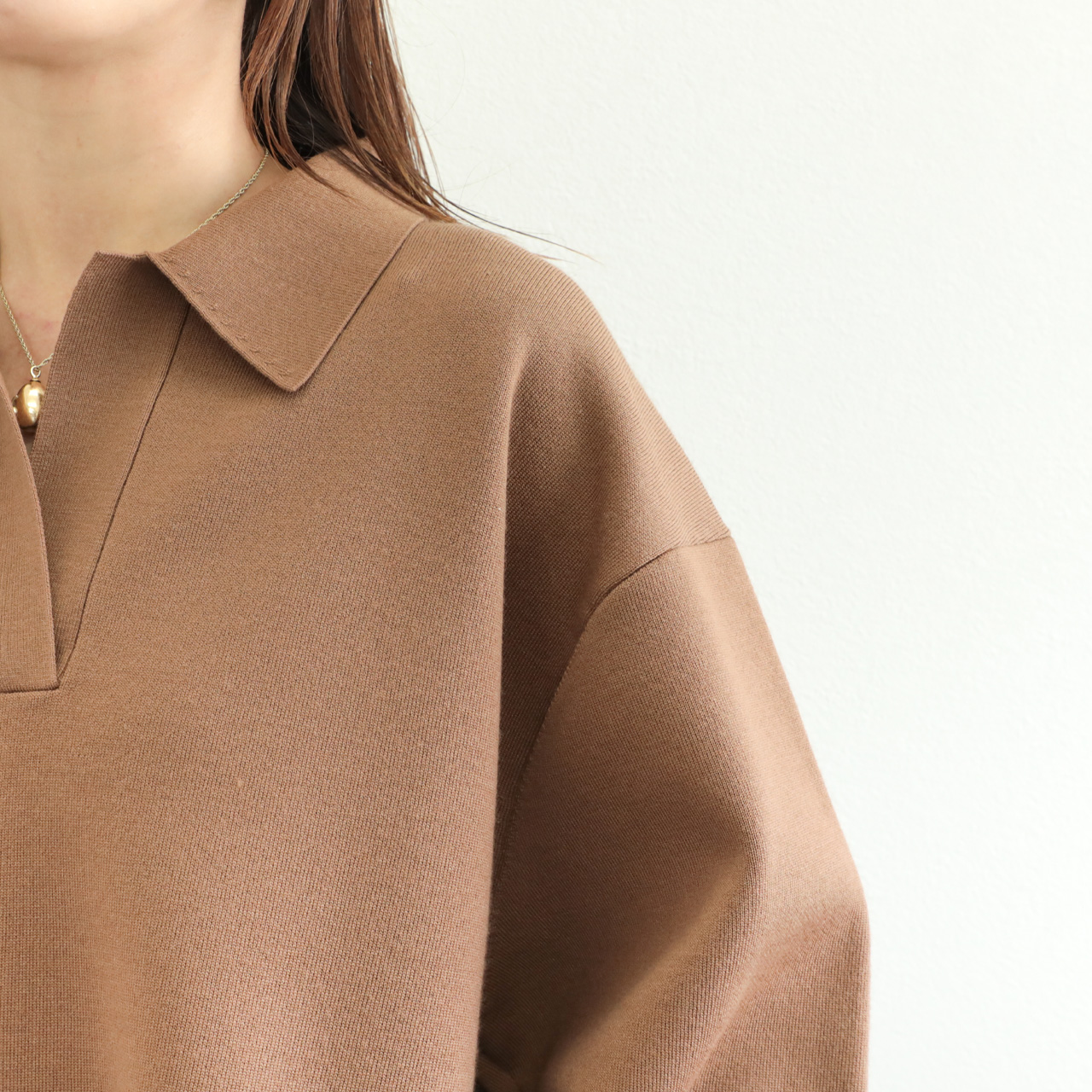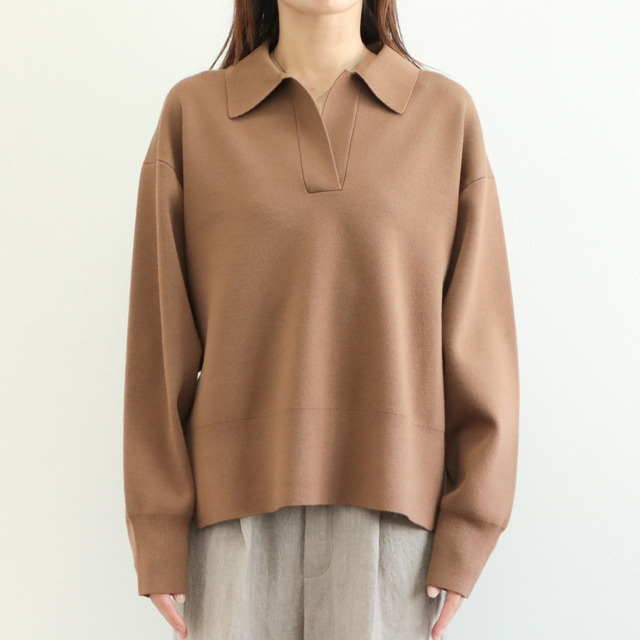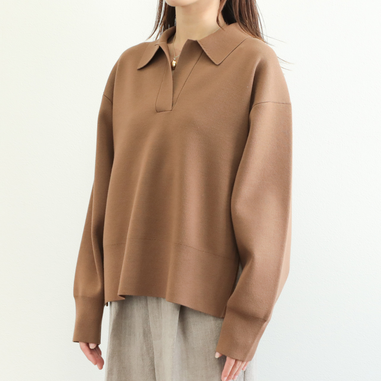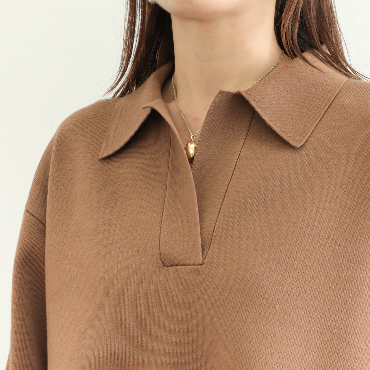 こちらはミラノリブ素材を使用したスキッパーデザインのニット。