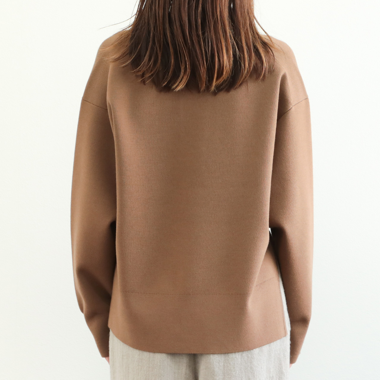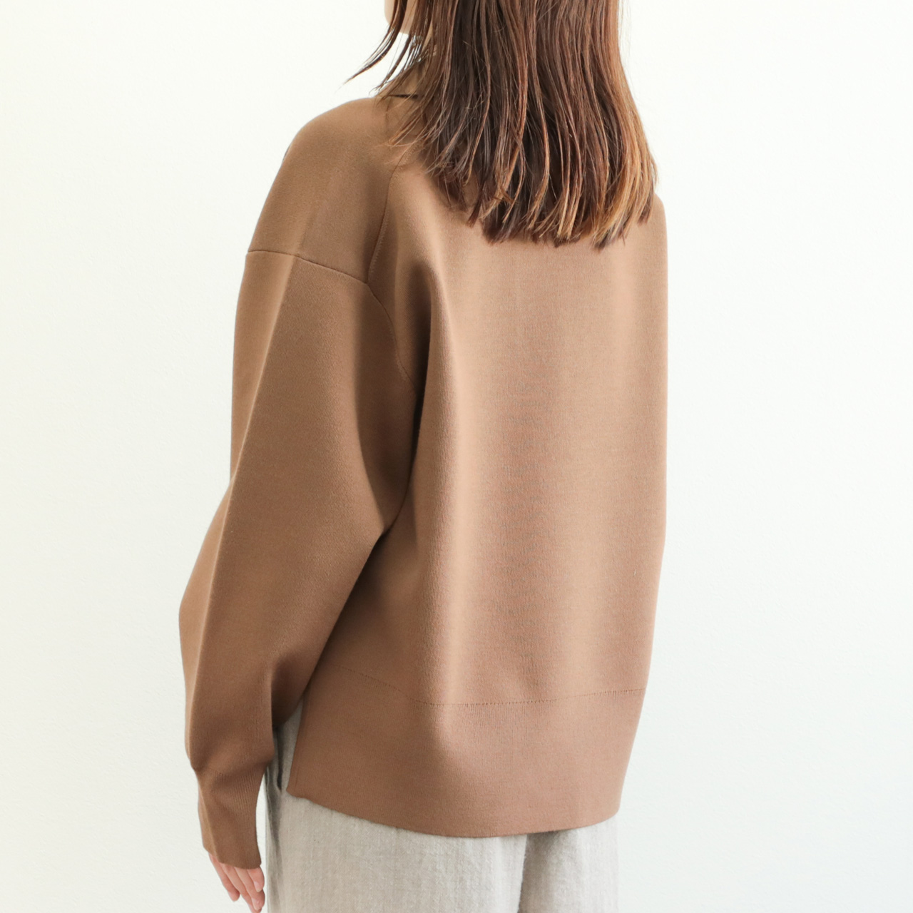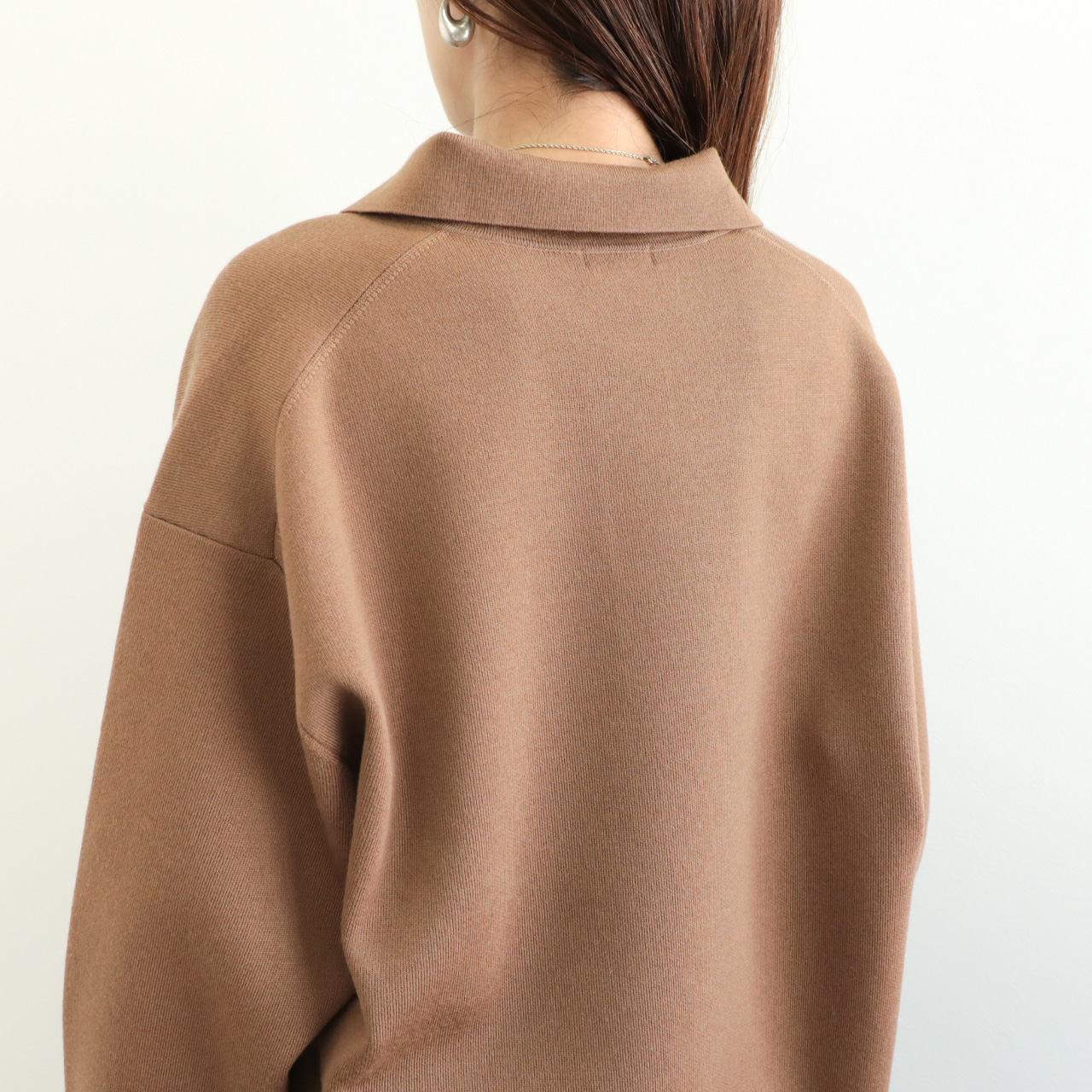 こちらはミラノリブ素材を使用したスキッパーデザインのニット。