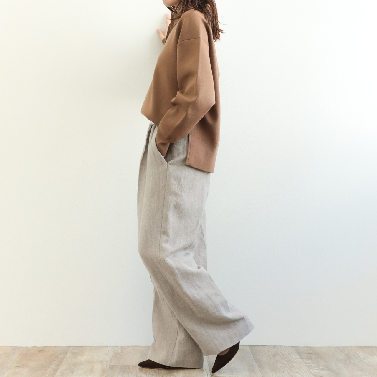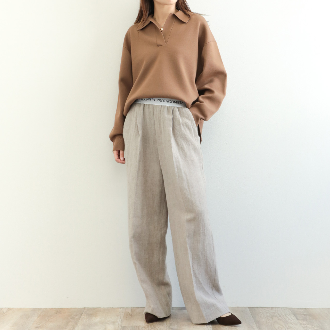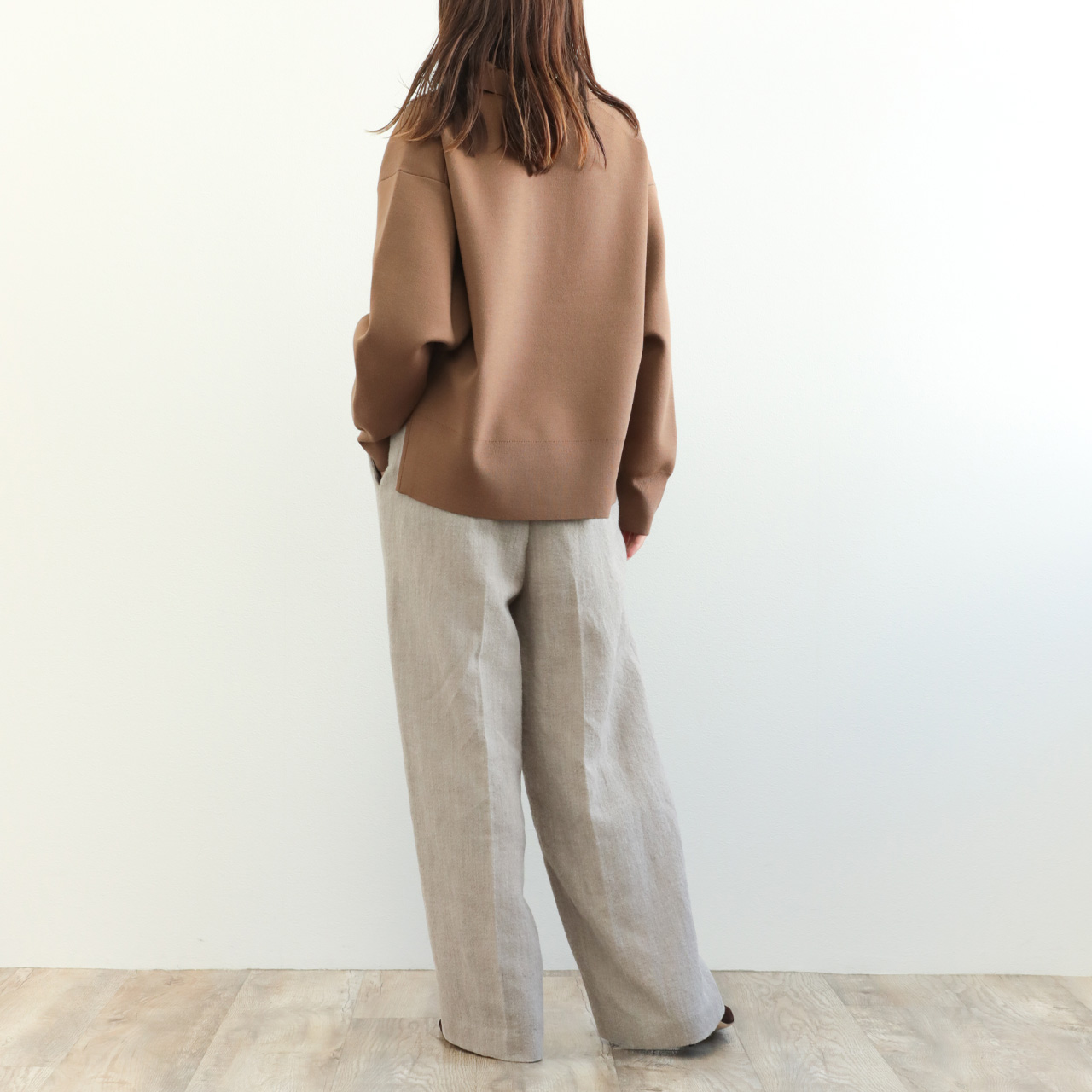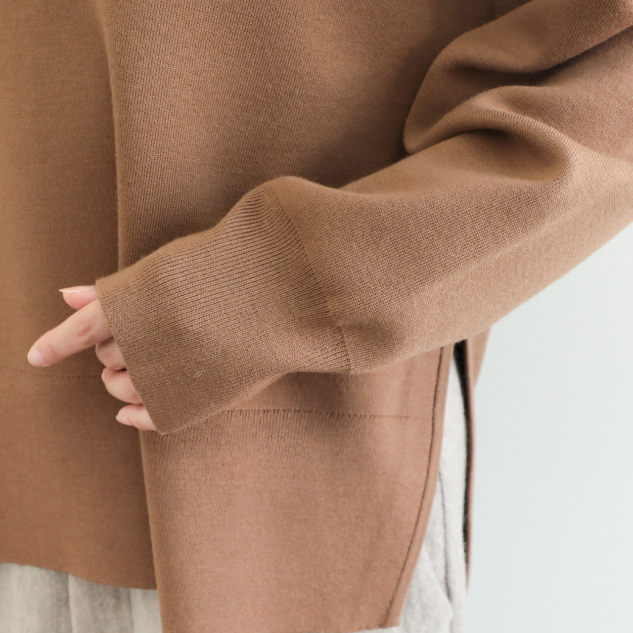 こちらはミラノリブ素材を使用したスキッパーデザインのニット。