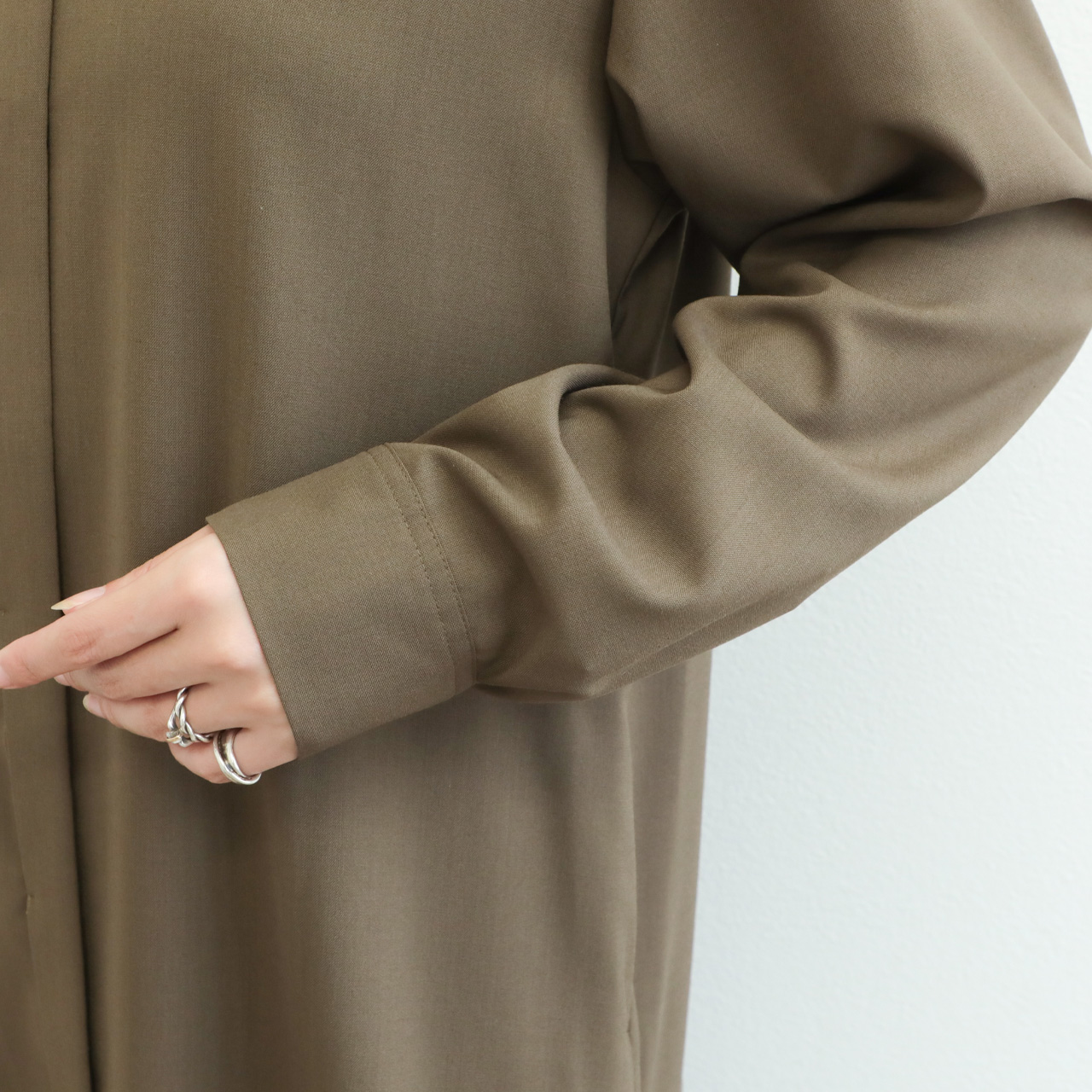 シンプルなデザインになっている分、様々なインナーとのレイヤードスタイルもお楽しみいただけます。