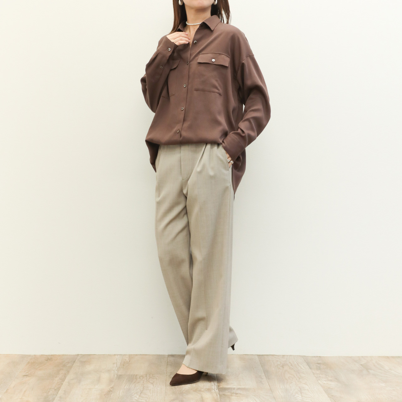 今季は人気のミリタリーシャツが素材を変えて登場。程よく肉感のあるのシャツなので羽織り感があり、長いシーズンに着回しやすいアイテムです。
