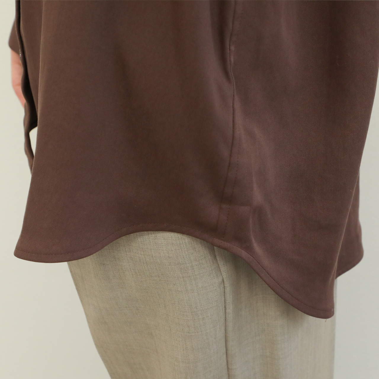 前を開けて羽織としても着用OK。適度なハリでボディラインを拾わずニュアンスのあるシルエットも楽しめます。