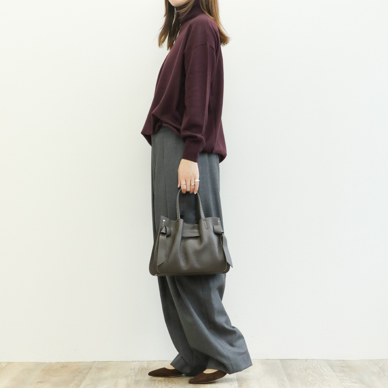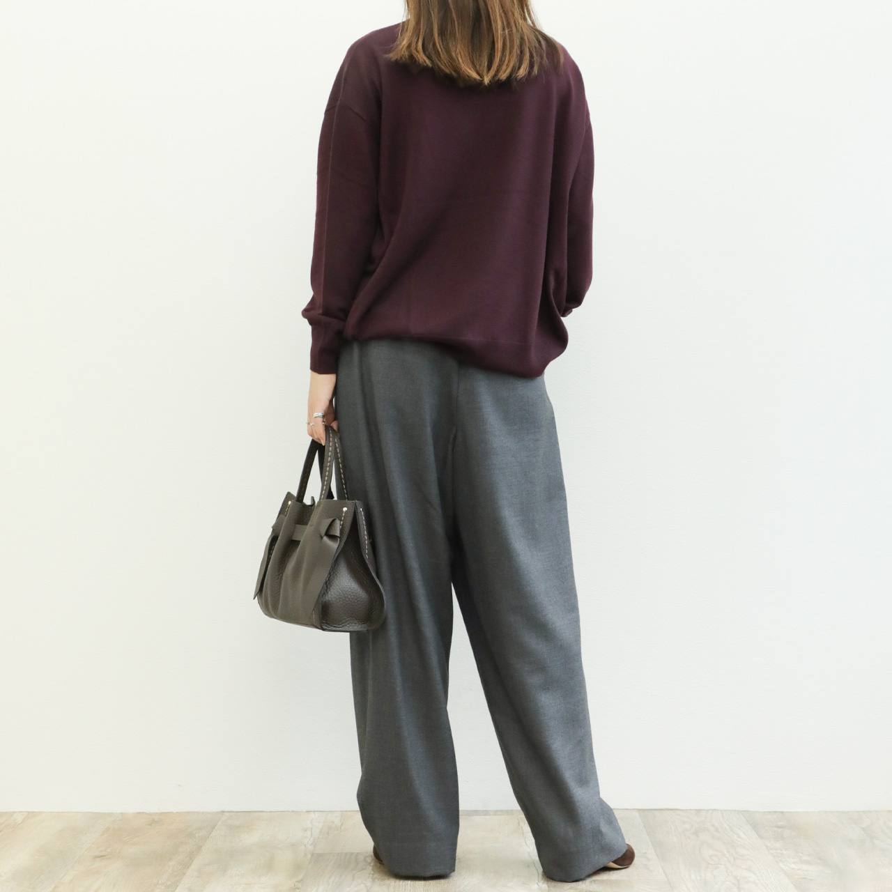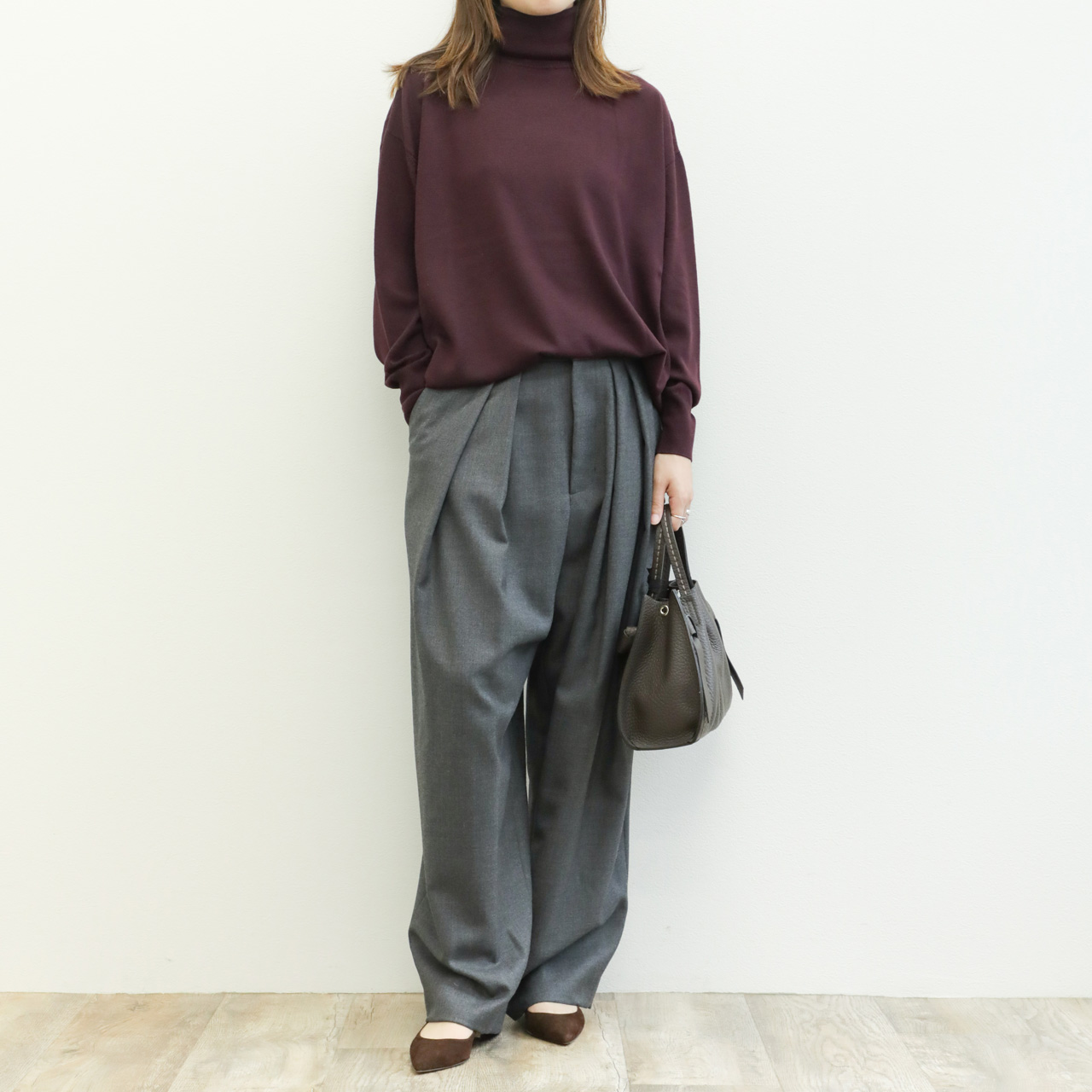 上質なエクストラファインメリノウールを使用したこちらは、絶妙なゆとりのオーバーサイズ感がポイント。