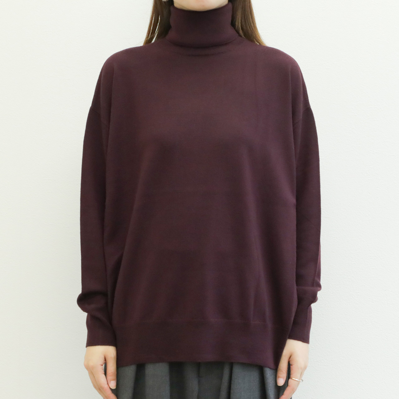 SACRA サクラ ニット タートルネック ビッグシルエット エクストラファイン メリノウール EXTRAFINE MERINO TOP 125536081 BURGUNDY/バーガンディ