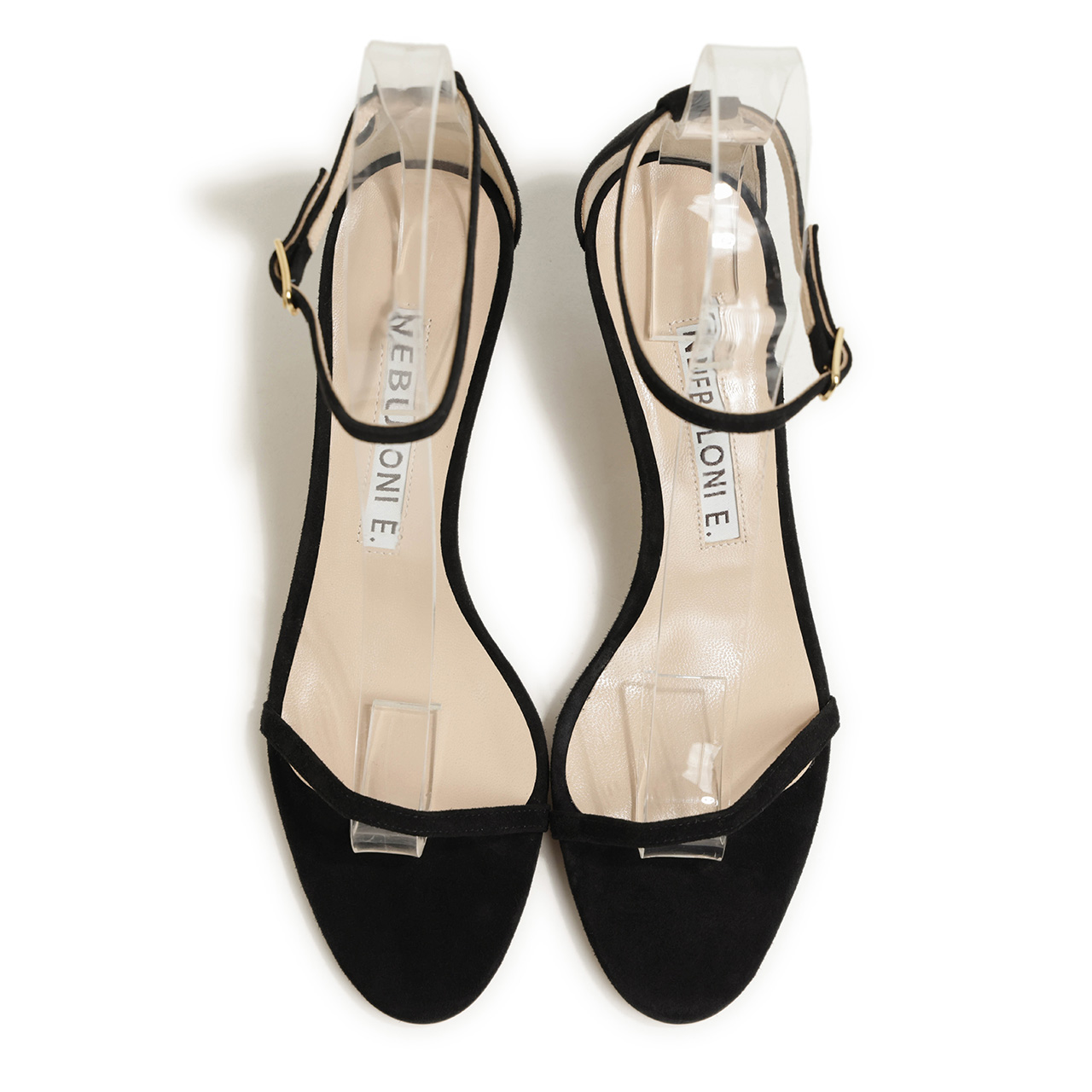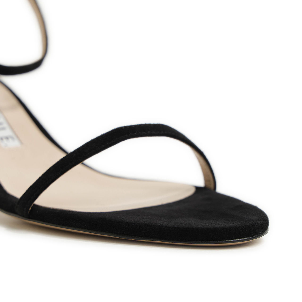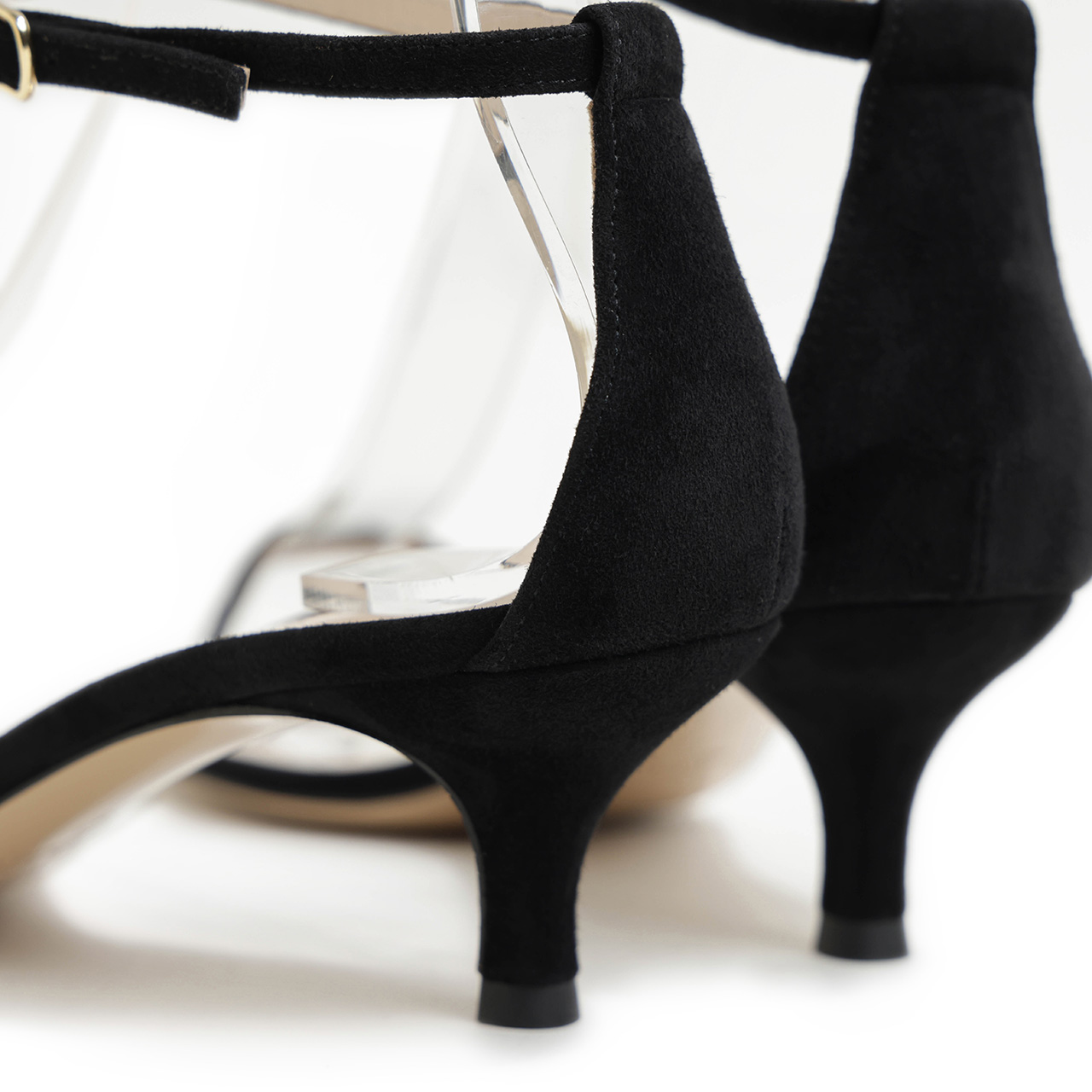 フロントとアンクル部分にあしらわれた細くしなやかなストラップが足元に繊細なラインを描き、抜け感のある女性らしい雰囲気を演出。