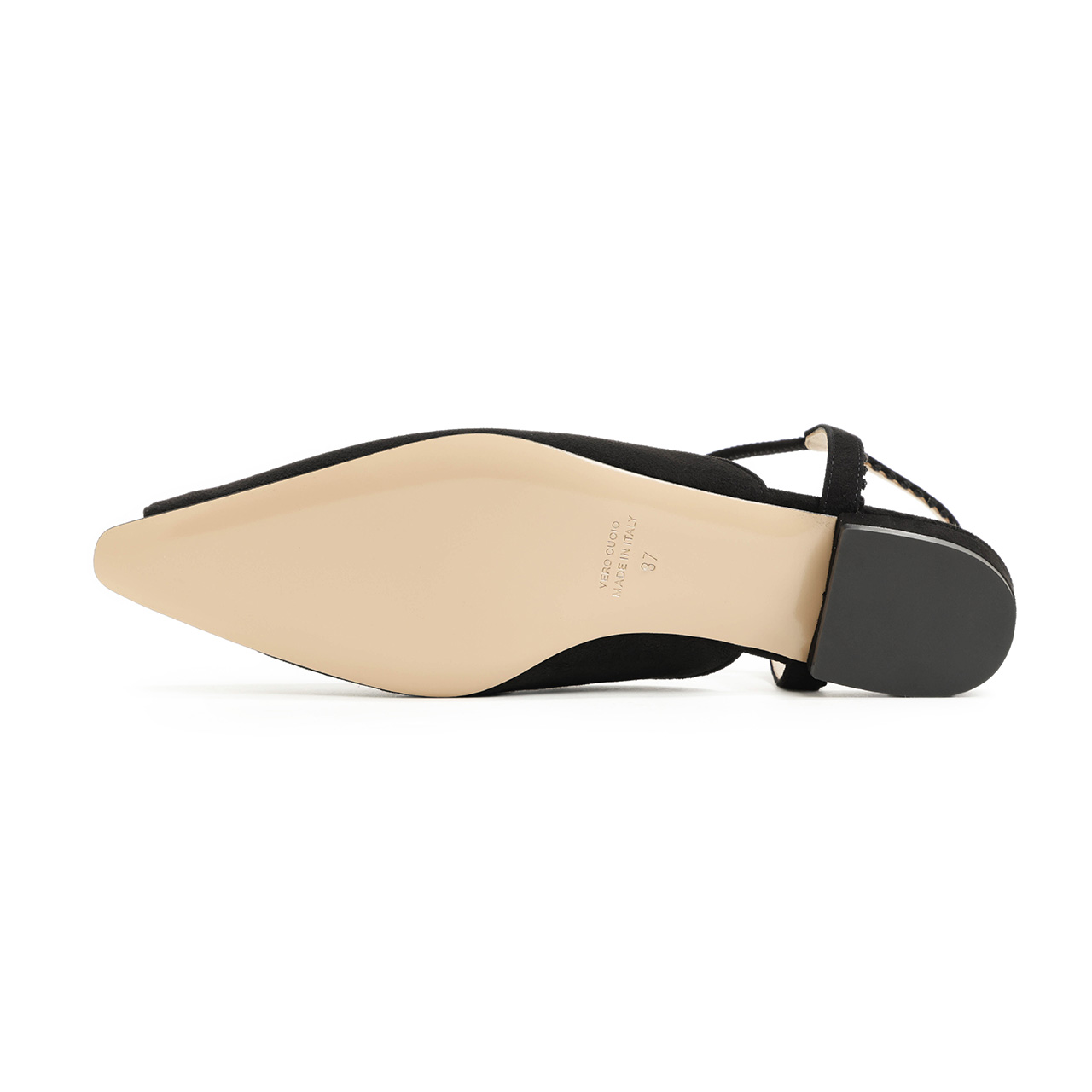 アンクルストラップはフロント側がゴムでできておりますので、スッと足入れができる上に押さえが効きます。着用時の踵の浮きも出にくい作りに。