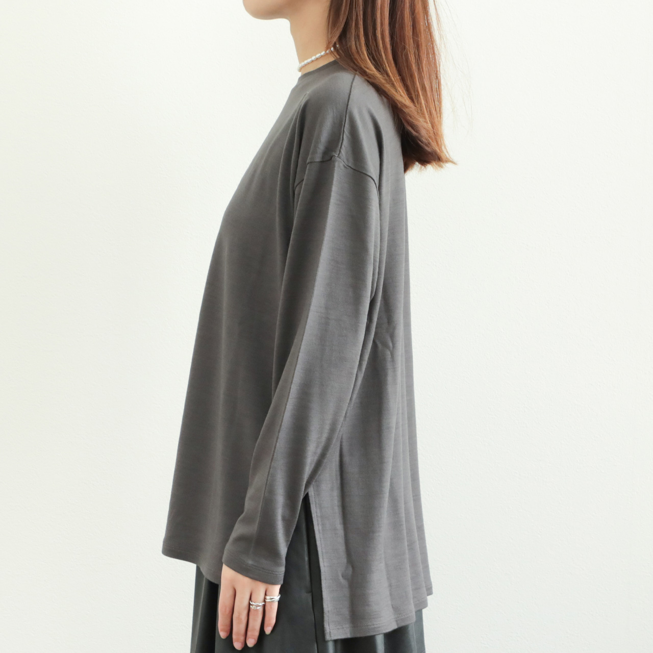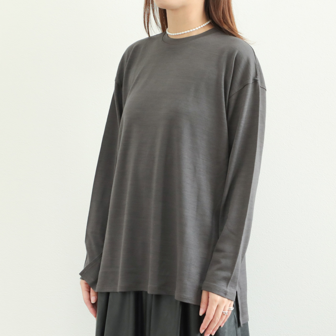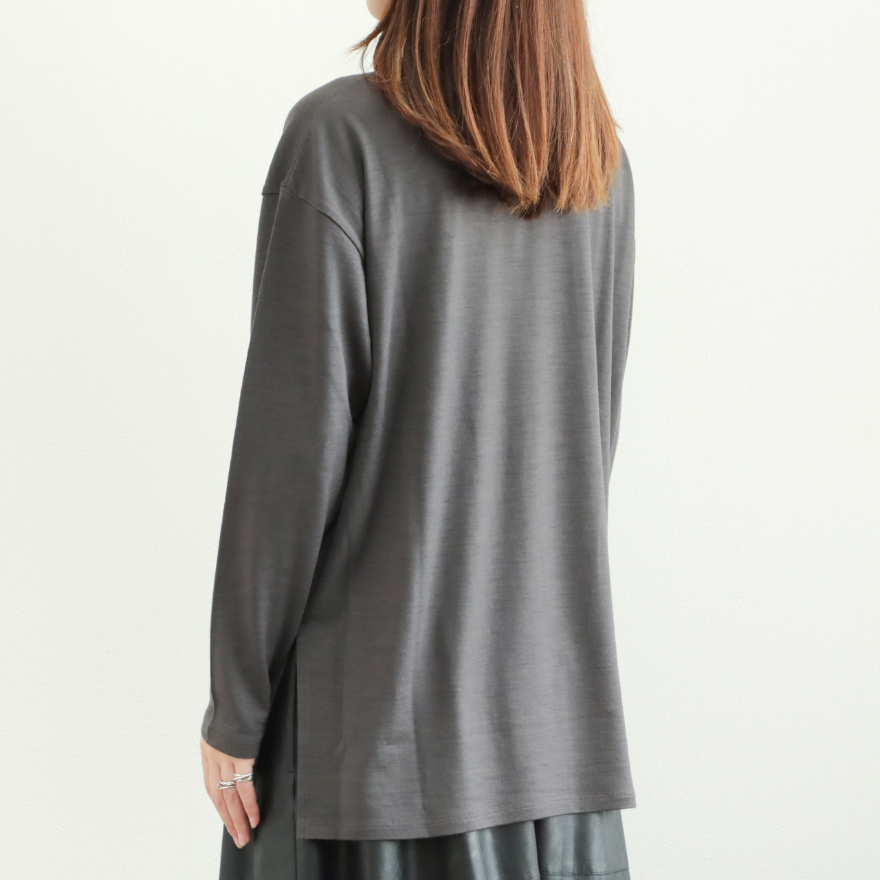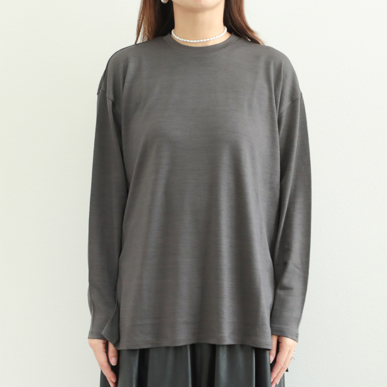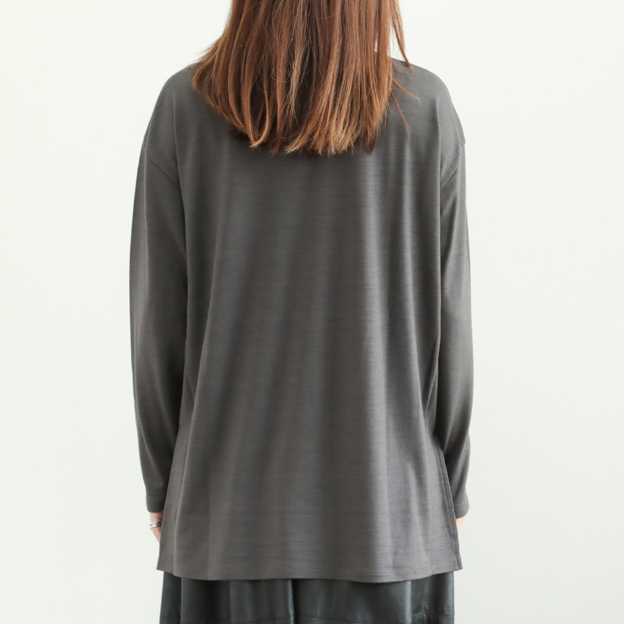 素材感の良さが引き立つクラス感のあるウールロンTです。一枚ではもちろん、ジレやレイヤードワンピースのインナーとしても活躍します。