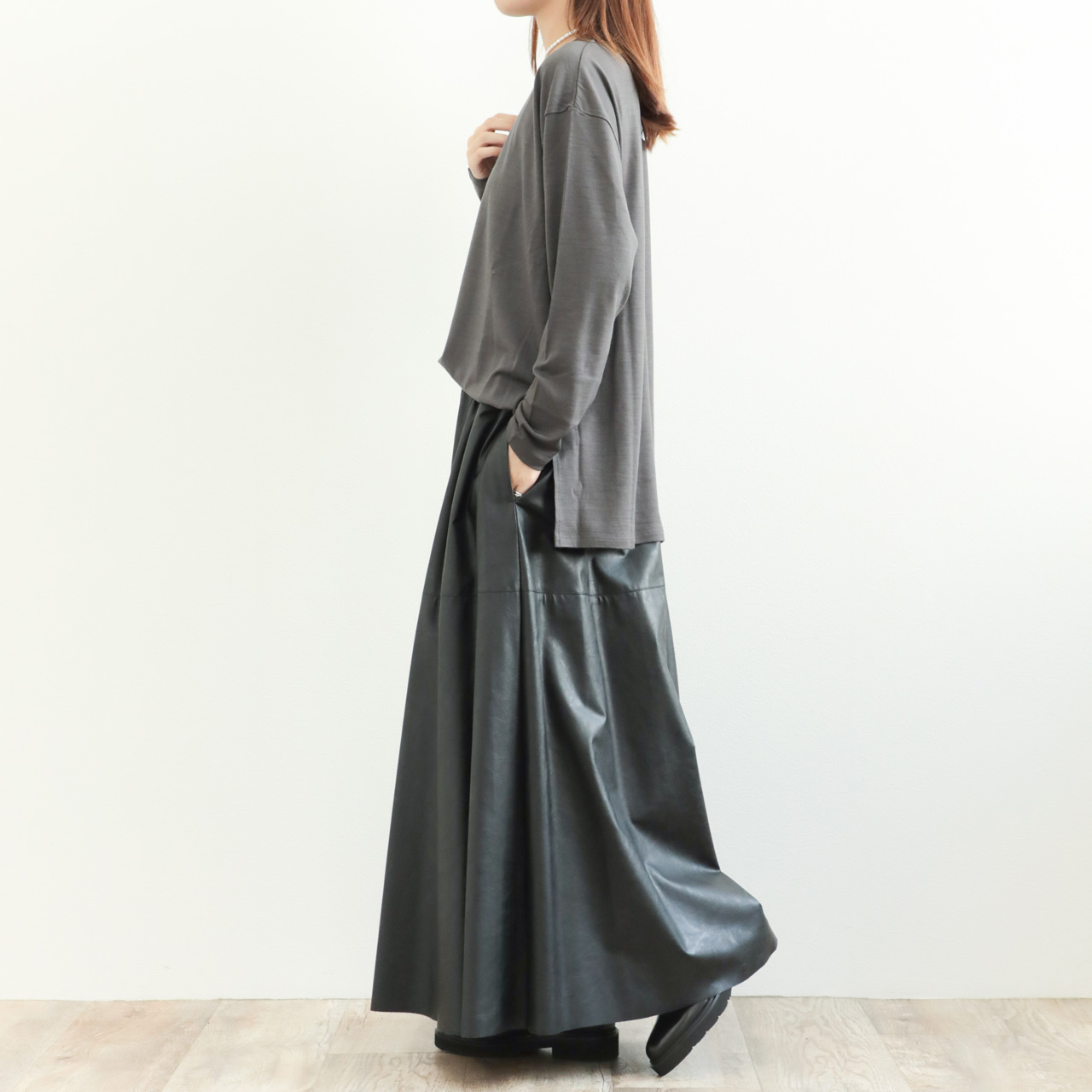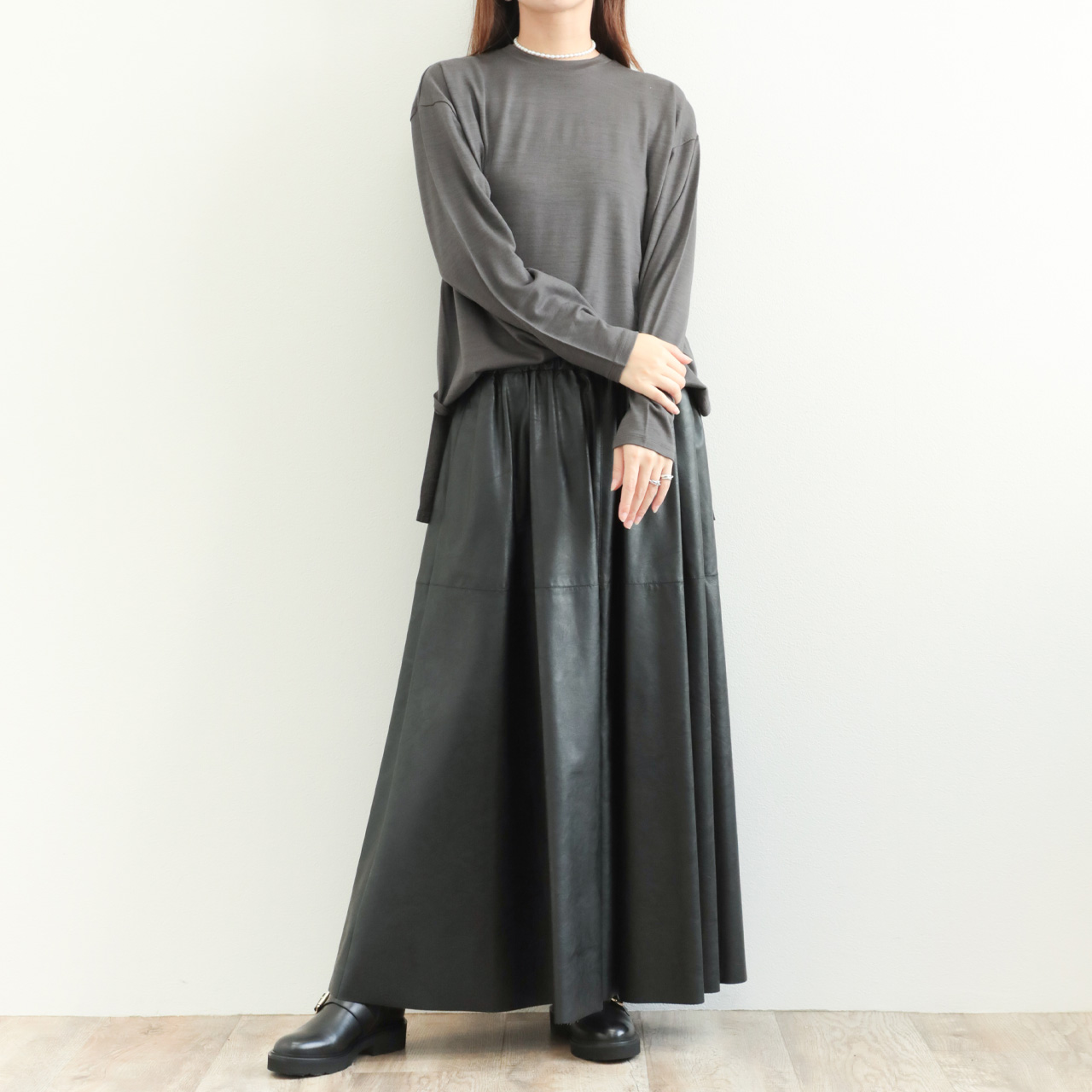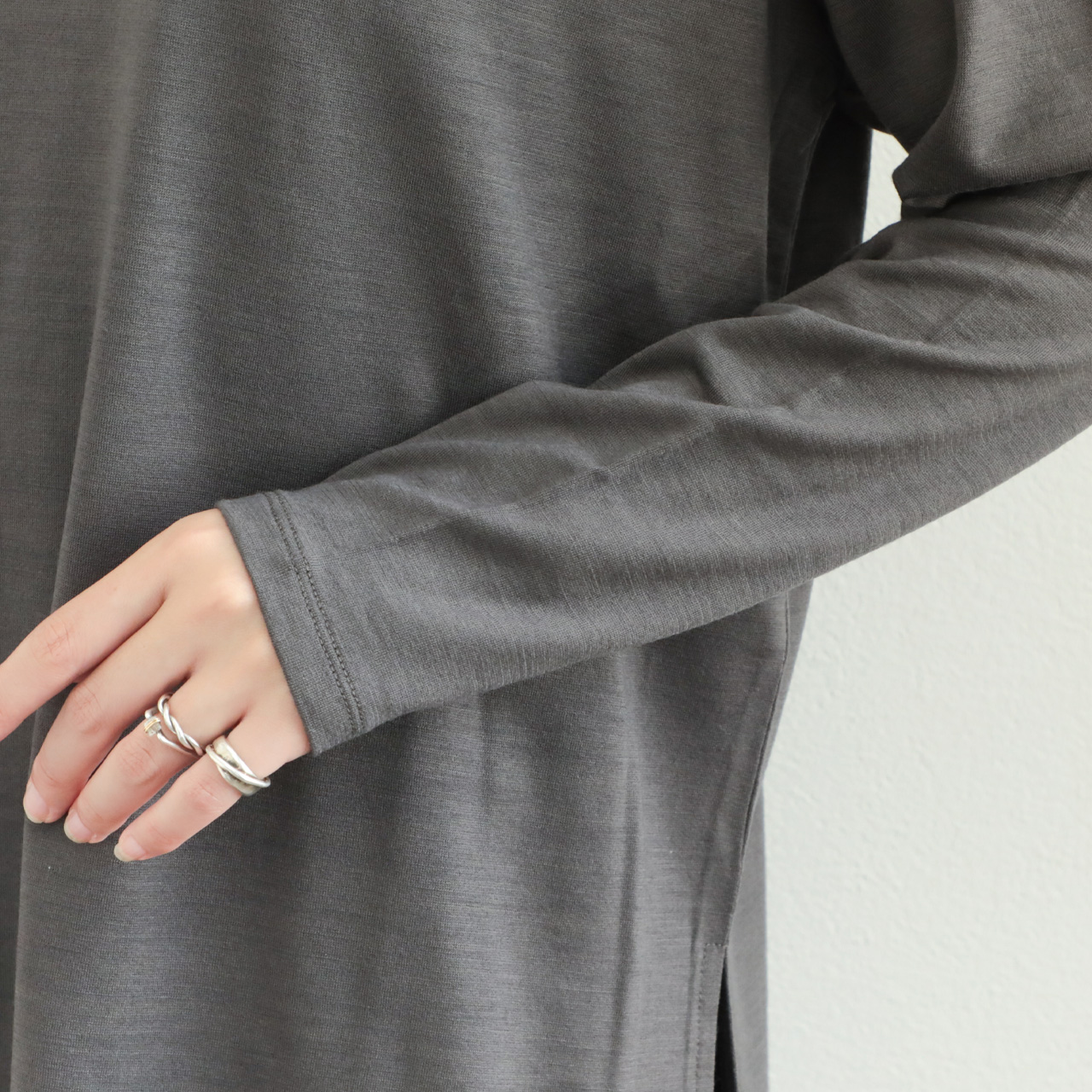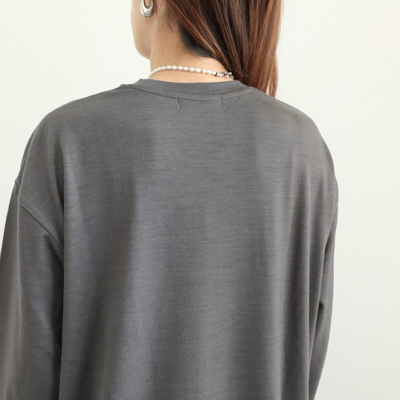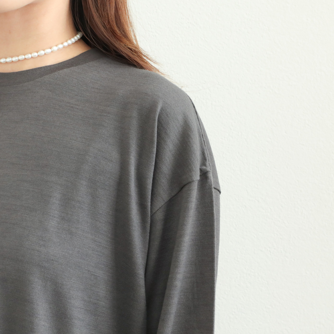 素材感の良さが引き立つクラス感のあるウールロンTです。一枚ではもちろん、ジレやレイヤードワンピースのインナーとしても活躍します。