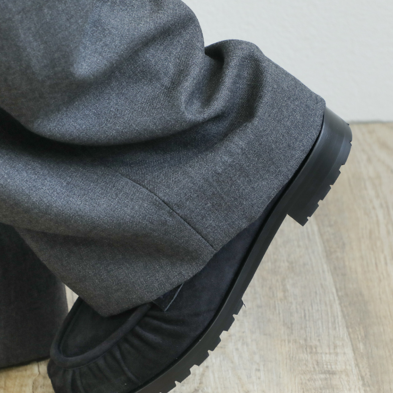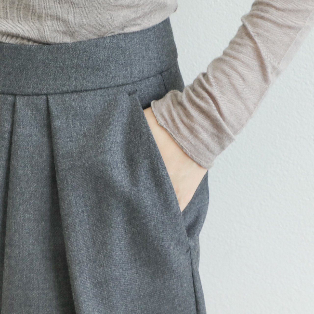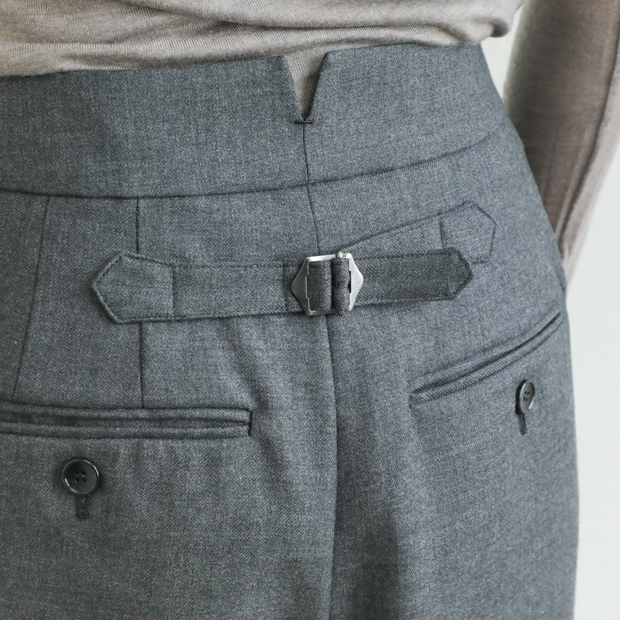 今季は上品な光沢感と程よいハリ感が特徴のウールサージを使用したテーパードパンツをご用意しました。