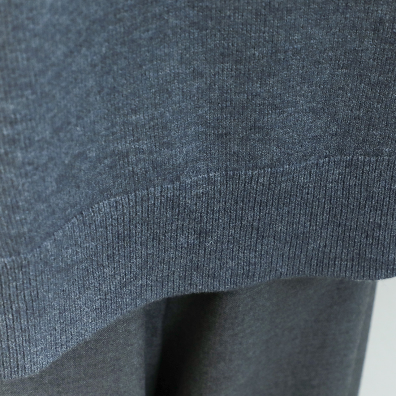 素材はウール100%。秋冬らしい程よい起毛感は持たせつつも滑らかで柔らかなウールは暖かく着る方を包み込むと同時に、スリーブのデザインを引き立たせます。