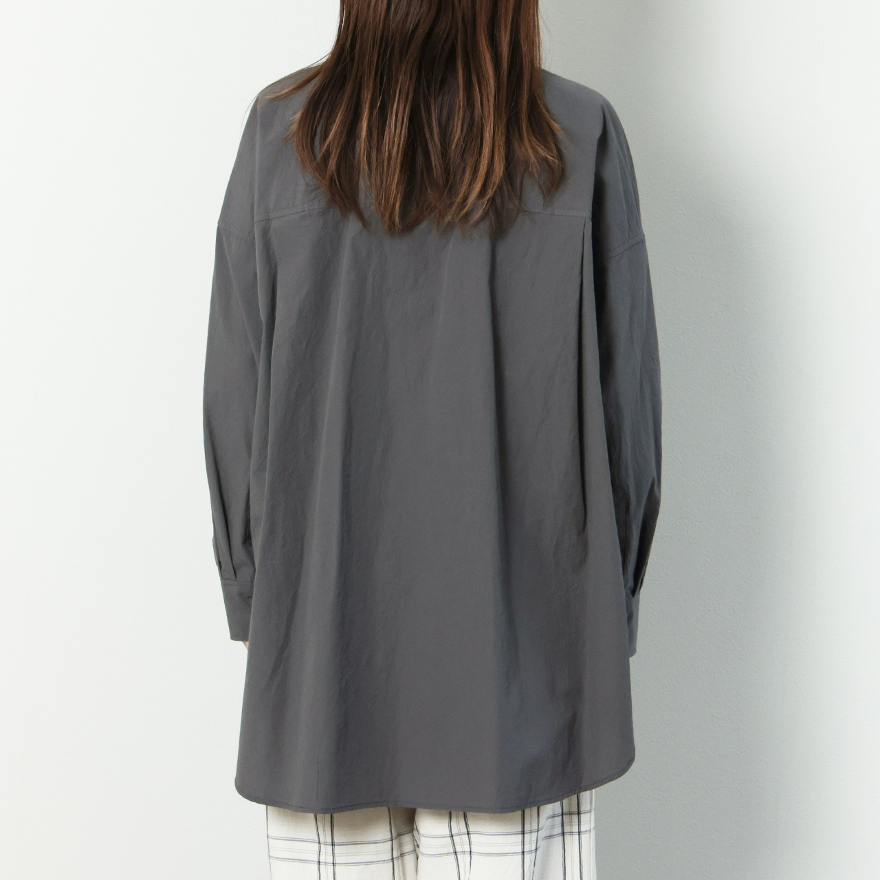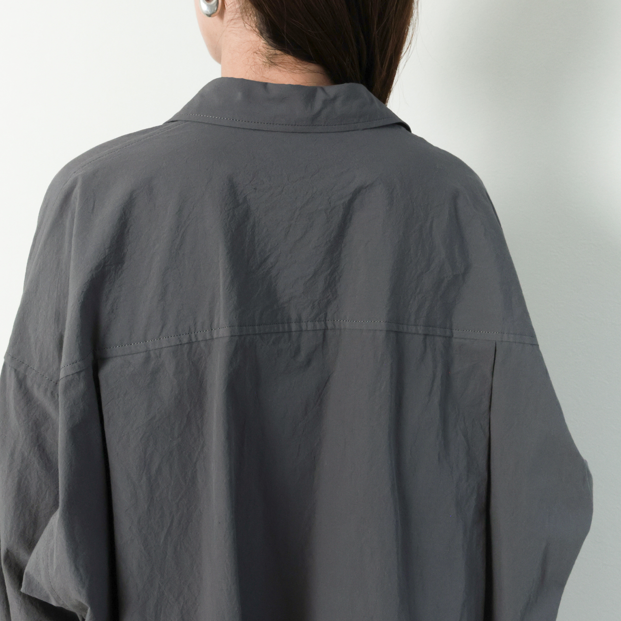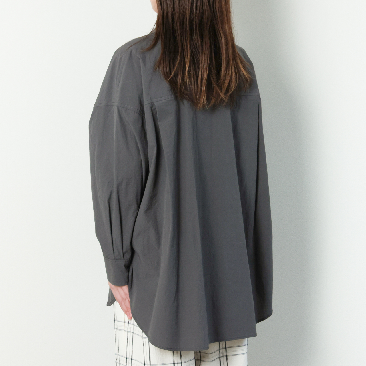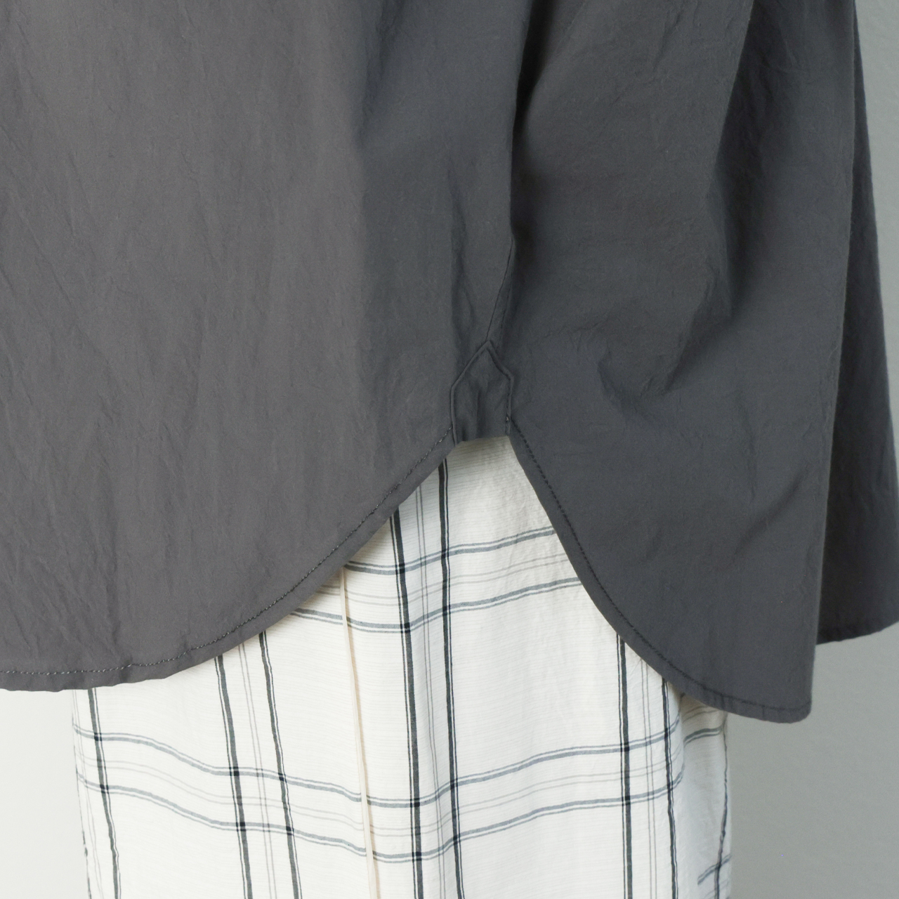 カラーはチャコールグレーでご用意。生地の風合いと相まって春夏らしい表情となっておりますので、軽快に羽織っていただけます。