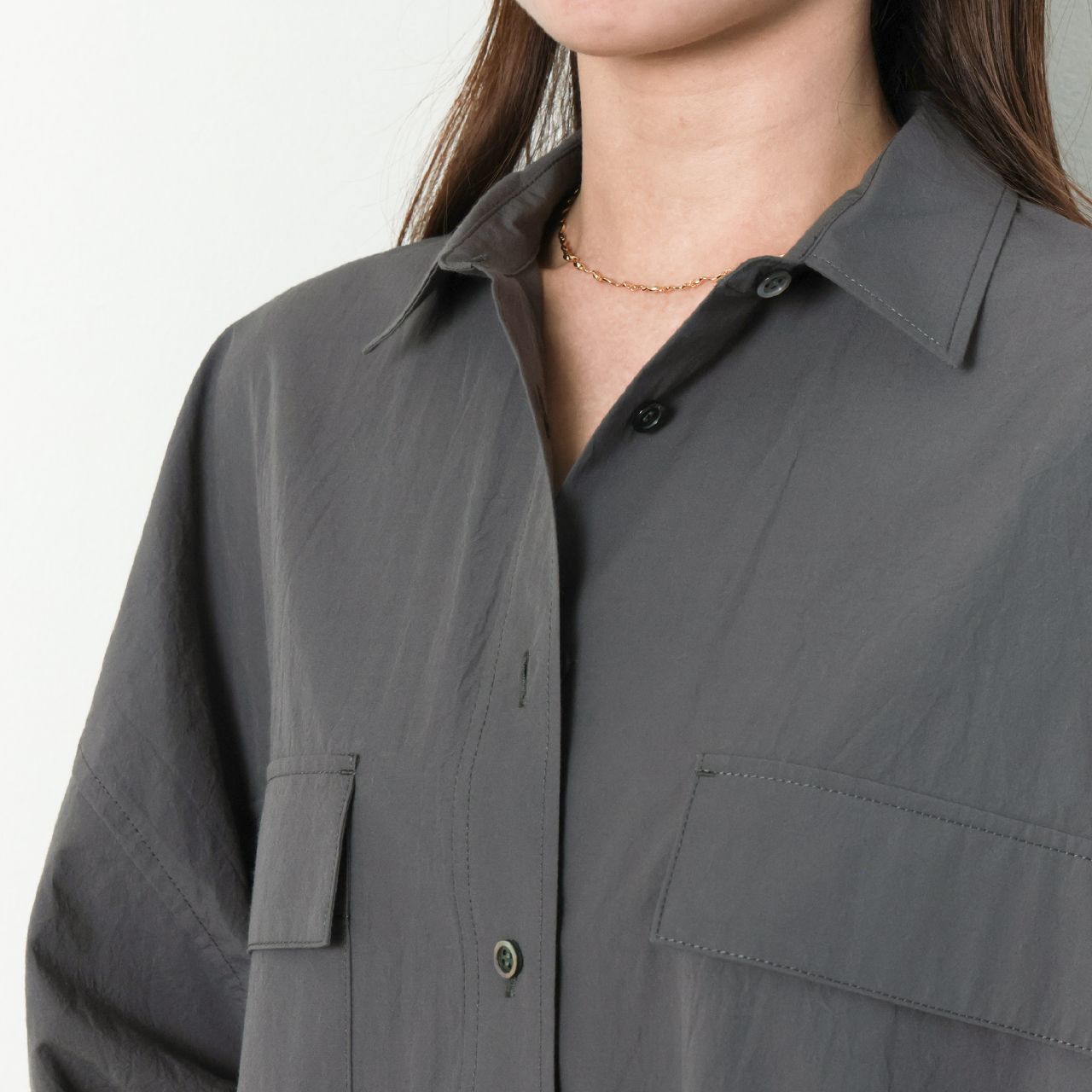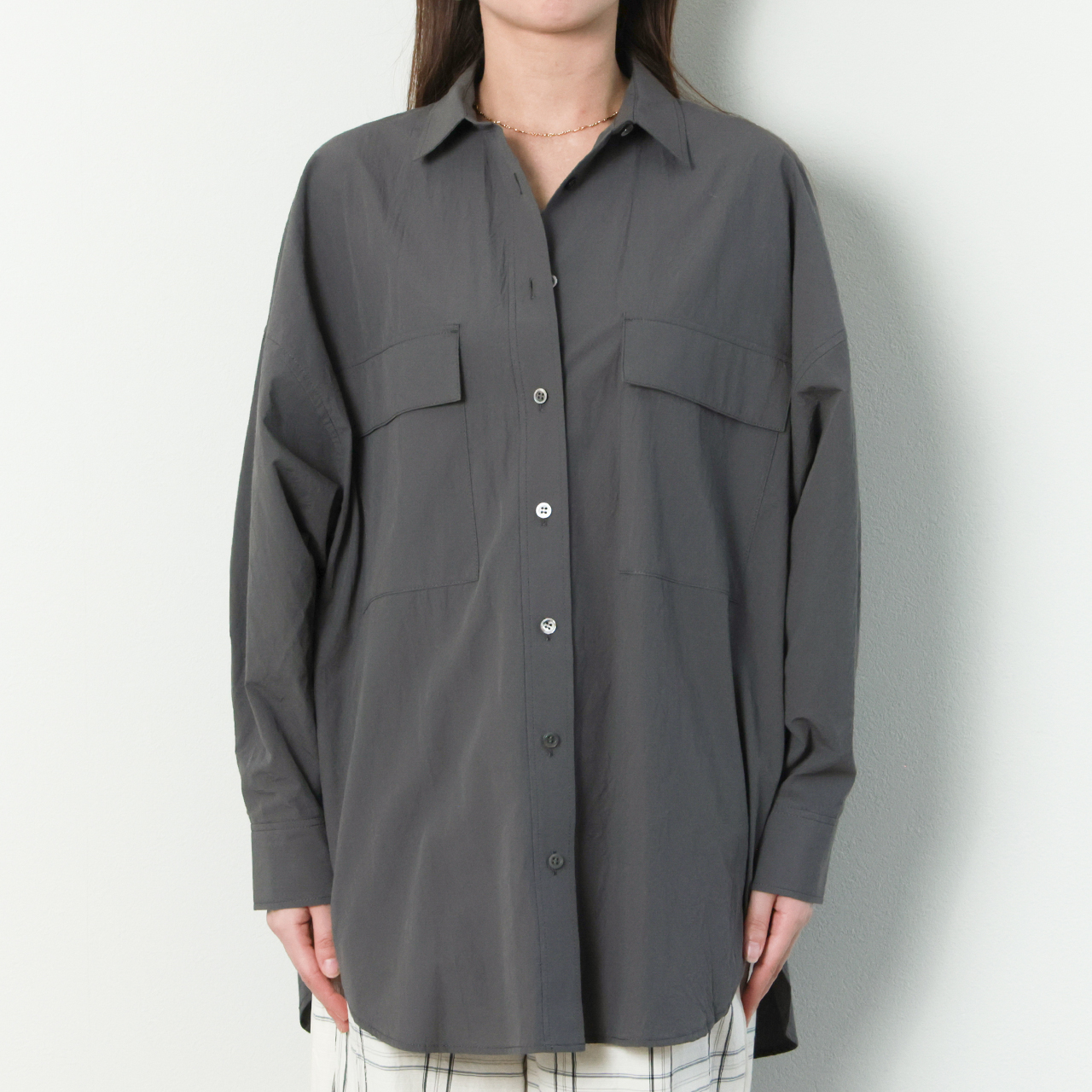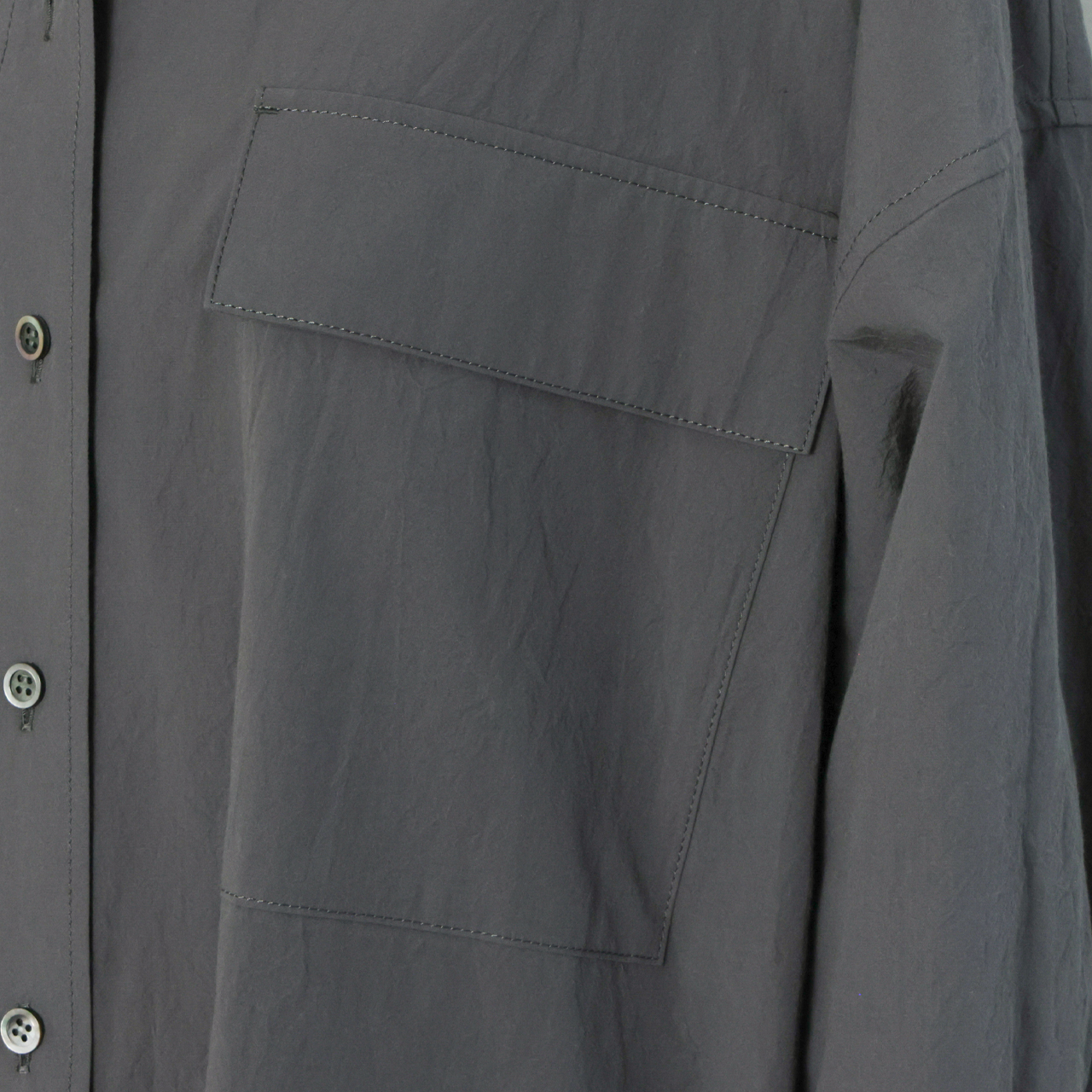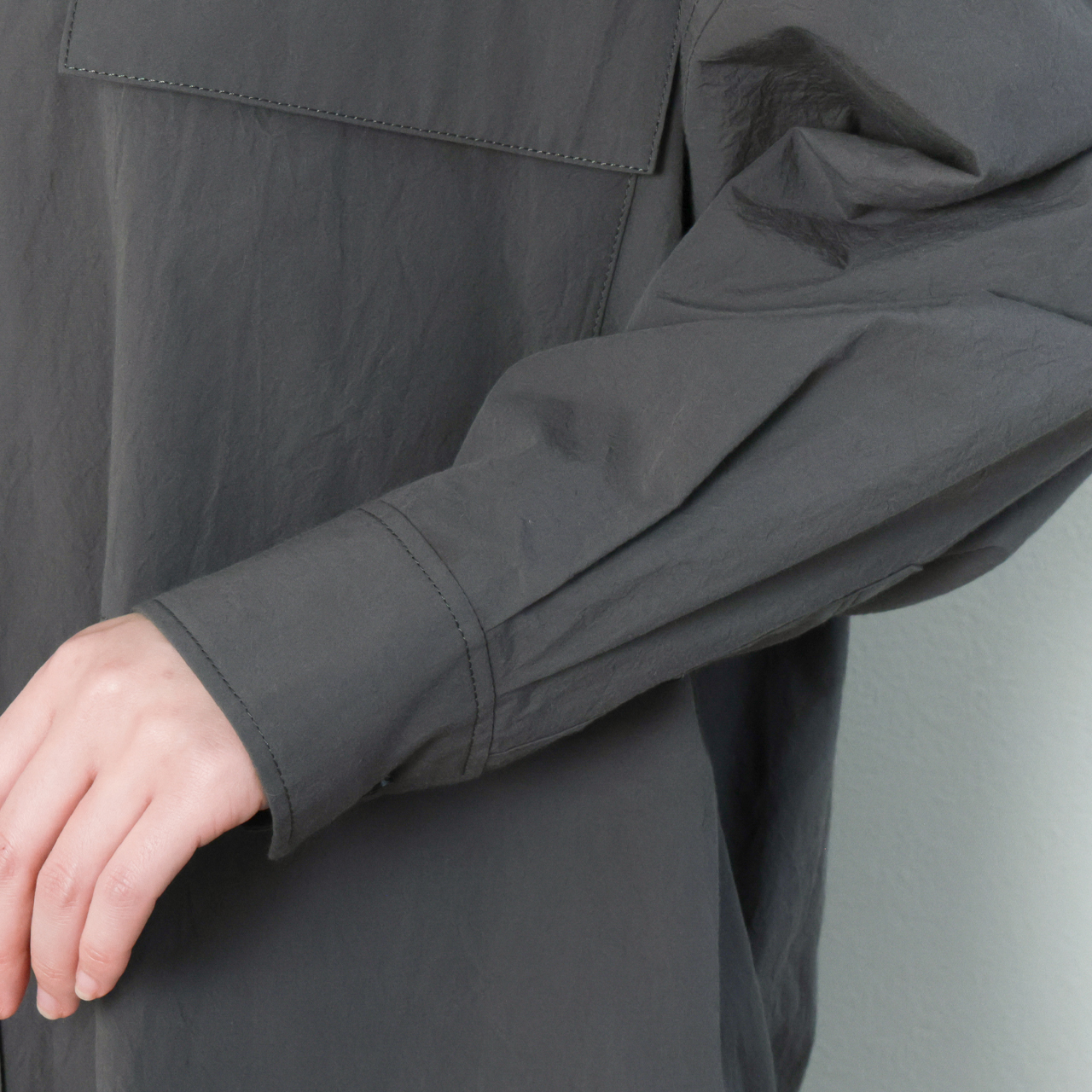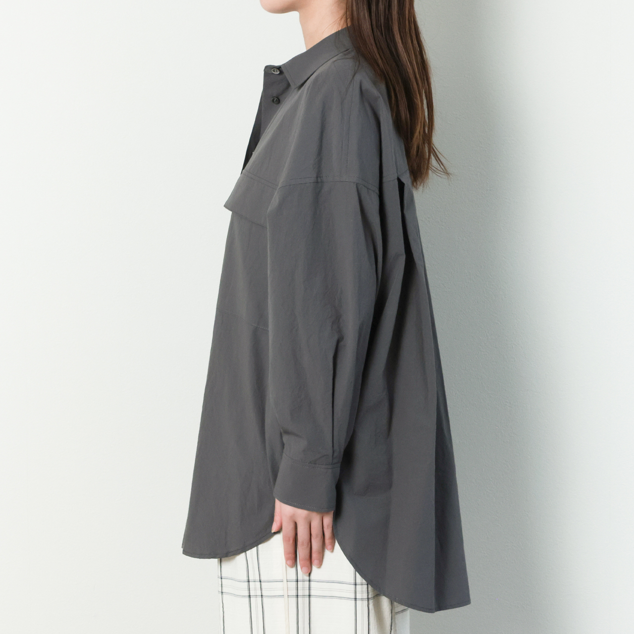カラーはチャコールグレーでご用意。生地の風合いと相まって春夏らしい表情となっておりますので、軽快に羽織っていただけます。