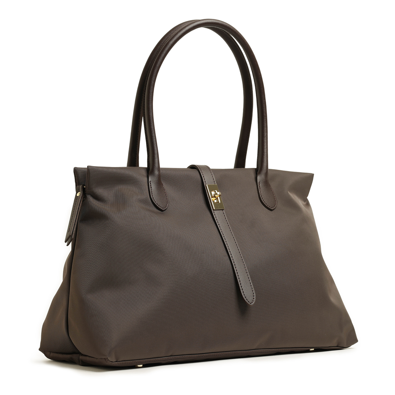カラーは深みのあるブラウンをご用意しました。秋冬らしいシックなスタイリングに合わせられますし、金具をゴールドで合わせることでエレガントさもプラスしています。