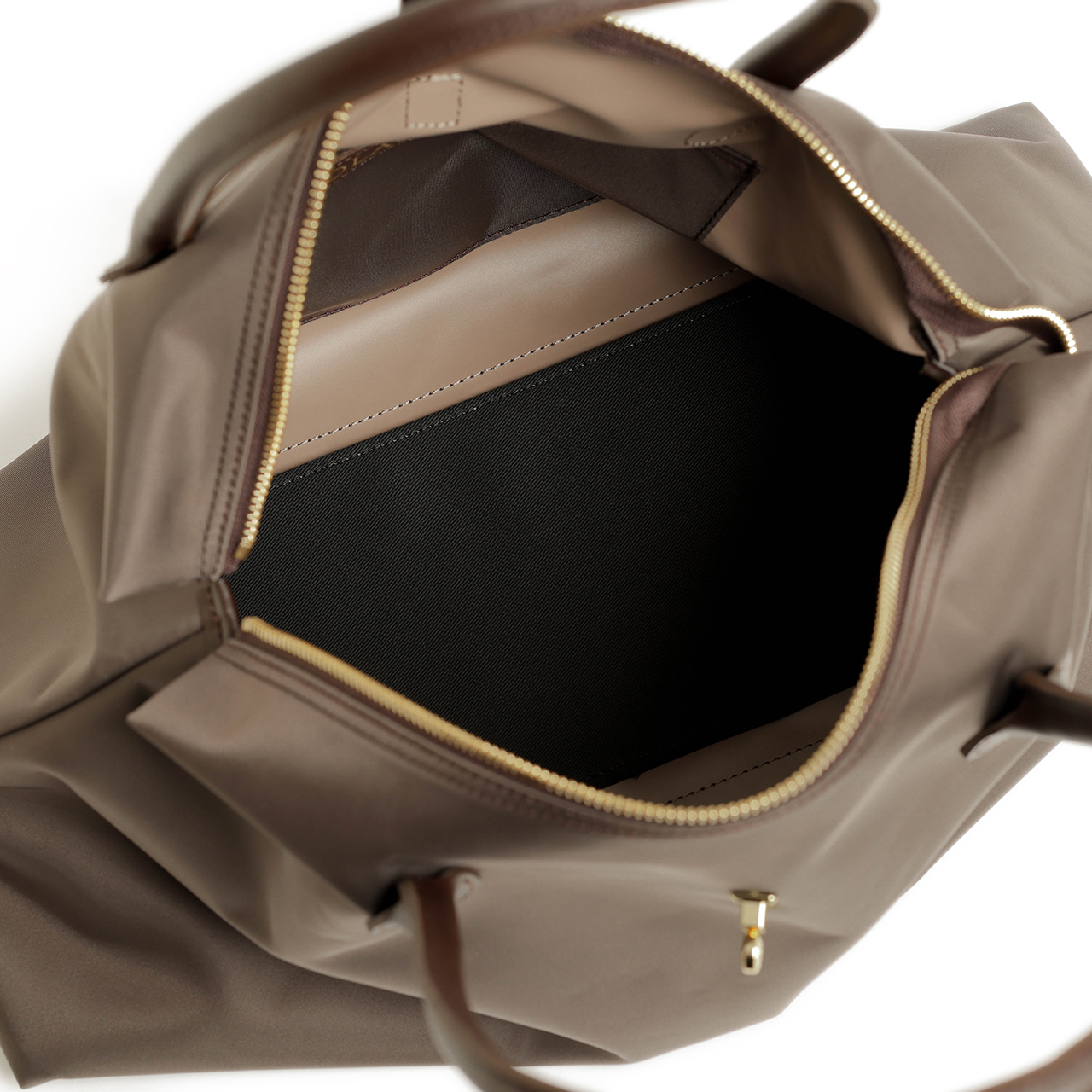 天井部分にジップをつけることで、中から物が落ちたり、他の人に中を見られる心配がないというのもトートバッグの大事なポイント。