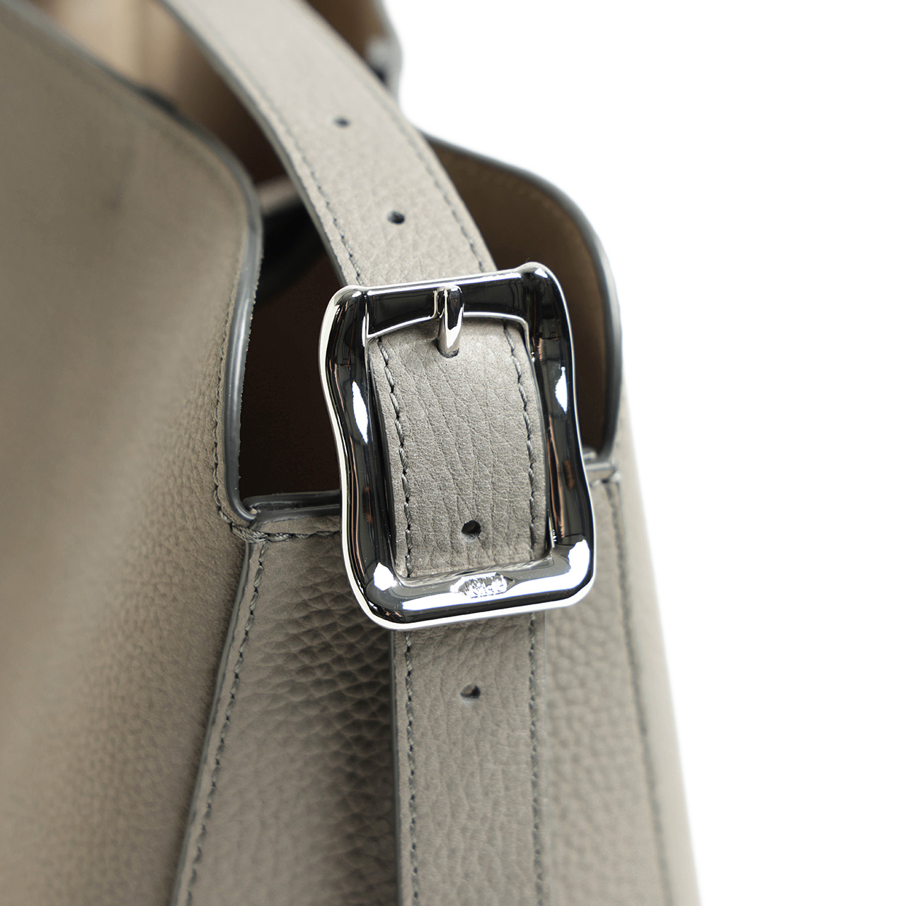 極力シームを省くことで美しい曲線を描き、独特なシルエットを生み出しています。無駄を省いたシンプルなボディに対してベルトのアーカイブから復活したロゴ入りバックルがアクセントになっています。