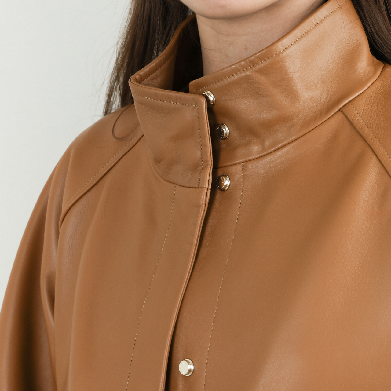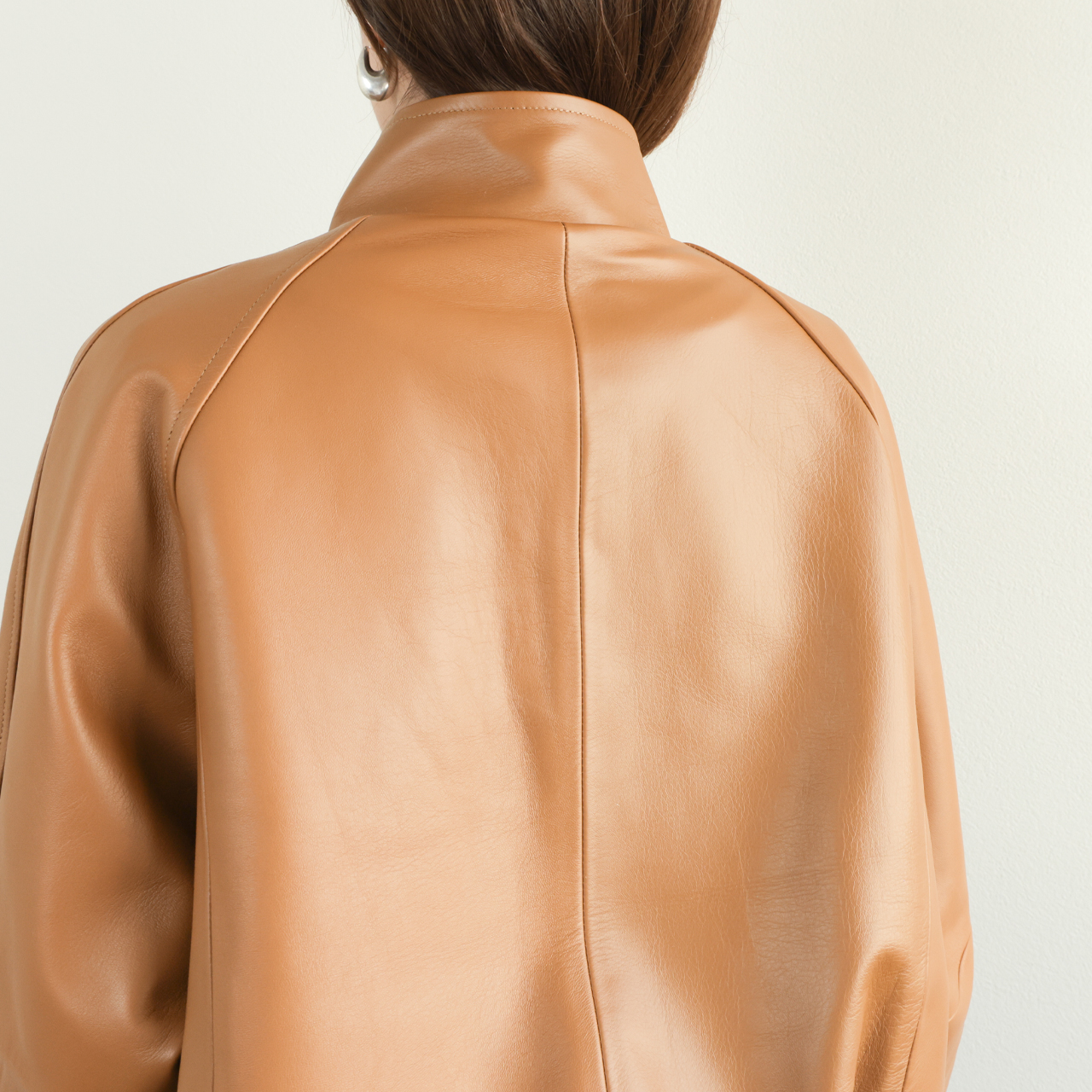 感触はハリがありつつも袖を通すとわかる気持ちよく体に馴染む柔らかさ、上質なレザーらしいナチュラルな艶が印象的です。