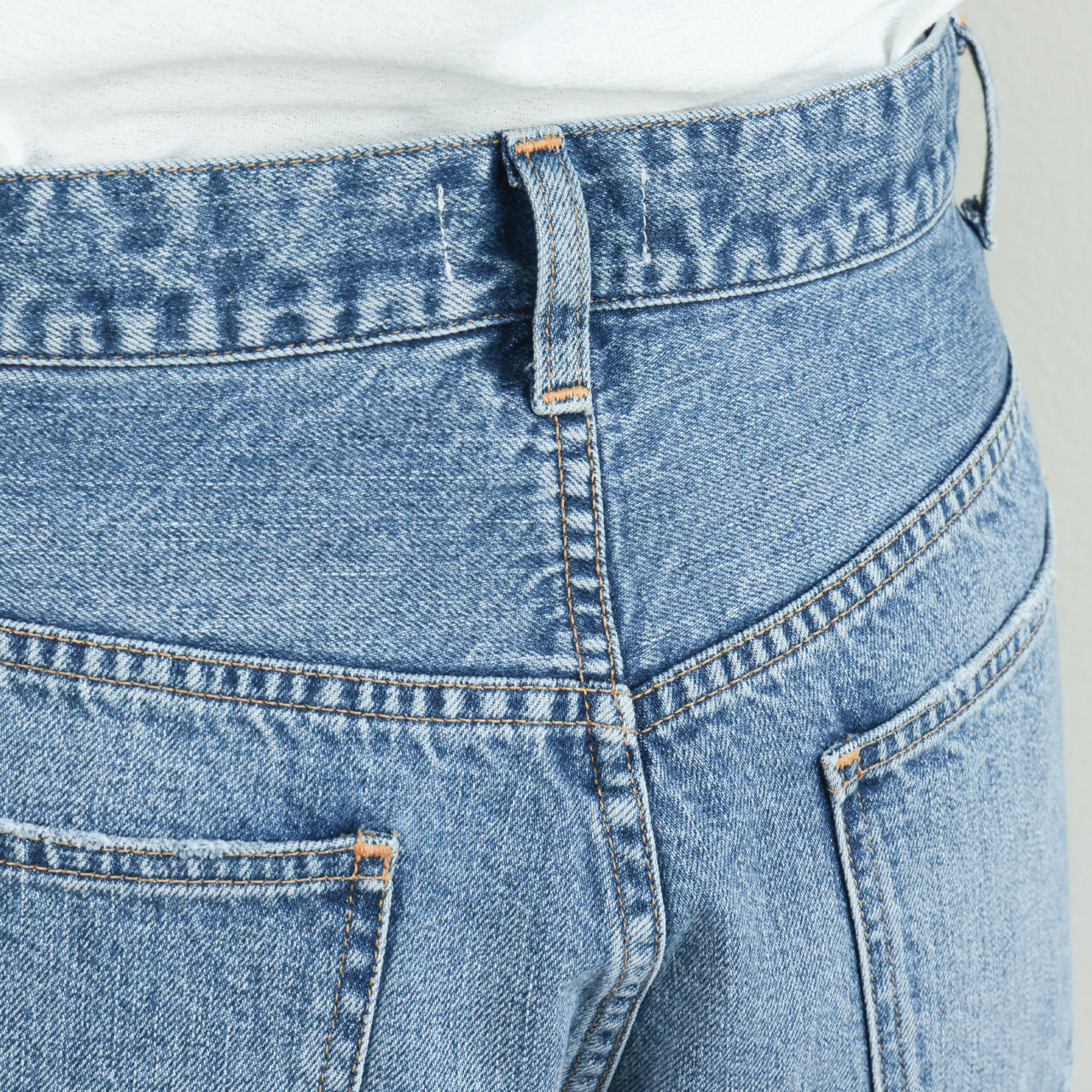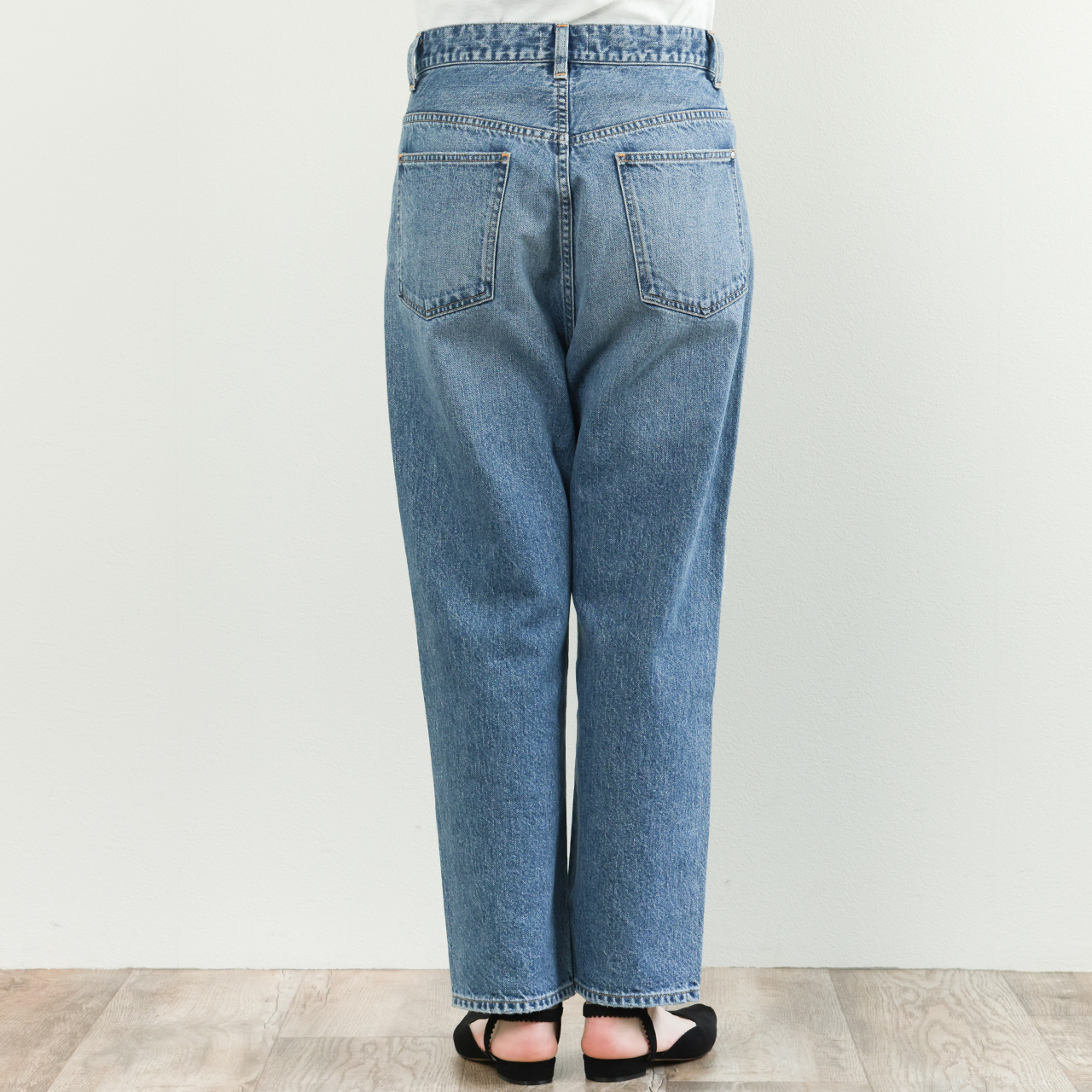 程よい厚みのコットンデニムは、ストレッチなしでも硬すぎず、穿くほどに身体に馴染む素材感。デニムを普段着用しない方にもお勧めできる穿きやすい一本です。