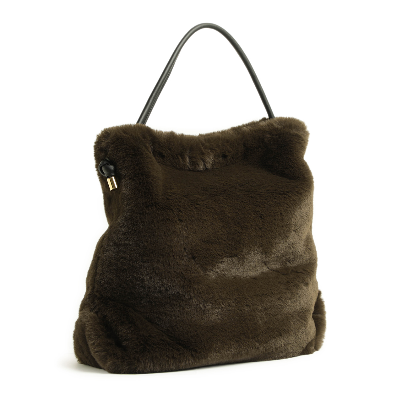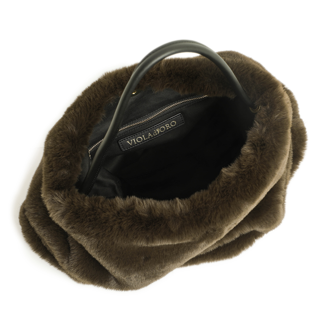 VIOLAd'ORO ヴィオラドーロ トート ハンド バッグ エコファー レザー イタリアンレザーノット ハンドル ELMO V-8922 DARK BROWN/BLACK/ブラウン