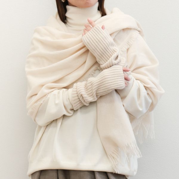 カシミヤ100%でカシミヤらしいふっくら感はあるのに、薄手で真夏以外3シーズンお使いいただける一枚。