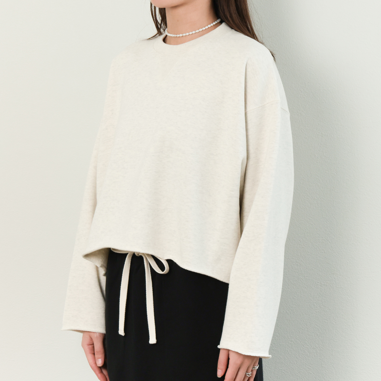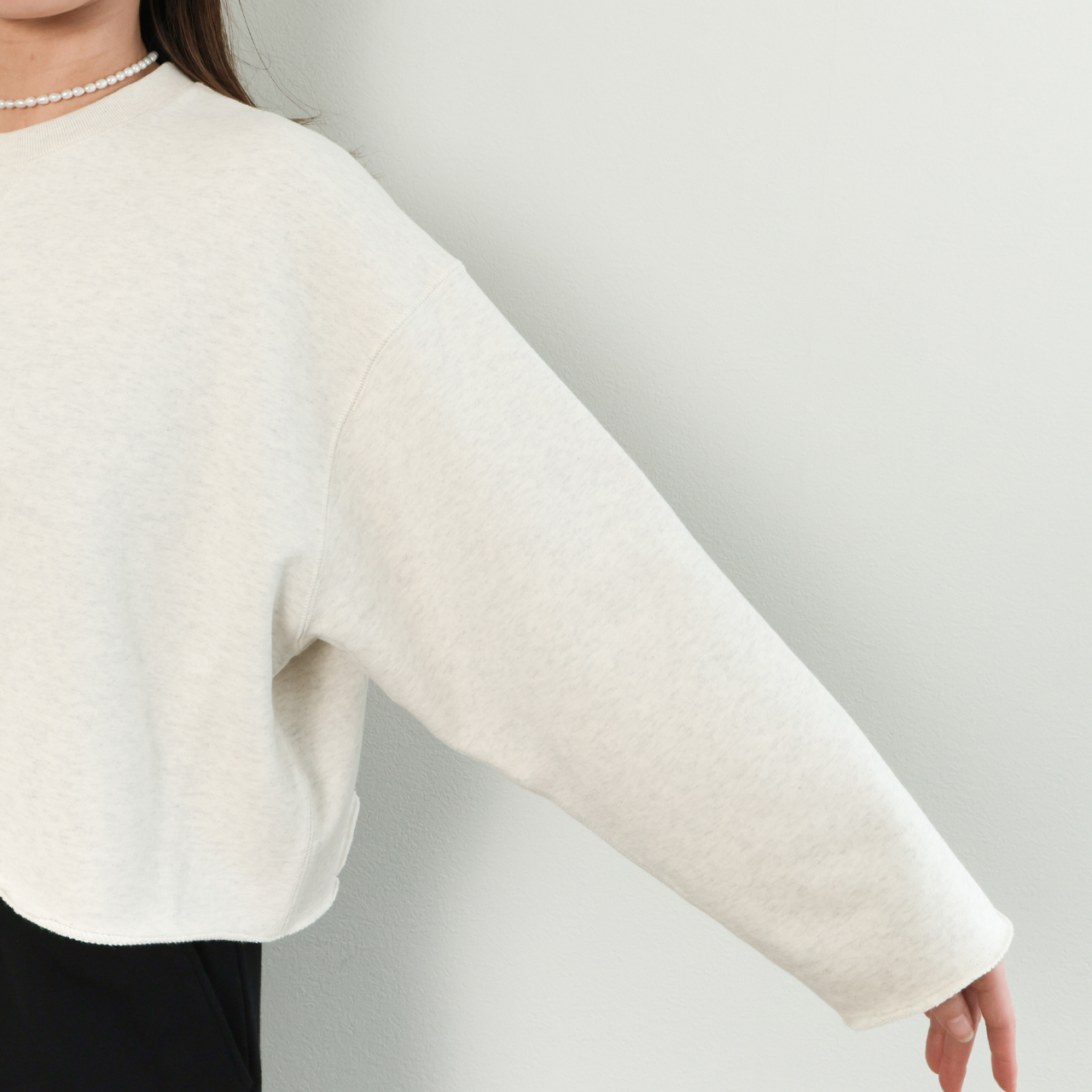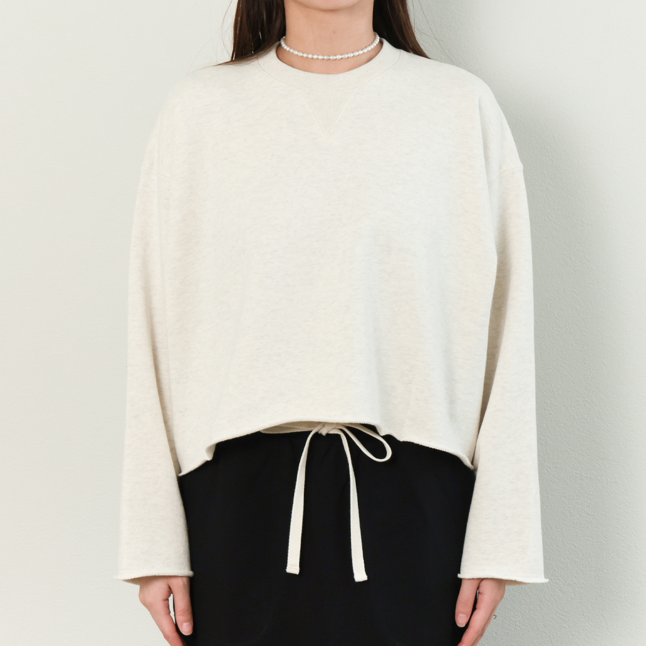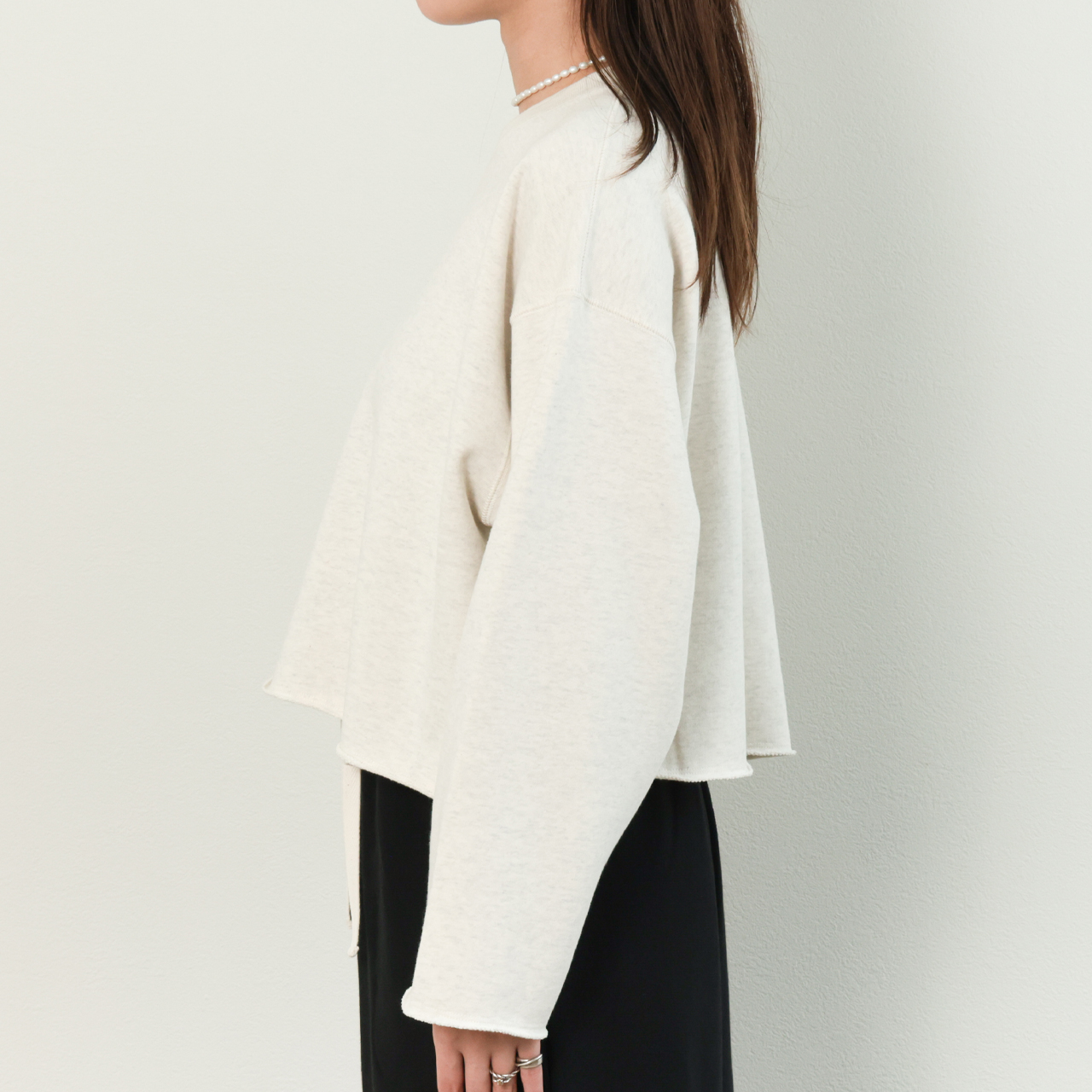 SACRA サクラ レディース スウェット コットン 長袖 丸首 クロップド カットオフ EXTRA FINE FLEECE 126141091 ECRU/アイボリー