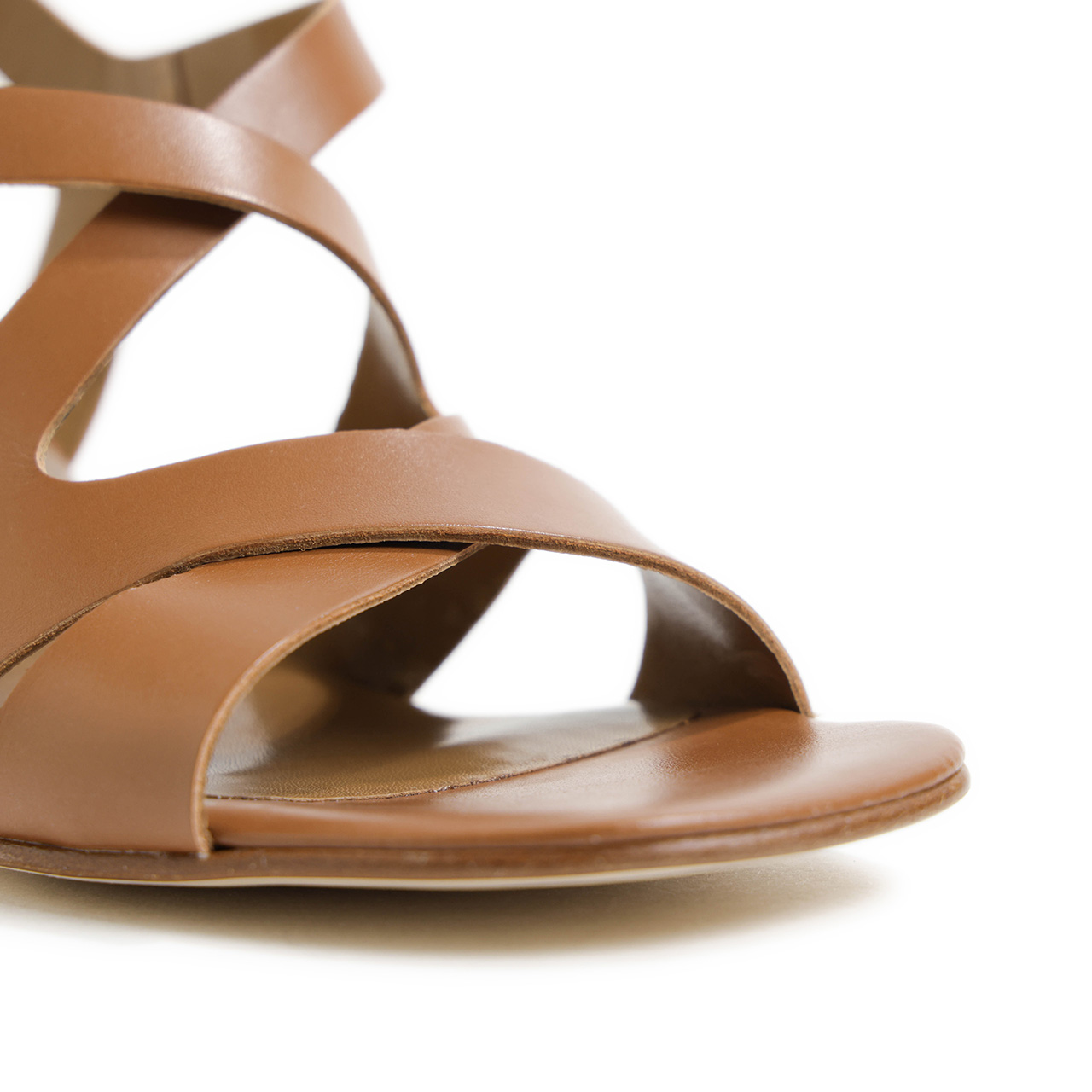 前足部、中足部、そしてバックストラップとクロスしながらしっかりと押さえてくれるストラップデザインのこちら。肌見せ具合も絶妙で、大人の女性が求める要素をしっかりととらえた一足に仕上がっています。。