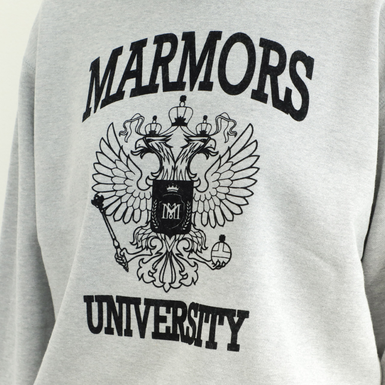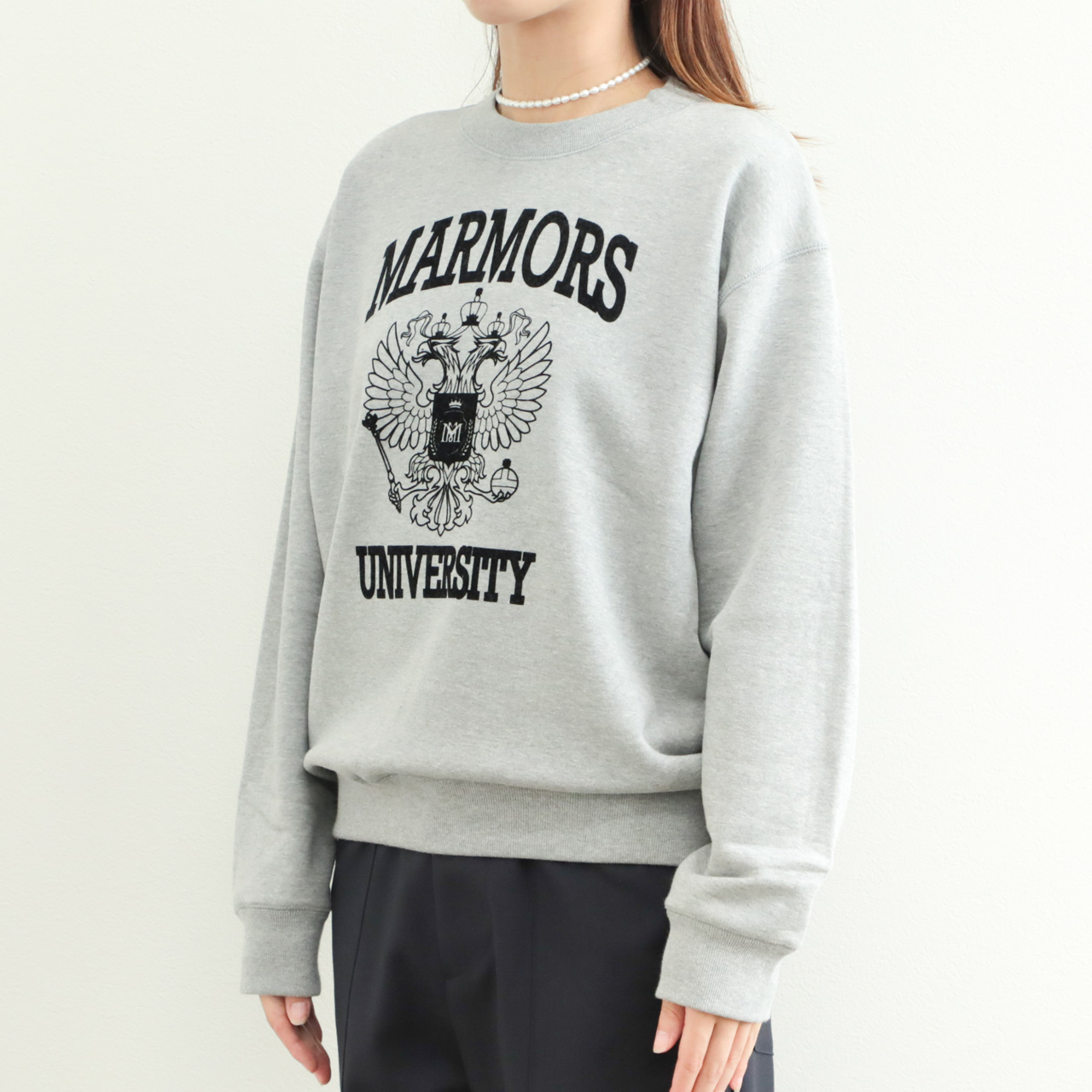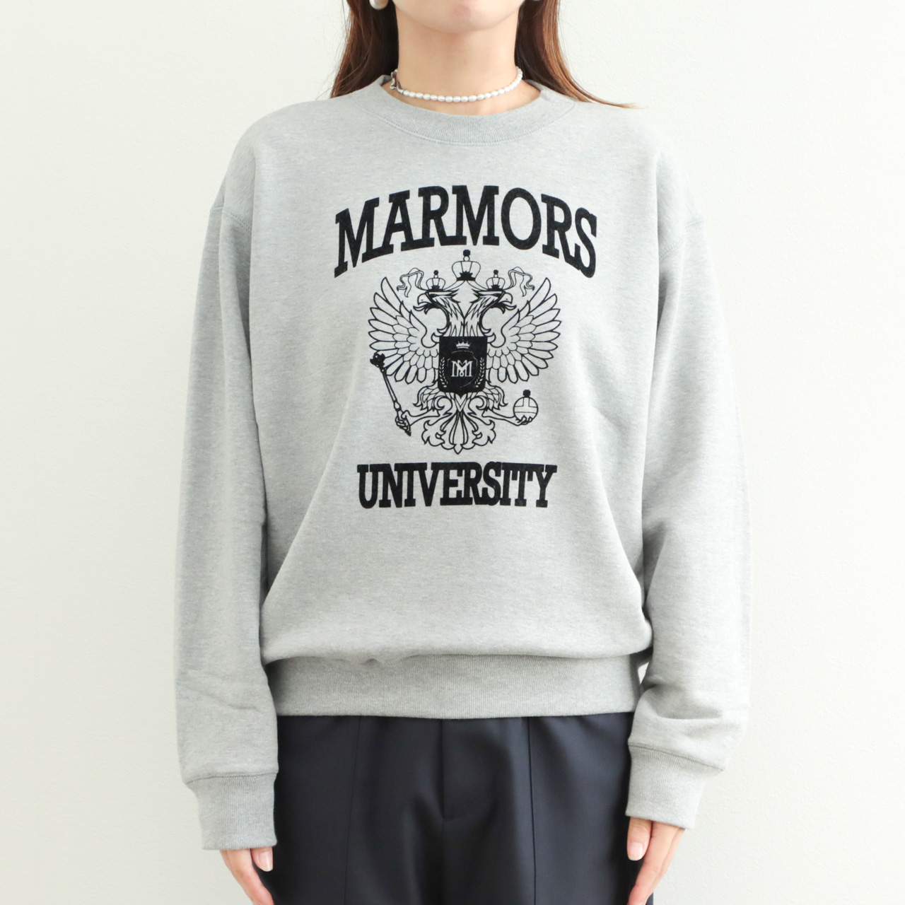 marmors マルモア レディース スウェット 長袖 丸首 クルーネック コットン 裏毛 emblem flockey print sweat 0225309130 GRAY/グレー