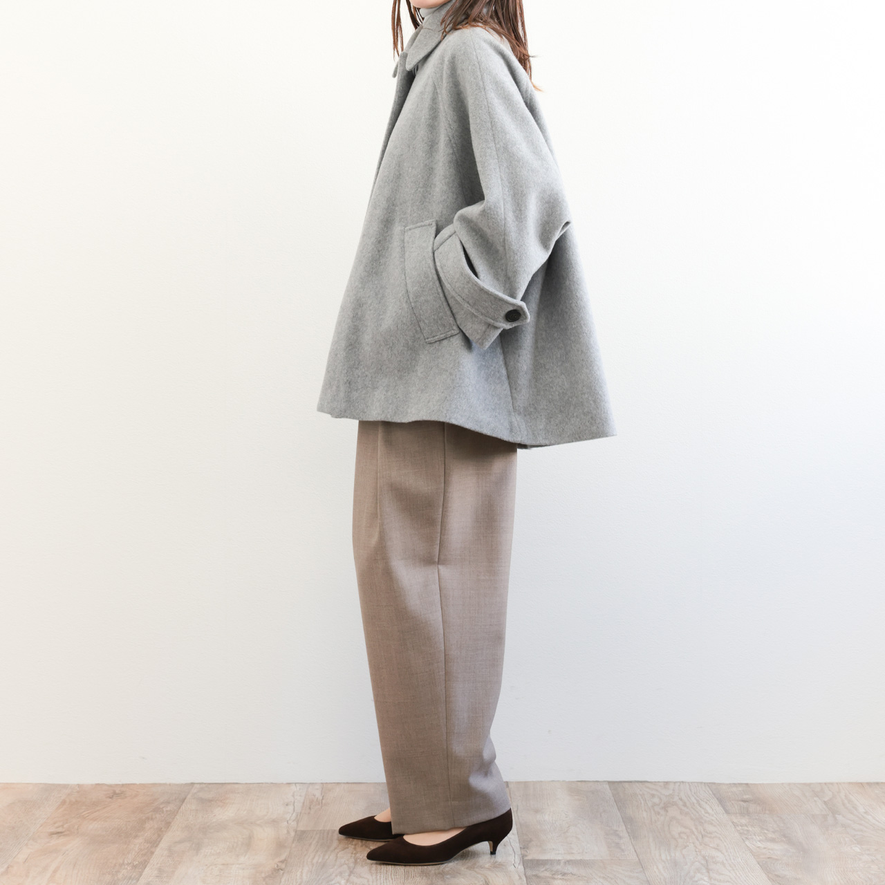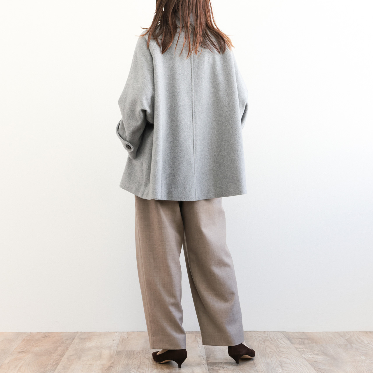 こちらはトレンドのテントシルエットを採用したウールコート。