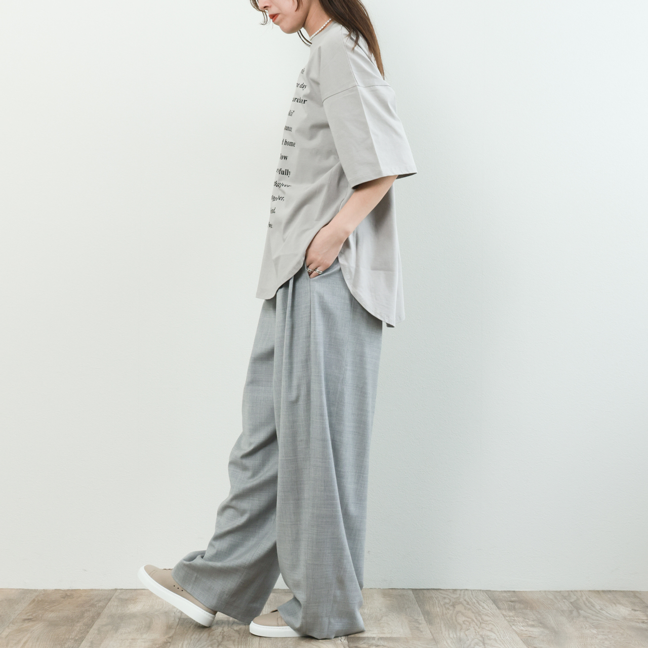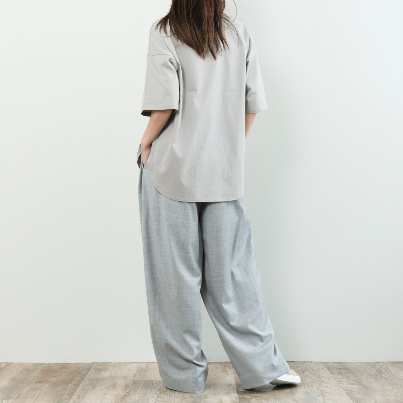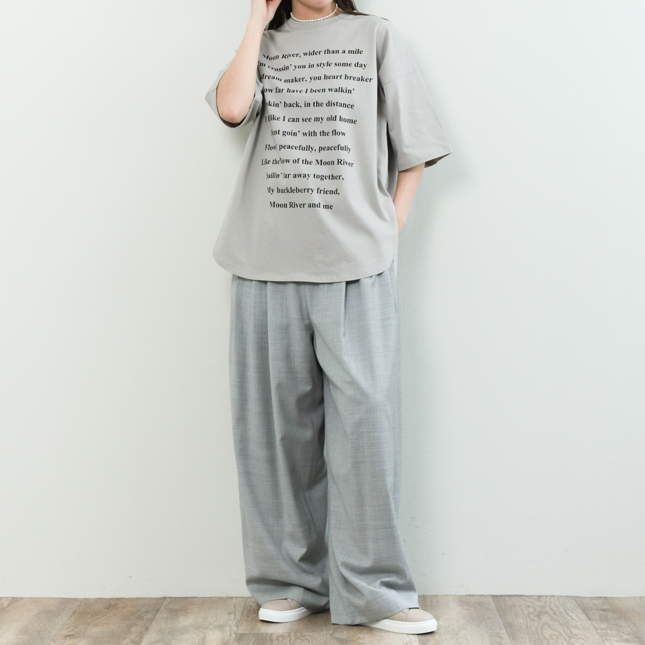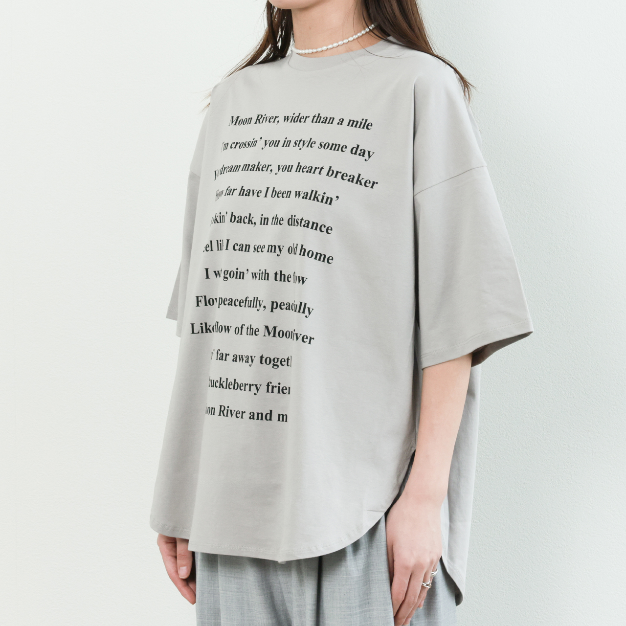 春夏の素肌にも心地よく、品のあるカジュアルスタイルを叶えます。ゆとりのあるオーバーサイズと、丸首・ラウンドヘムの柔らかなシルエットが、抜け感を演出しながらも女性らしさをキープ。