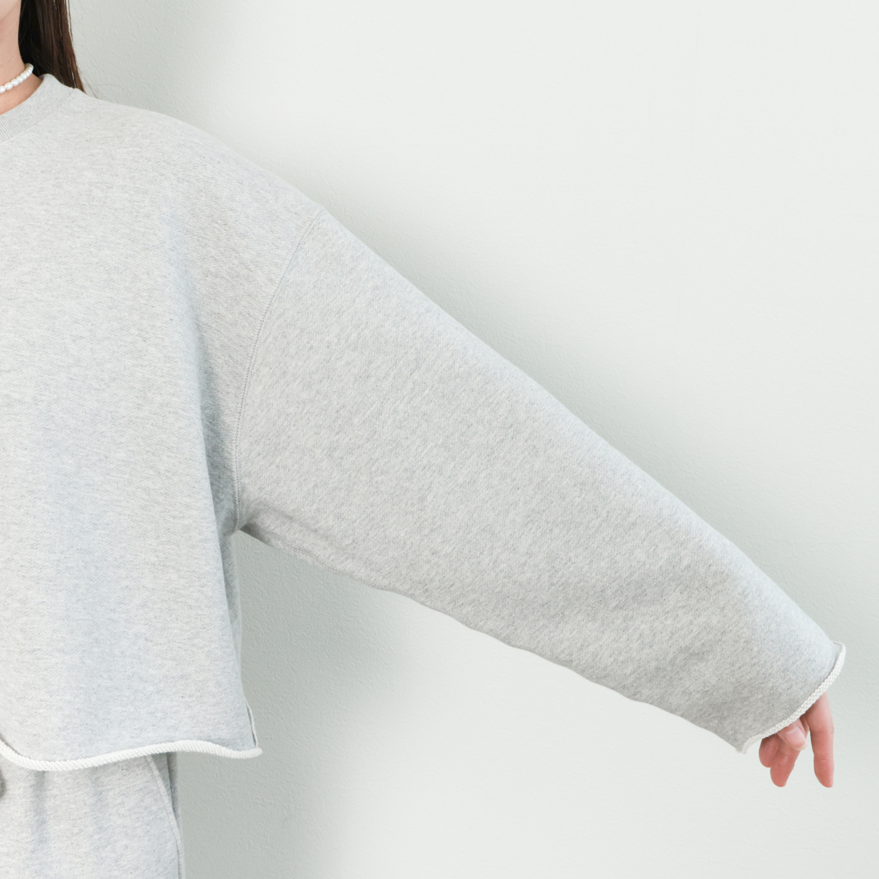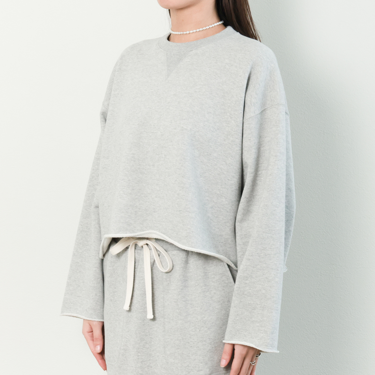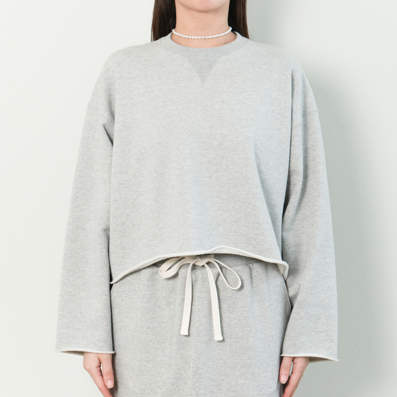 SACRA サクラ レディース スウェット コットン 長袖 丸首 クロップド カットオフ EXTRA FINE FLEECE 126141091 GRAY/グレー