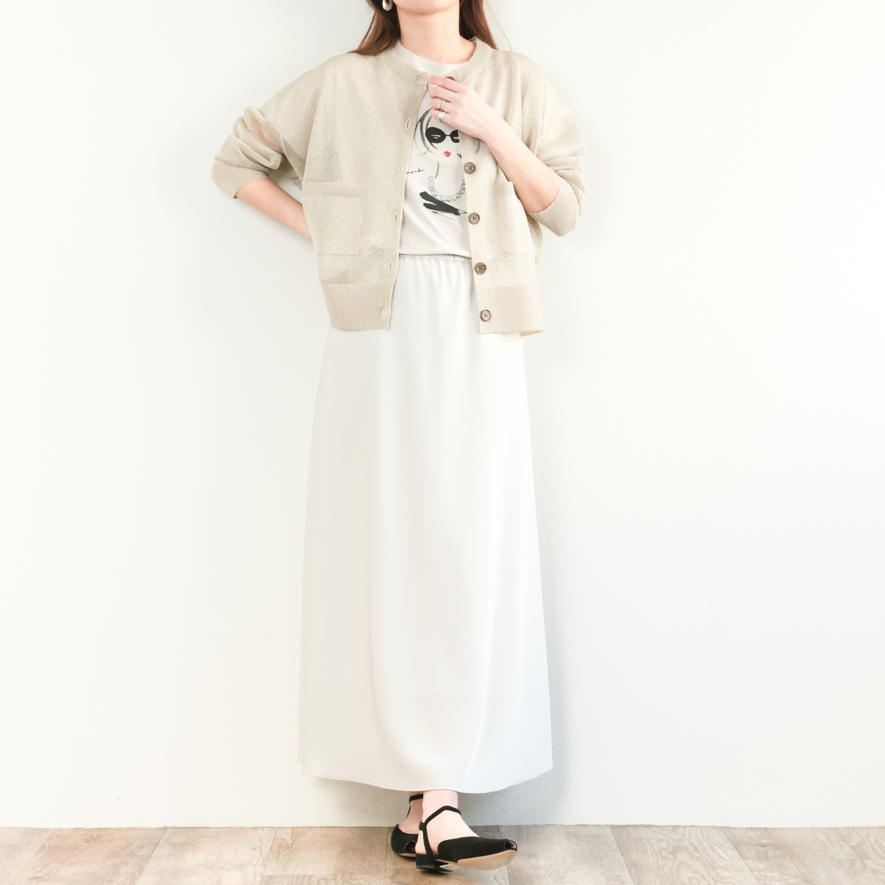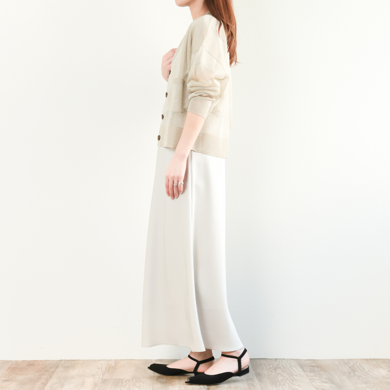 モデル 接触冷感 バイアスイージーロングスカート