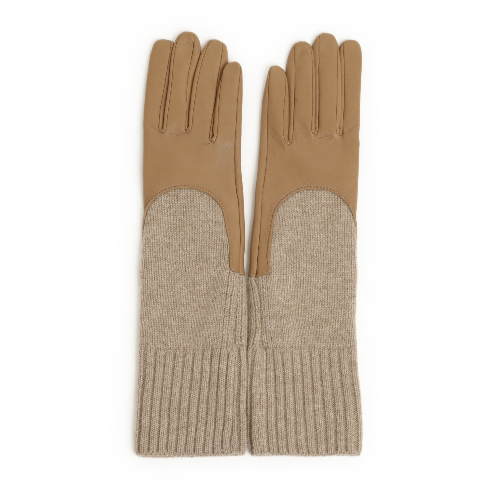 ライニングは切り替えのニット同様にカシミヤ100%のニットを使用。レザーの柔らかさを損なうことなくライニングも優しく手元を包み込み、天然素材の持つ保温性と柔らかさをご体感いただけます。冷え込みの厳しい時期も手元を暖かく保ちます。