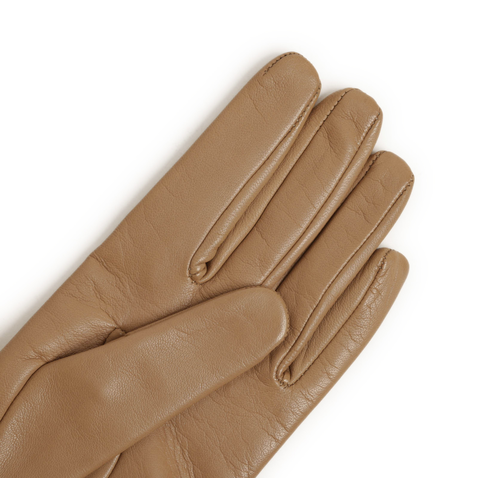 指先から手のひら、手の甲にかけてはきめ細かくソフトなラムナッパレザーを使用。着け始めからよく手に馴染み、第二の皮膚かのようなフィット感で手を包み込みます。