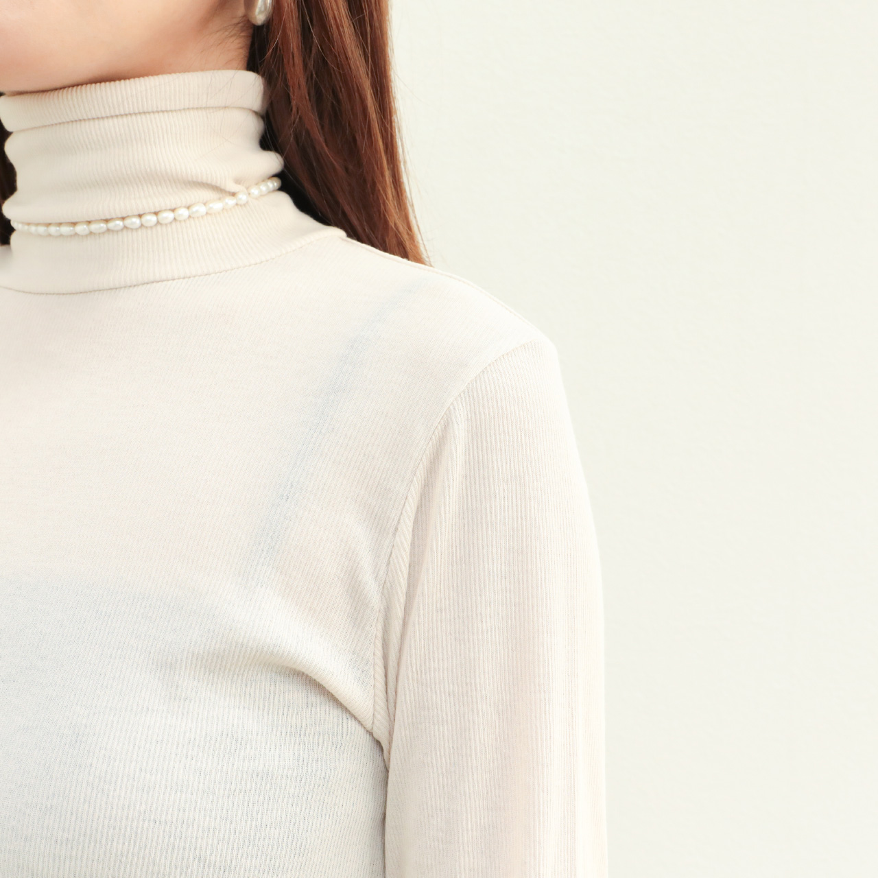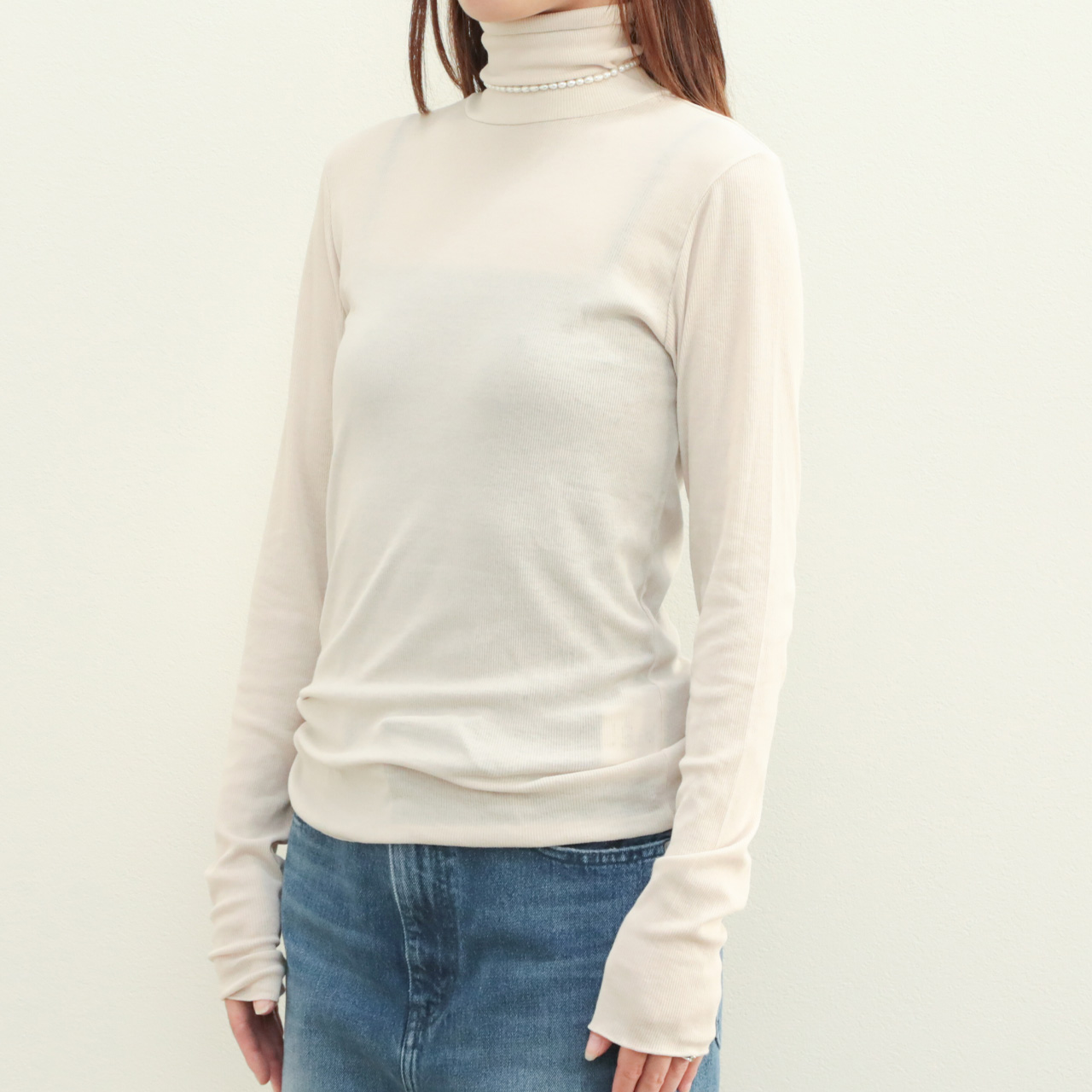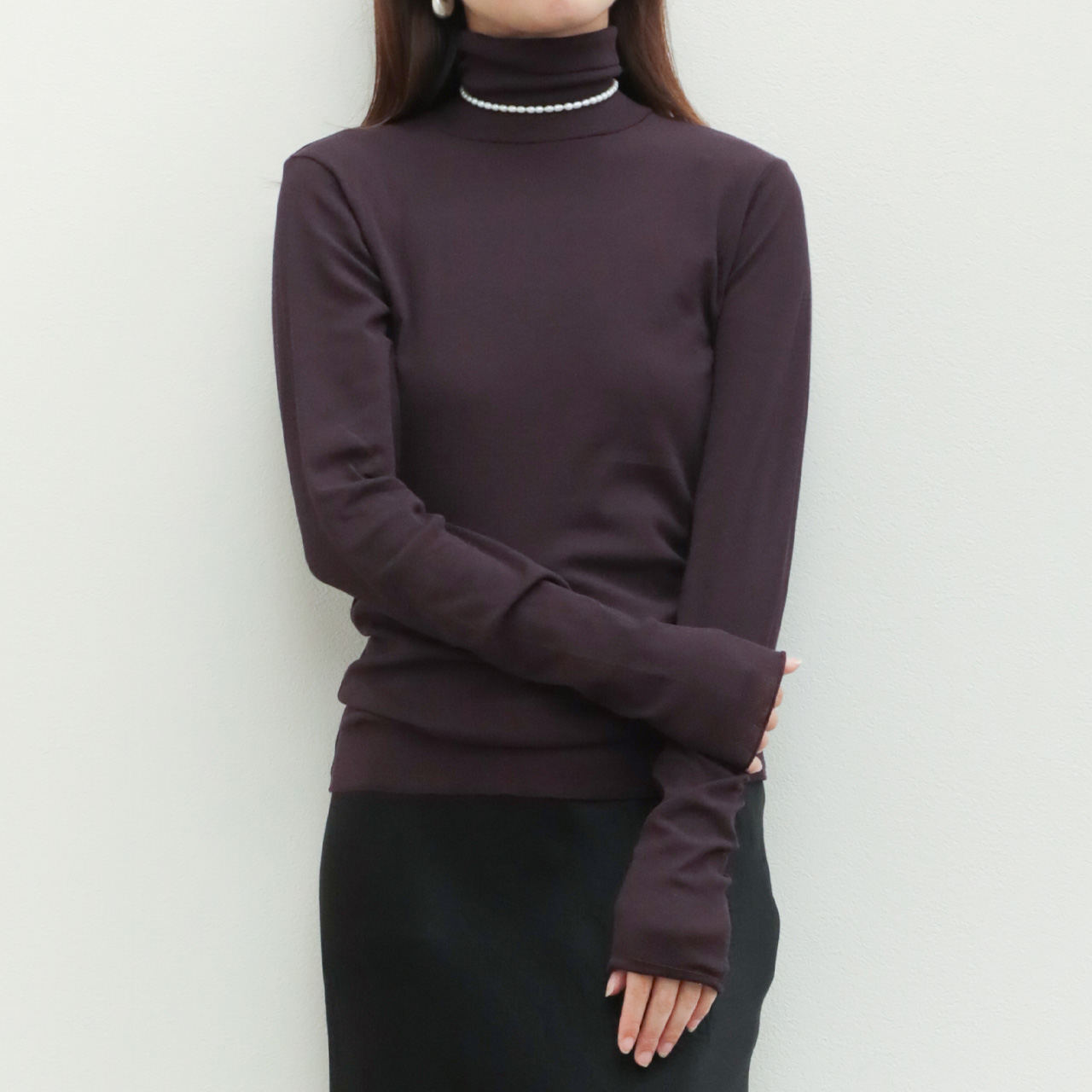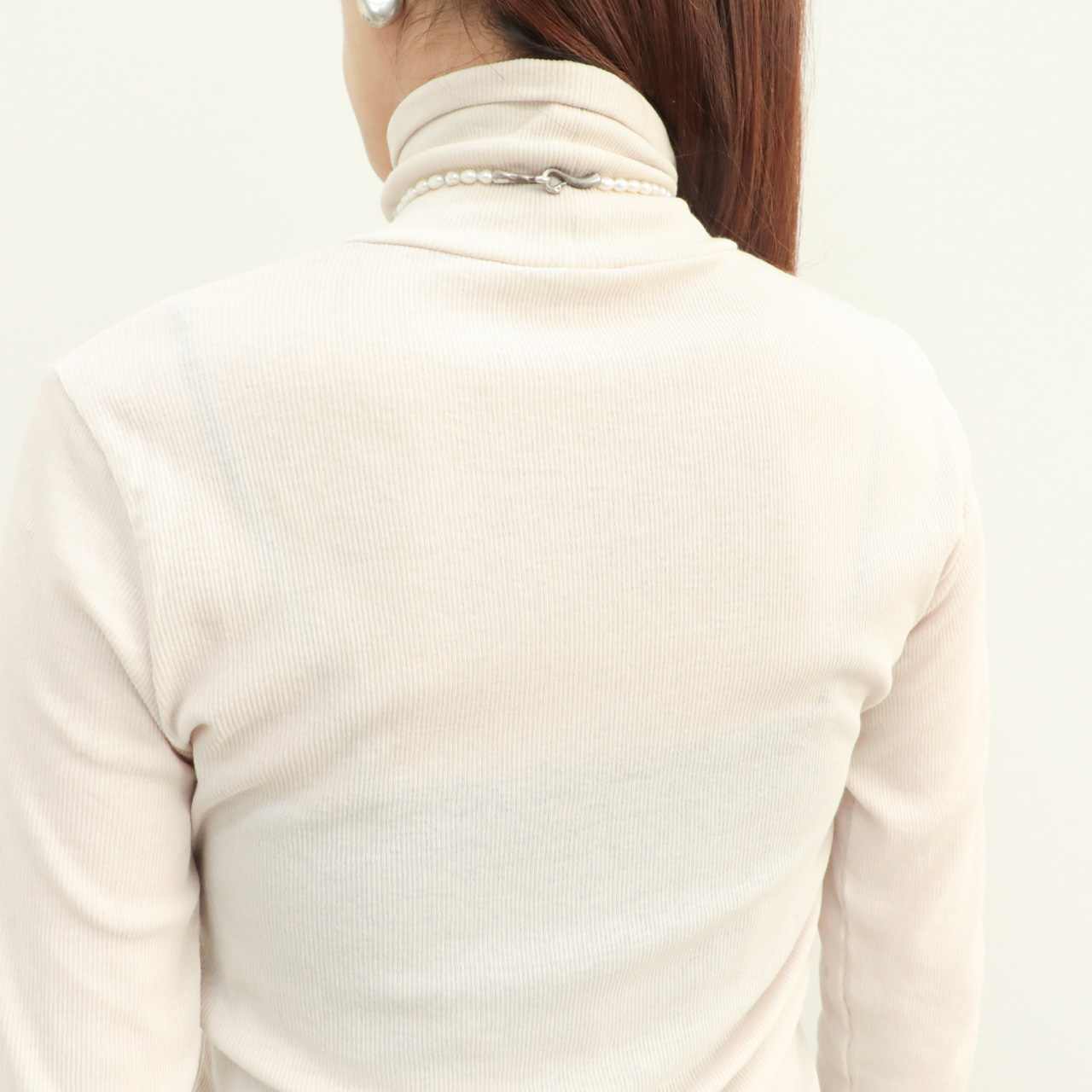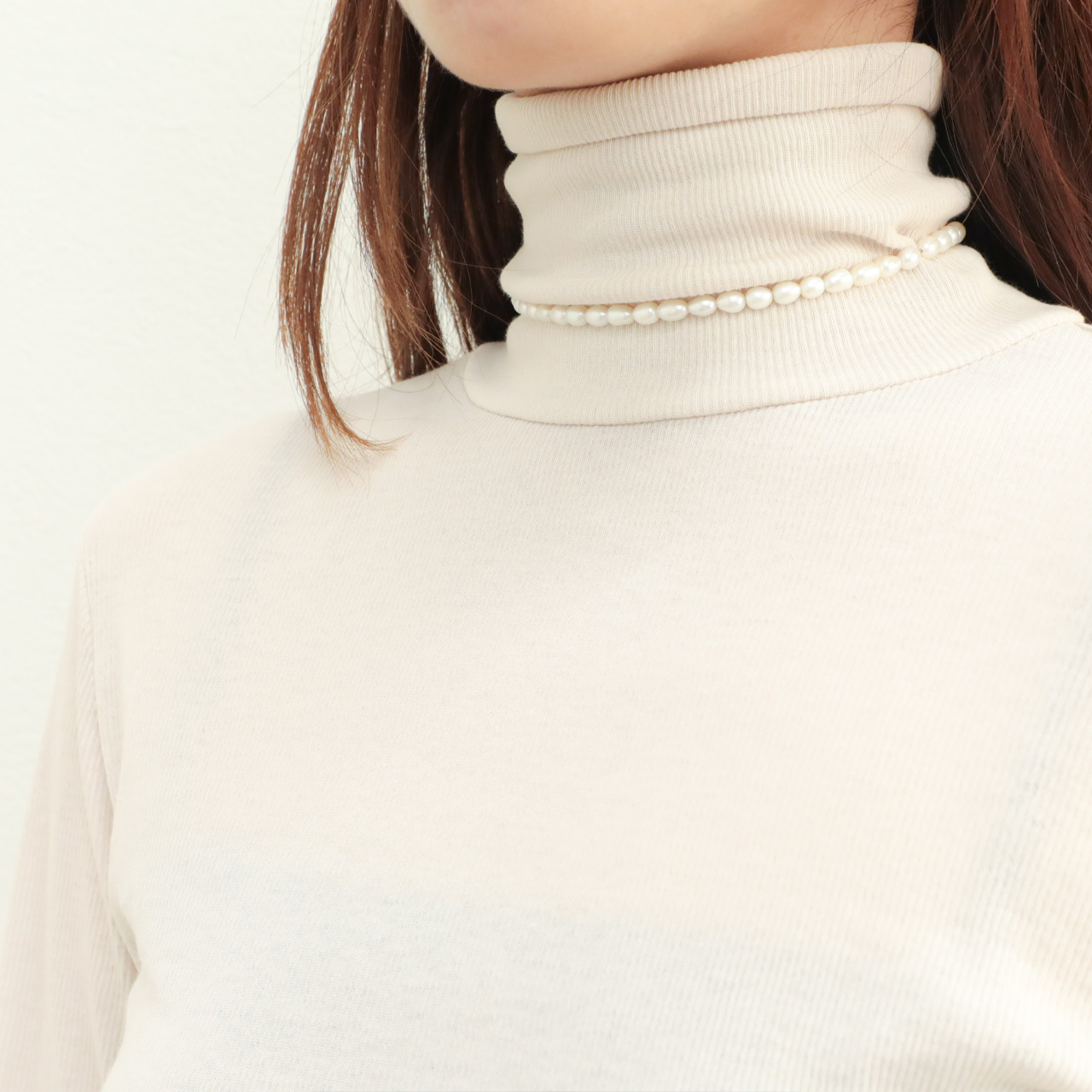 今季は細やかなリブ編みのデザインが柔らかく体にフィットし、上品さと洗練された印象のタートルネックプルオーバーをご用意しました。