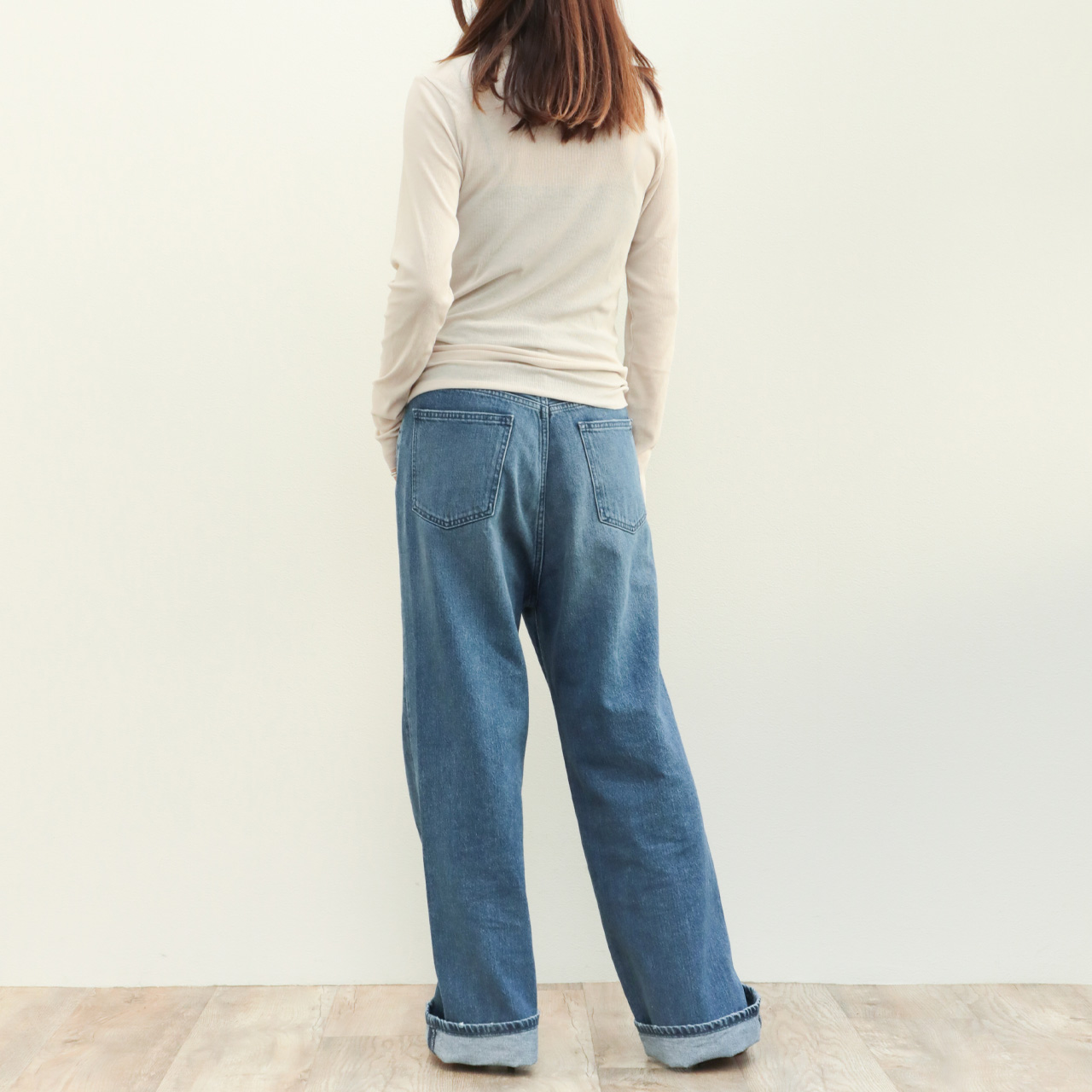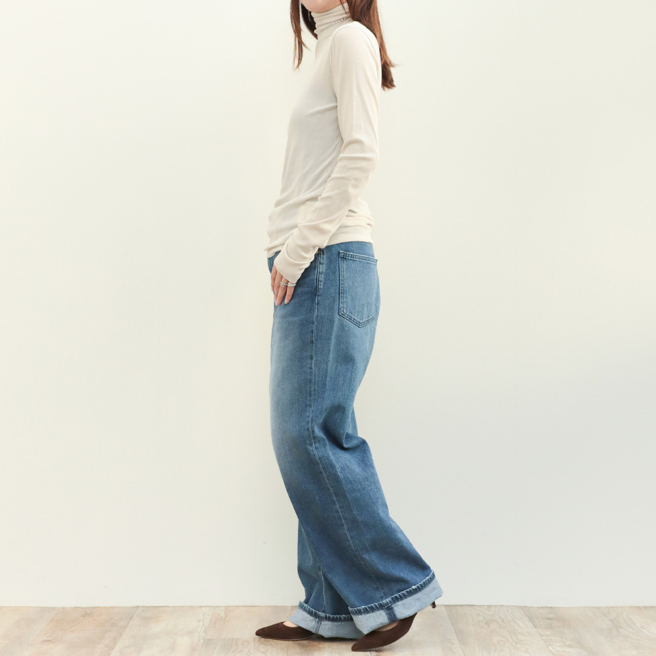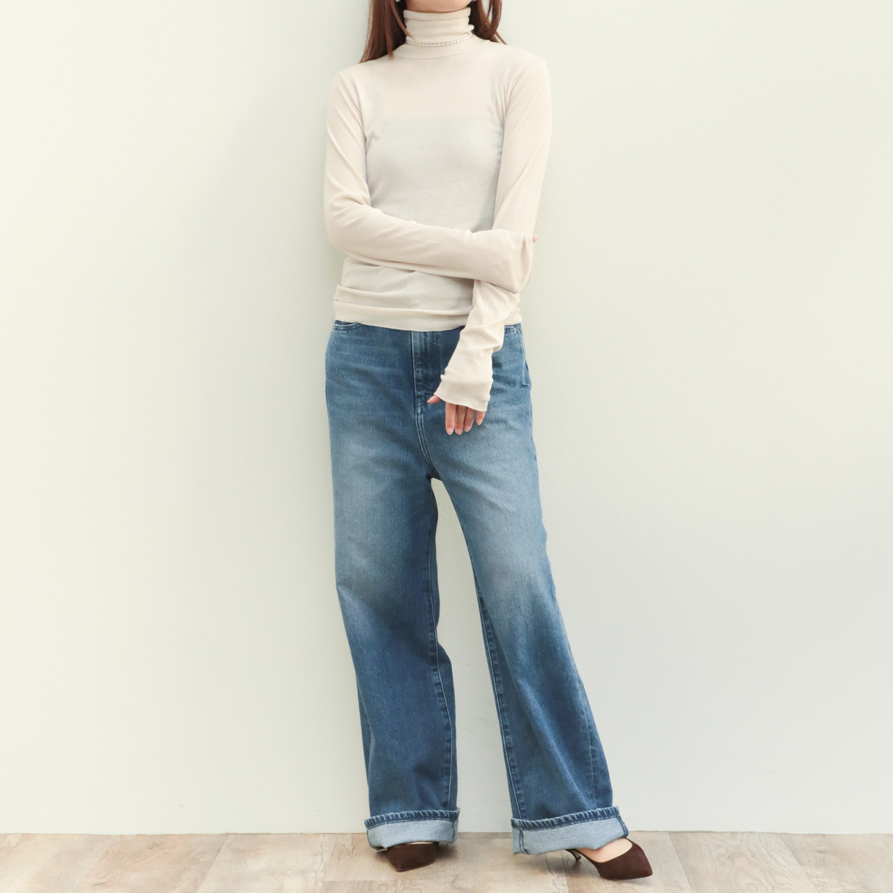 薄手の生地感ですので、着ぶくれ感を気にせず着用いただけます。一枚での着用はもちろん、テーラード、レザージャケットのインナーにもOK。時期によってはダウンベストのインの一枚ととしてもオススメ。