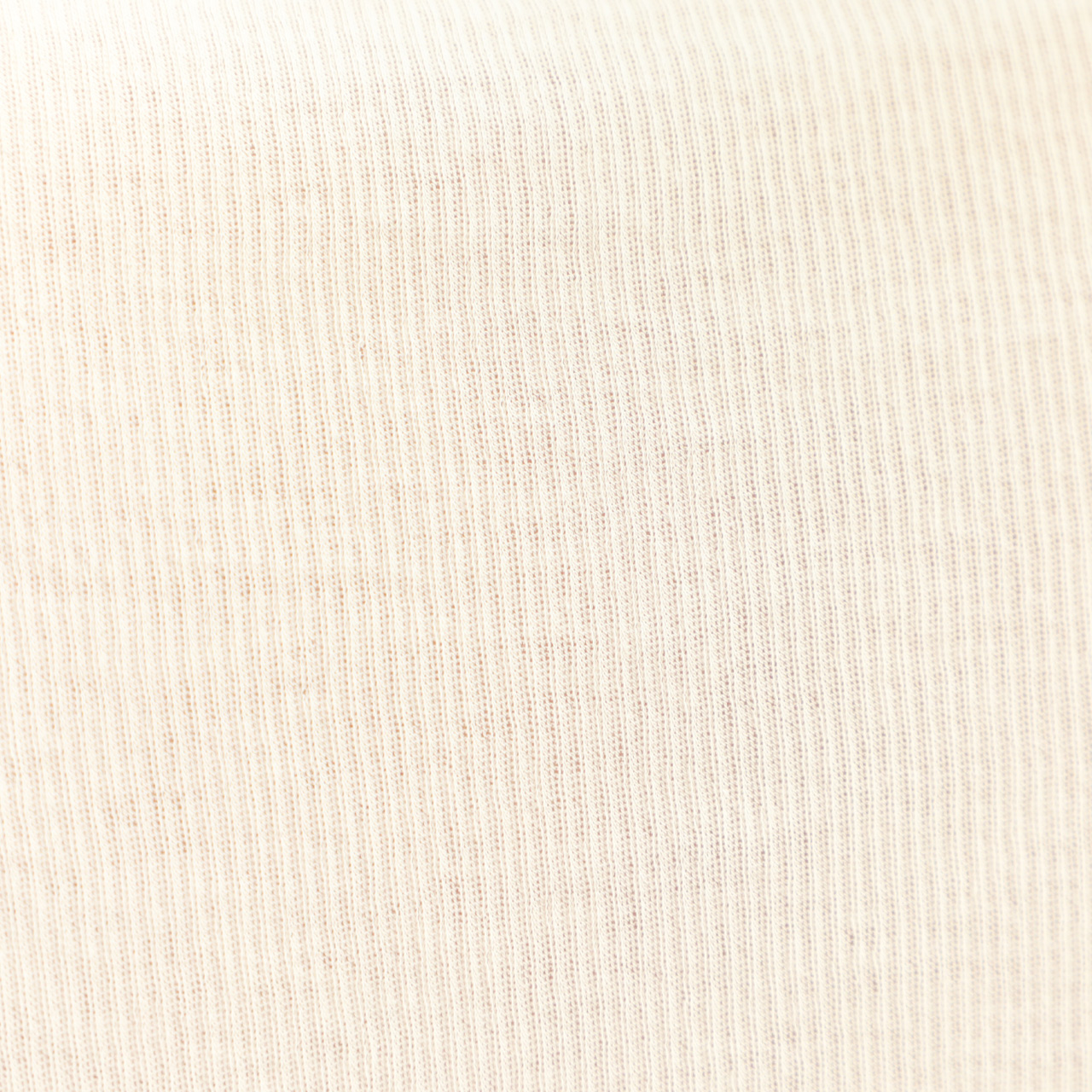 素材は超長綿スーピマコットン。そのスーピマコットンの強撚糸を使用し繊細なテレコを編み上げました。伸縮性が高く、ふんわりとした柔らかさ、サラサラとした心地よいタッチが特徴です。