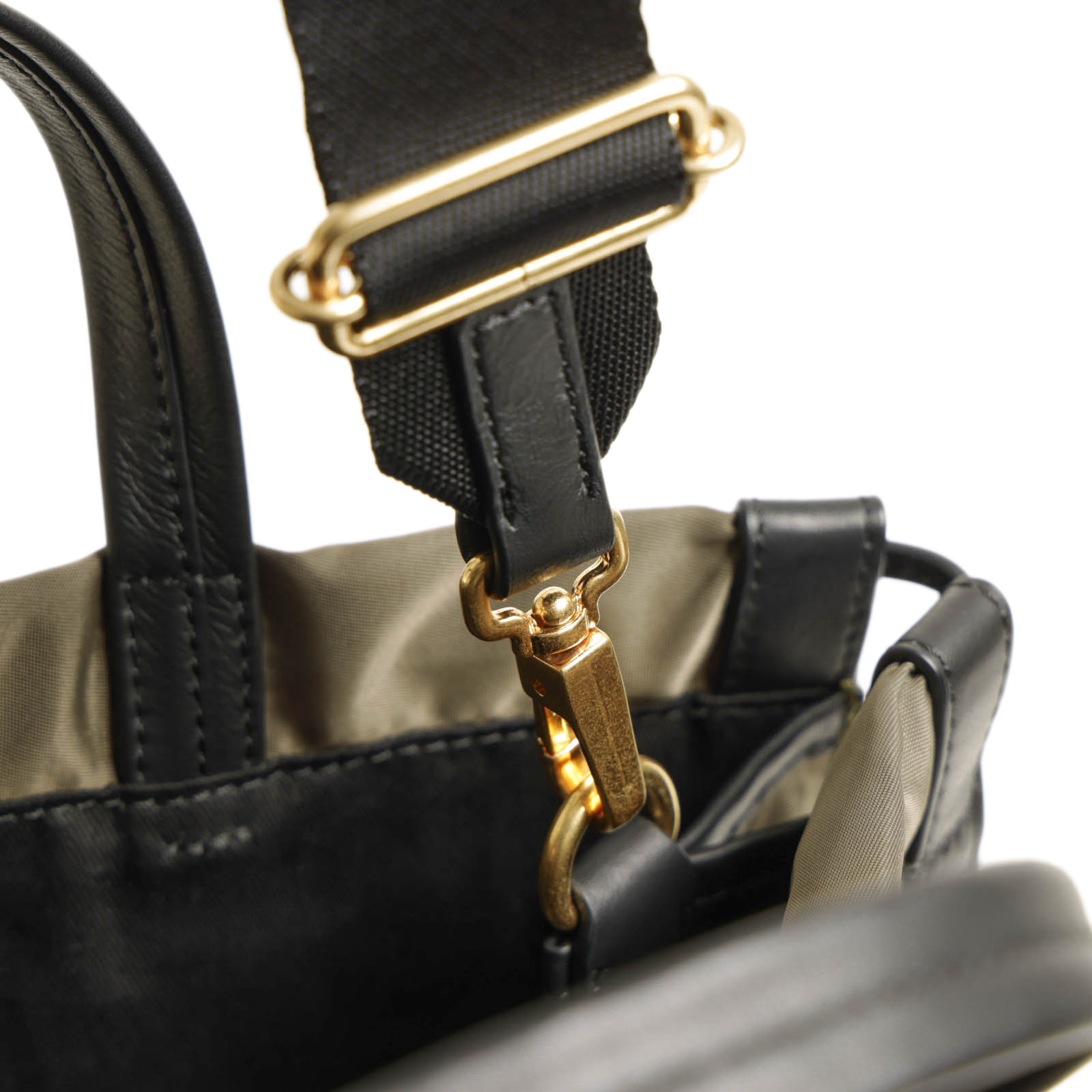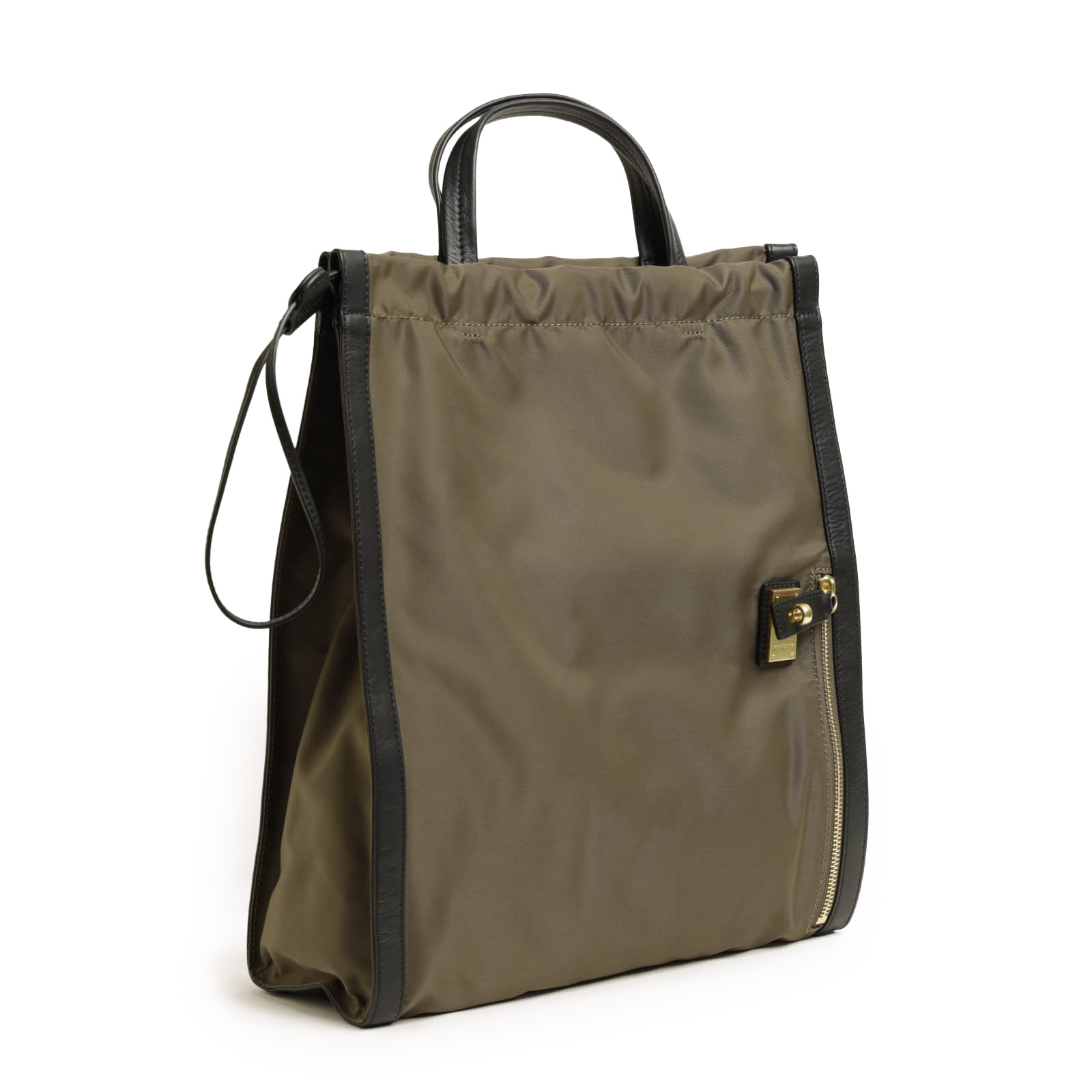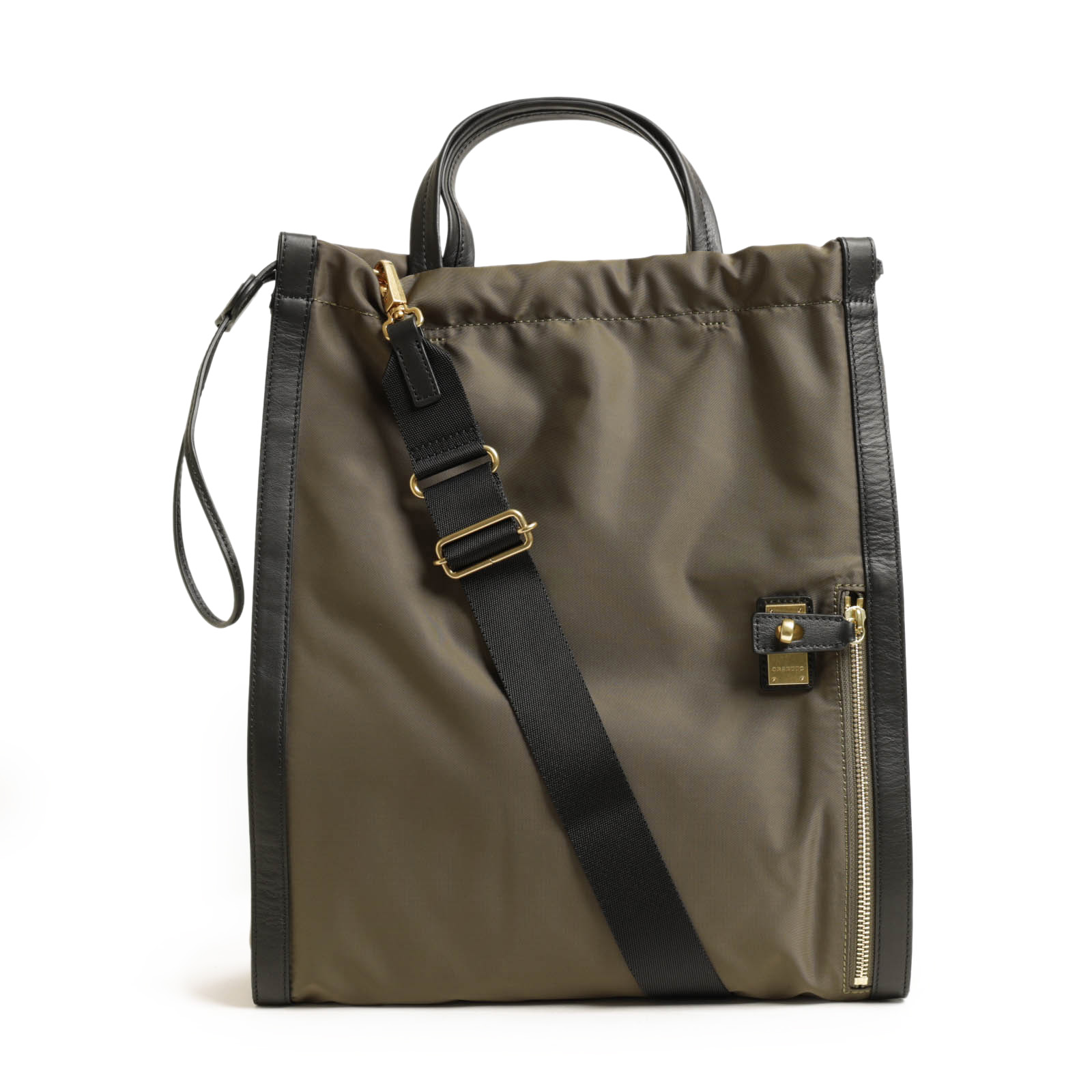 ベースのナイロンは程よい光沢感があり、自然な艶が感じられるレザーとのマッチングが◎。ORSETTOのアイコン的ヒネリ金具がアクセントになり、カジュアル感を程よく抑えてくれます。