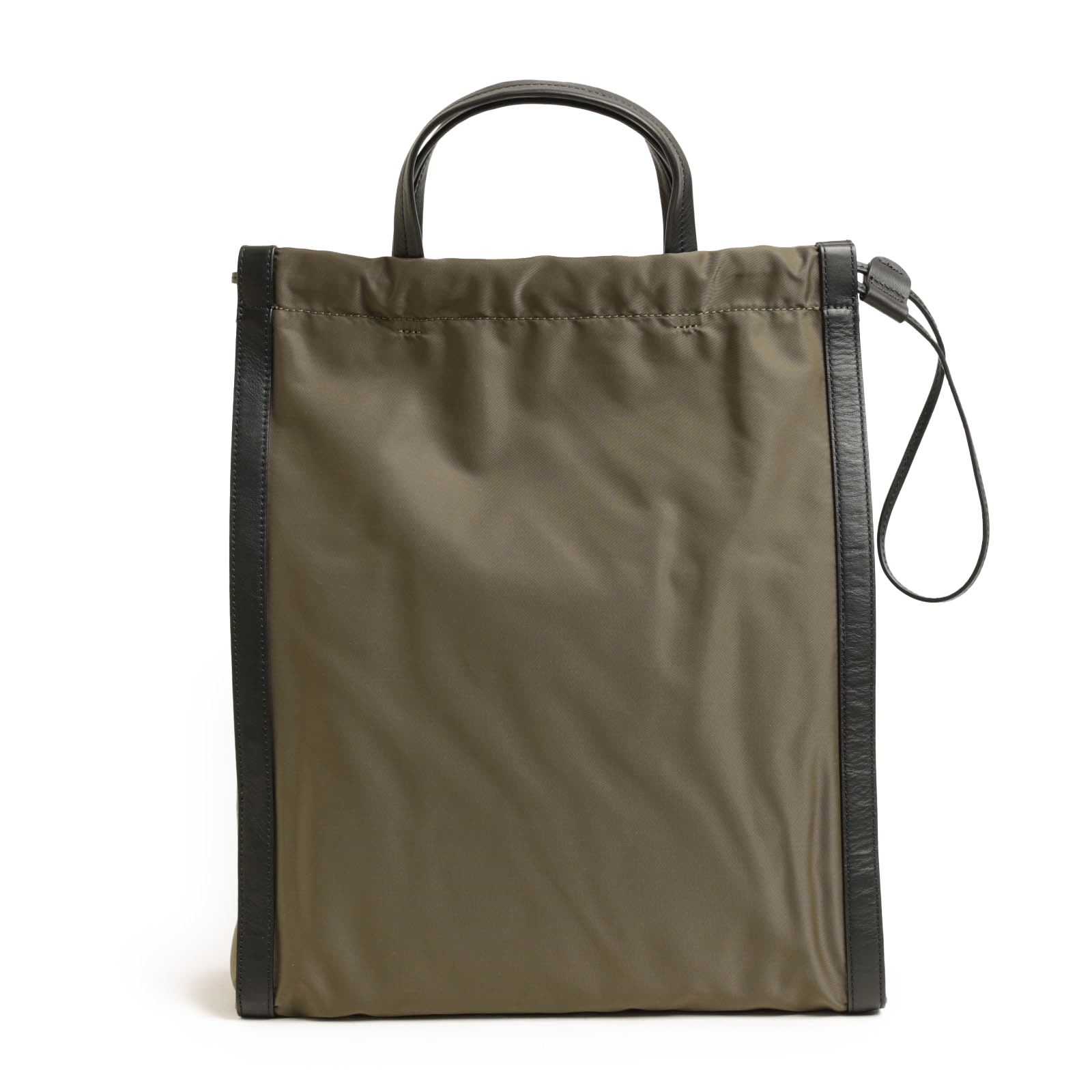 こちらは素材切り替えがポイントとなったバッグ。ショルダー、ハンドの2WAY仕様に加えて、天井部分が巾着仕様で様々な表情を楽しめる本モデル。A4も入るサイズ感で高い収納力を持っているのもポイント。