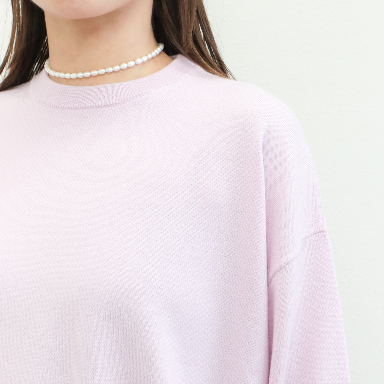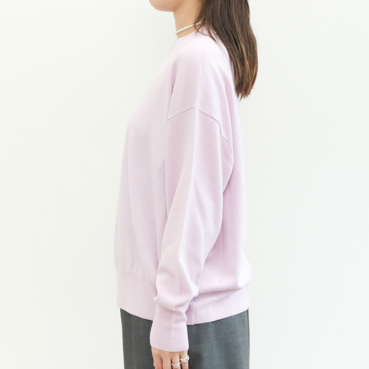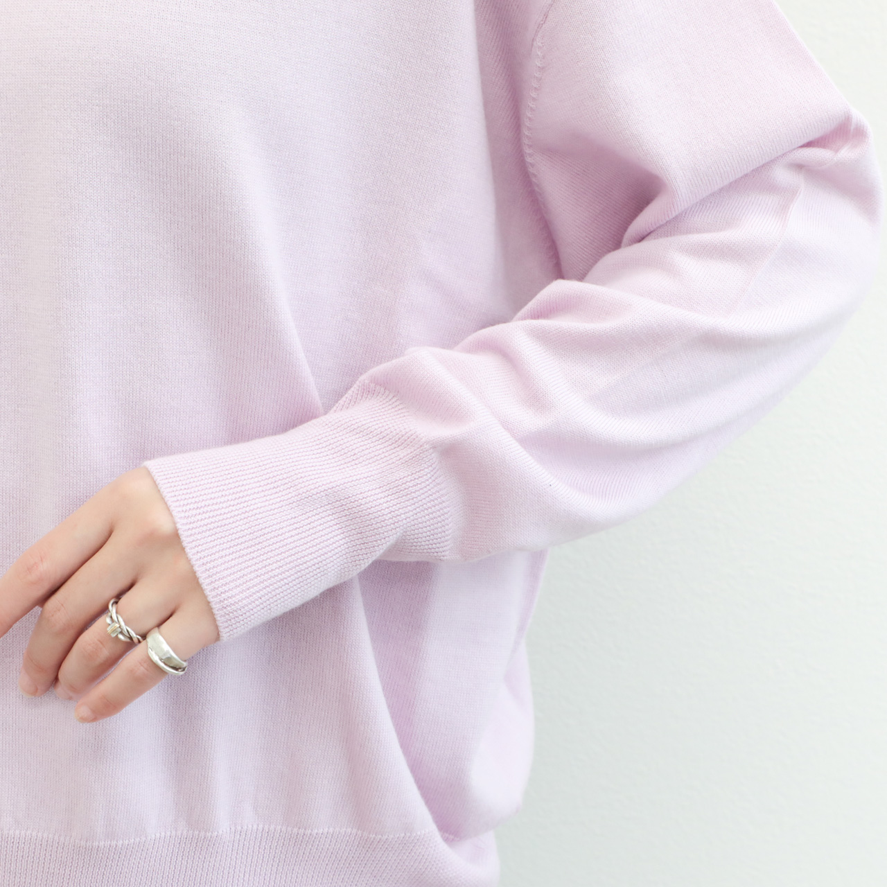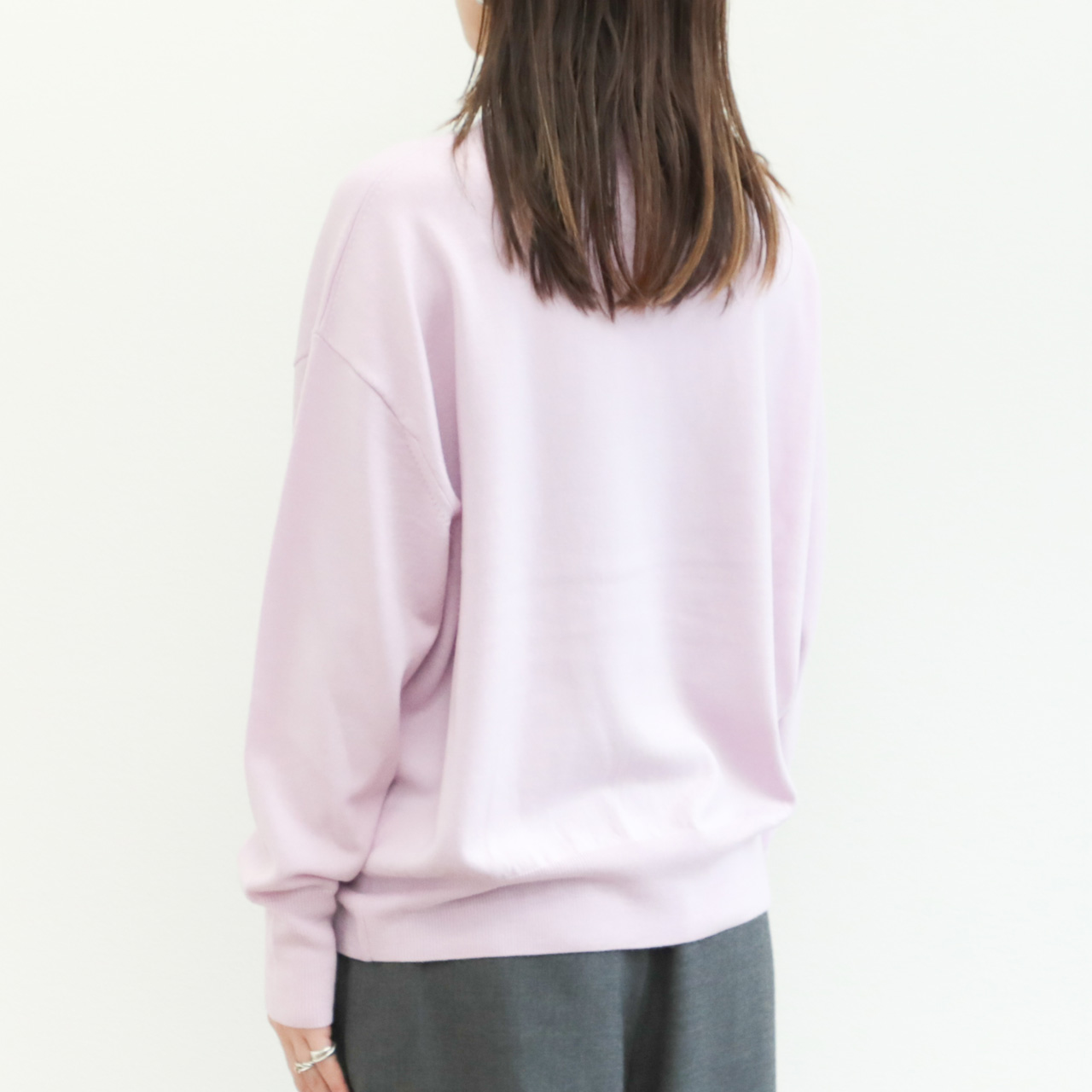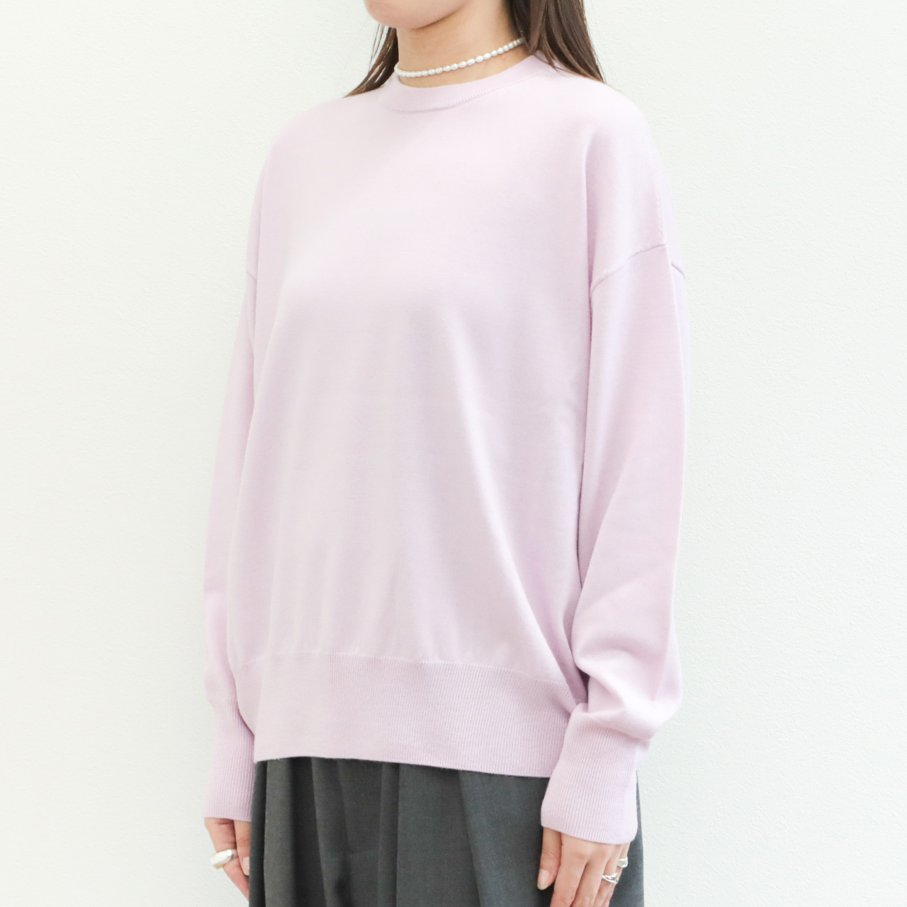 ベーシックな作りに絶妙なゆとりのオーバーサイズ感がポイント。ハイゲージで編み上げていますので、単品使いはもちろん、レイヤードスタイルのインナーとしても幅広い着こなしに活躍する一着です。