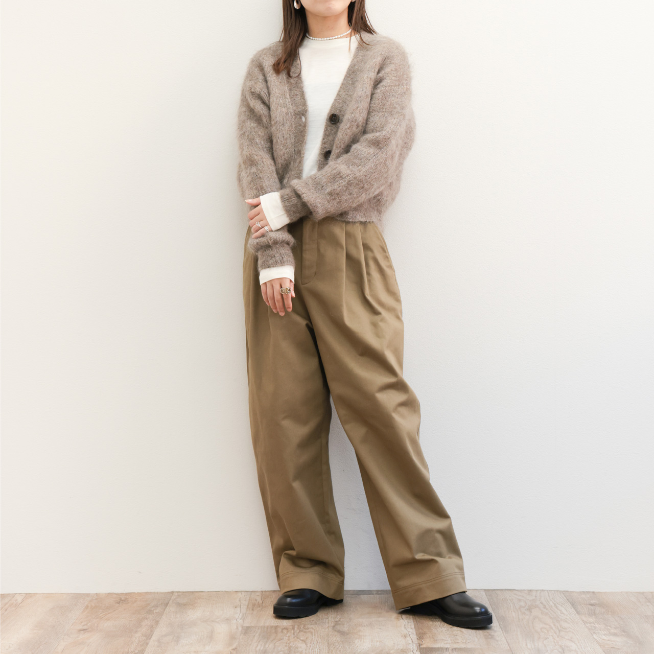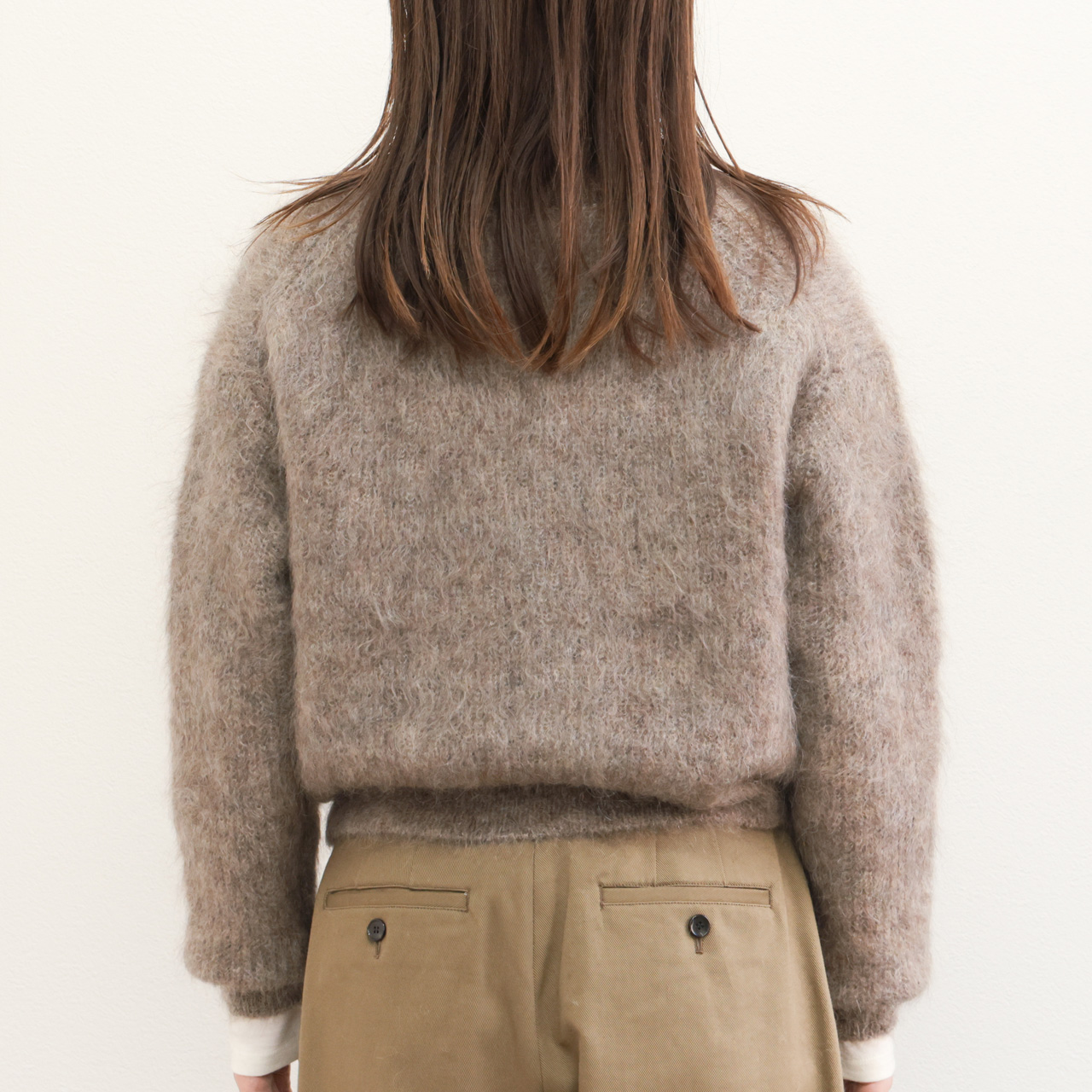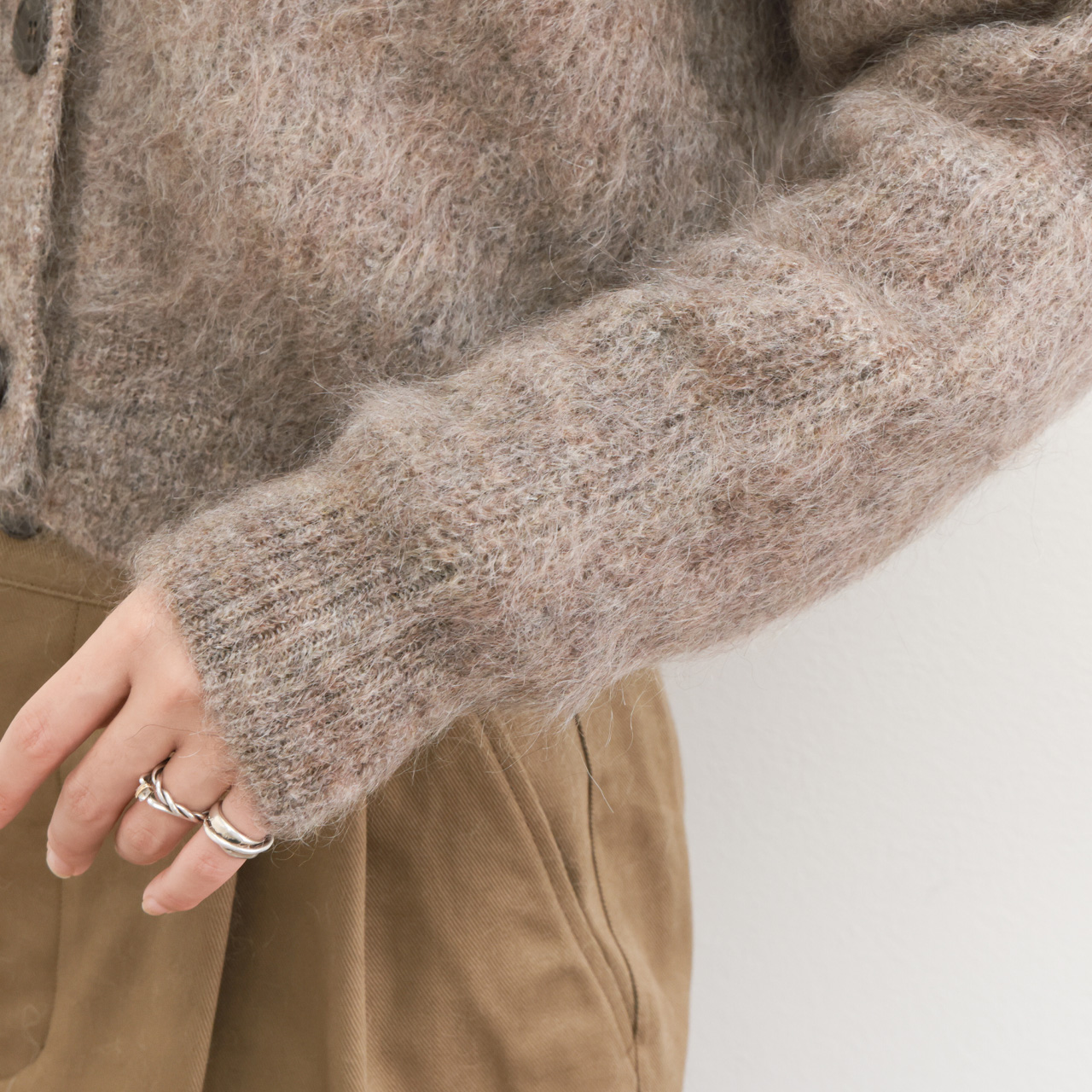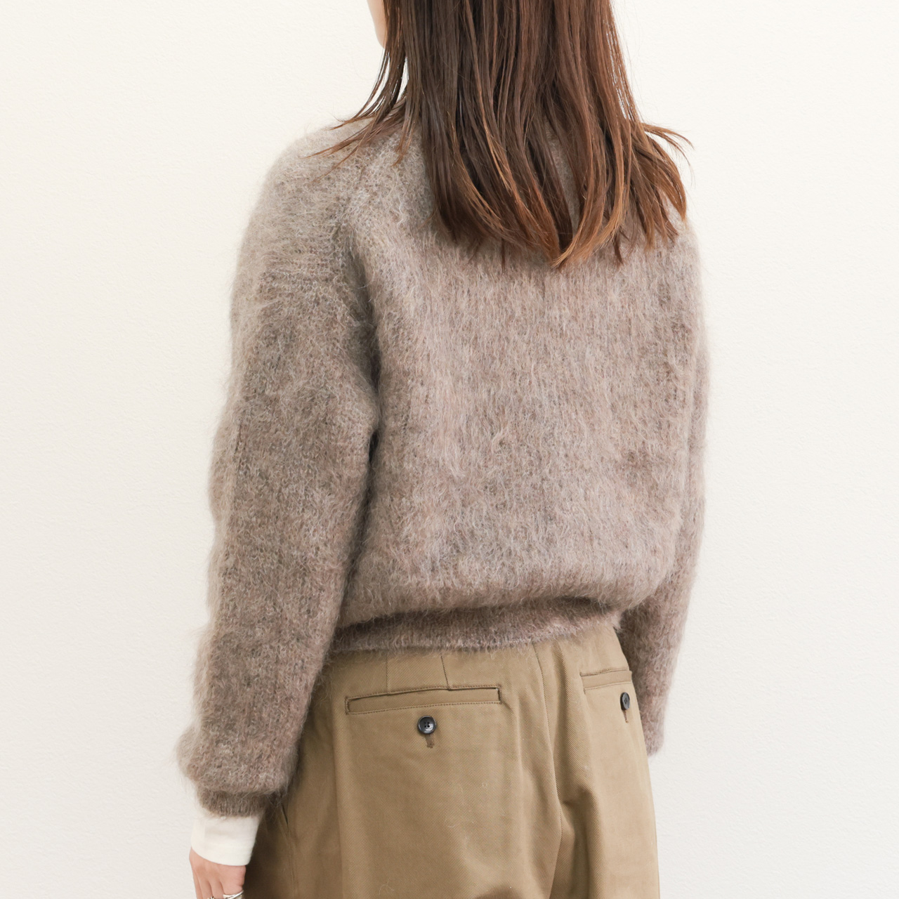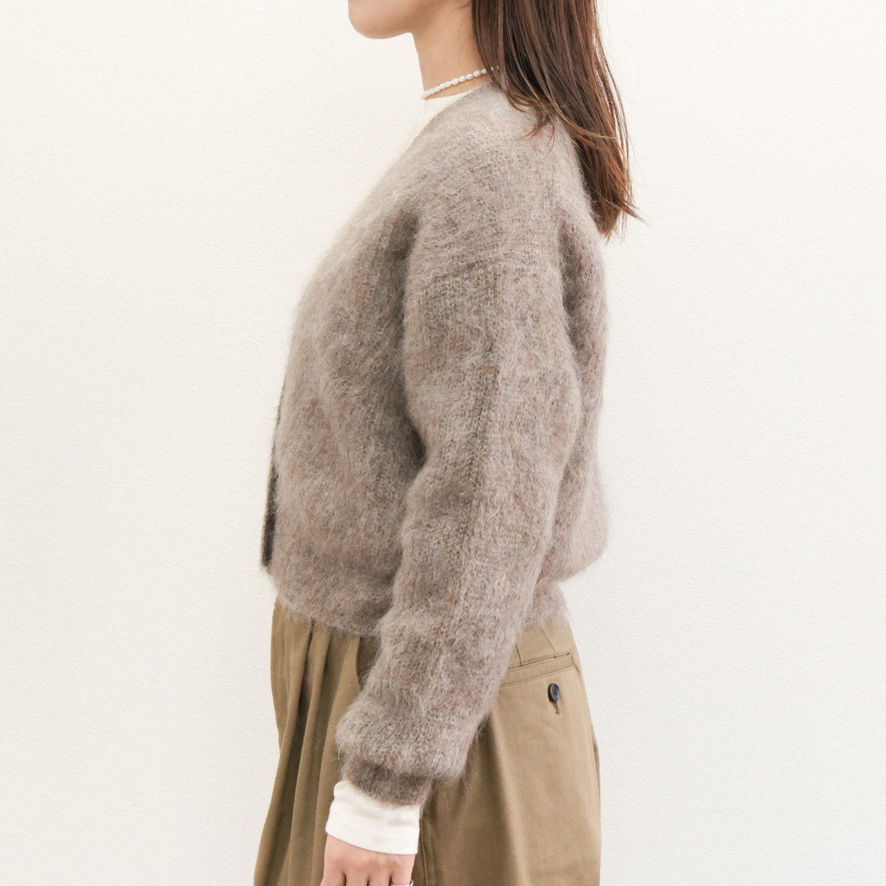 今季は柔らかく膨らみがあり、ヘアリーな表情が特徴の上質なイタリア製のキッドモヘヤを使用したクロップドカーディガンをオーダー。