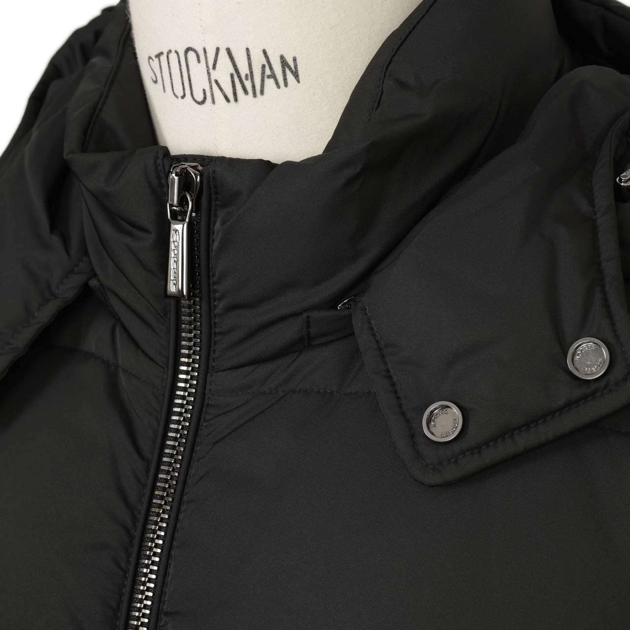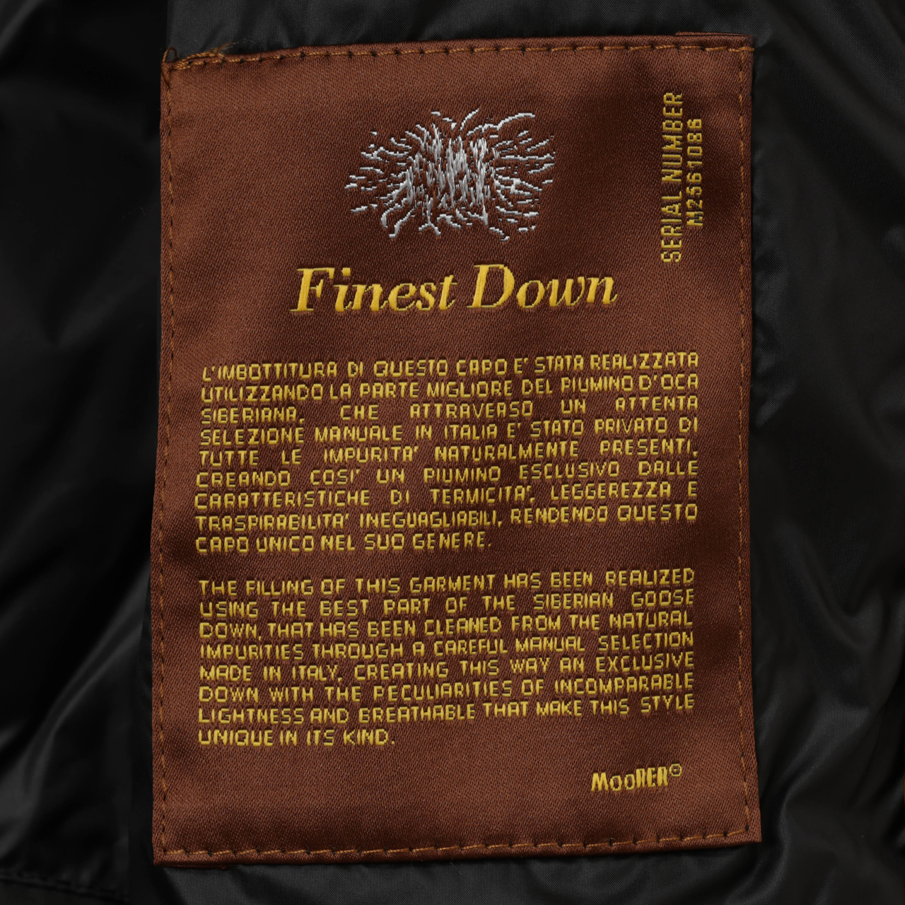 最高級ホワイトグースダウンを贅沢に使用しながらも、スッキリとしたフォルムが特徴であるMOORERの中では、ややボリューム感あるルックスが特徴。