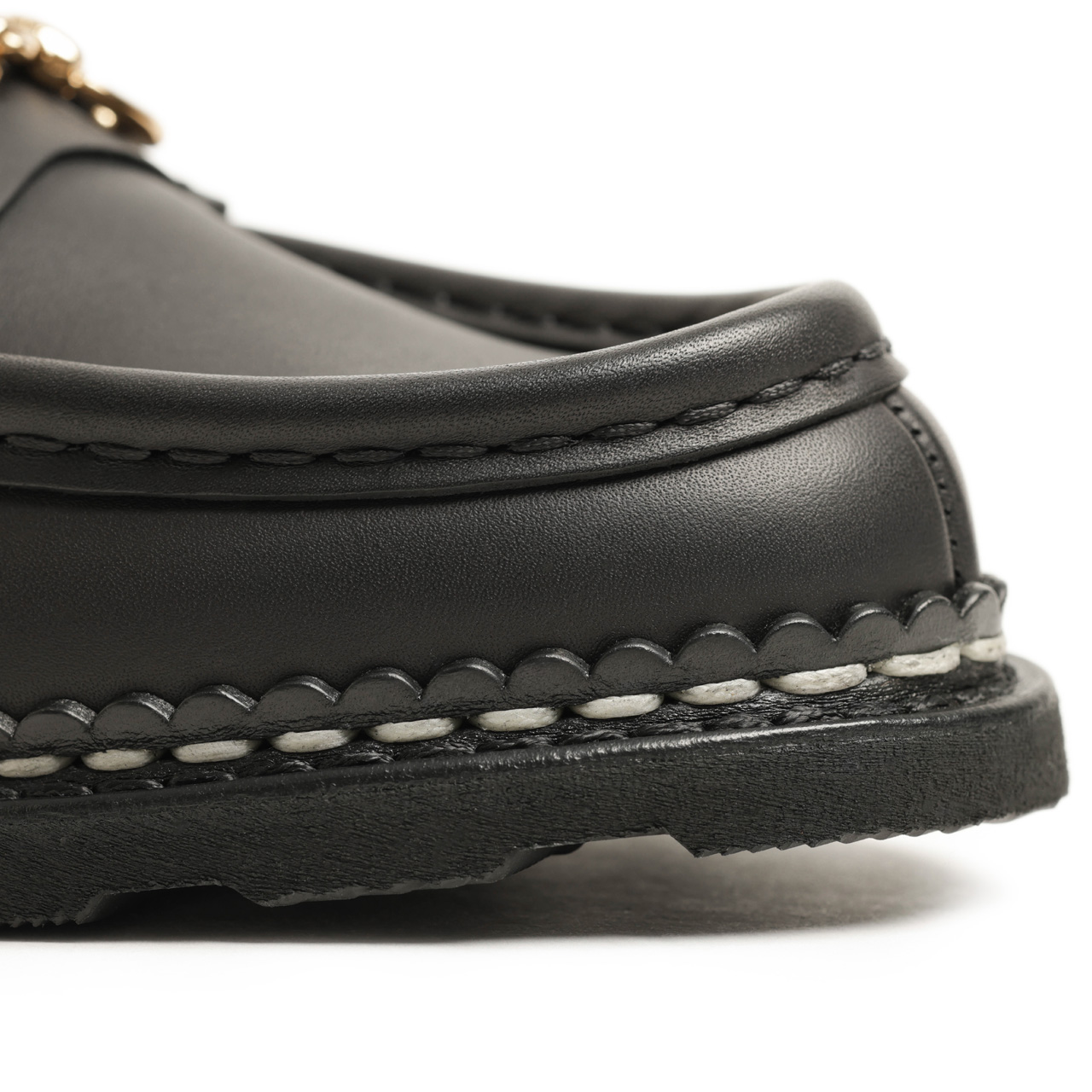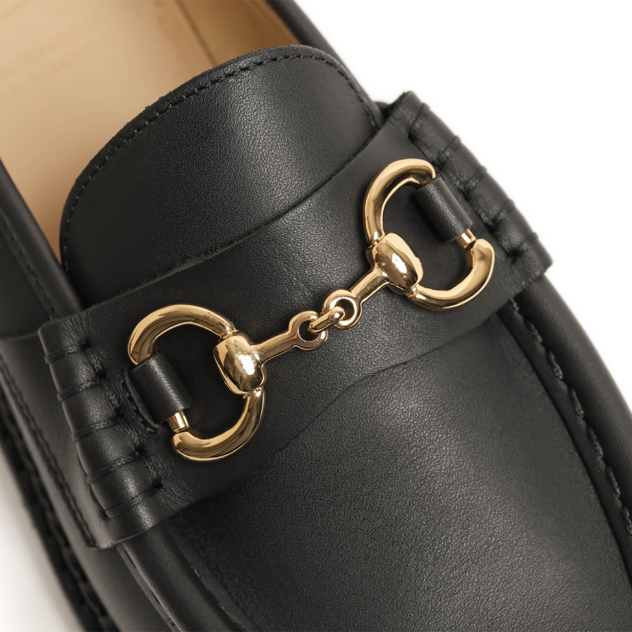 マットな質感のレザーと光沢感のあるビットとのコントラストは何ともモダンで、足元に存在感をプラスしてくれます。