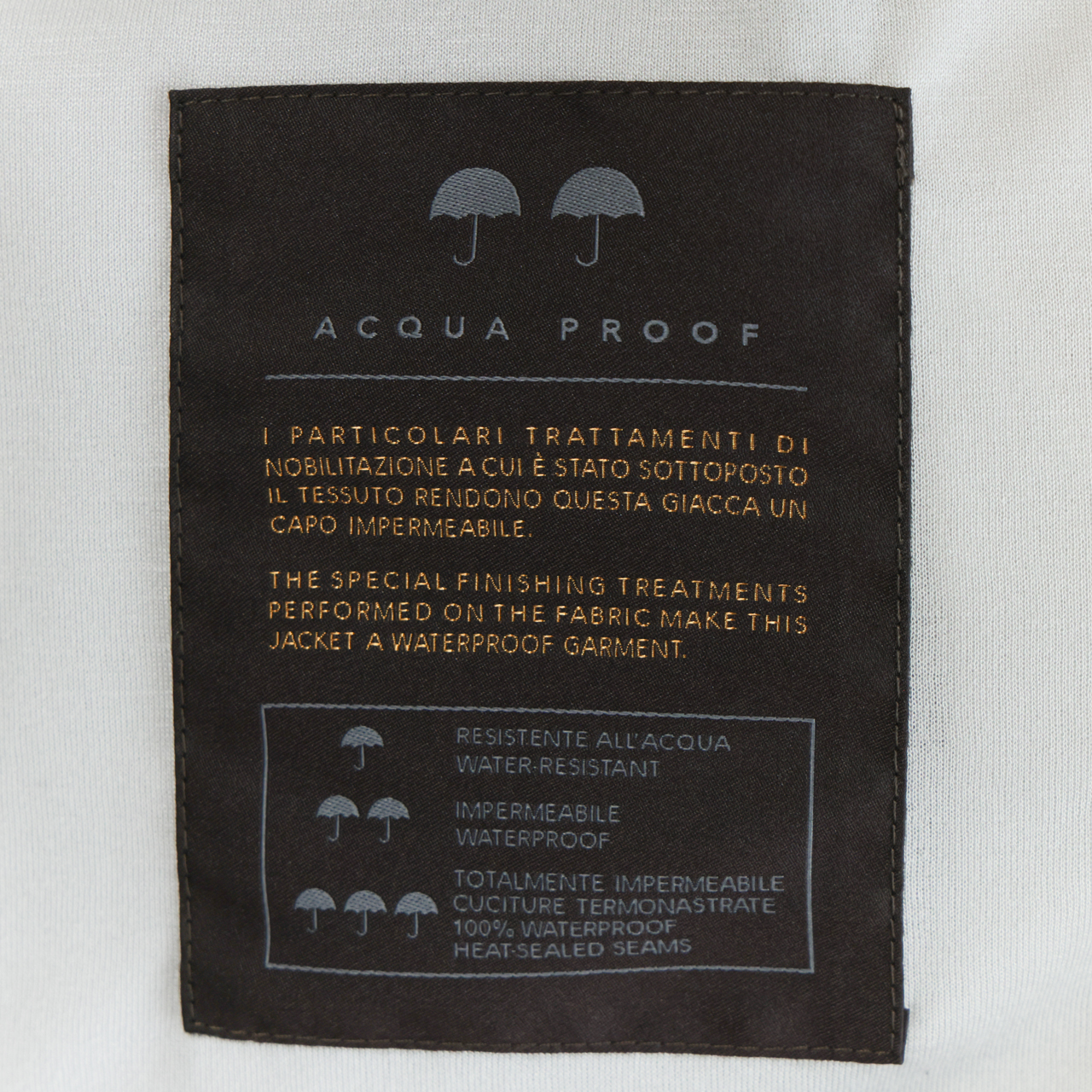 ネームが刻印されたオリジナルのジップ、釦やドローコードなど細かなところまで拘りつくし、他の追随を許さない品のある一着。