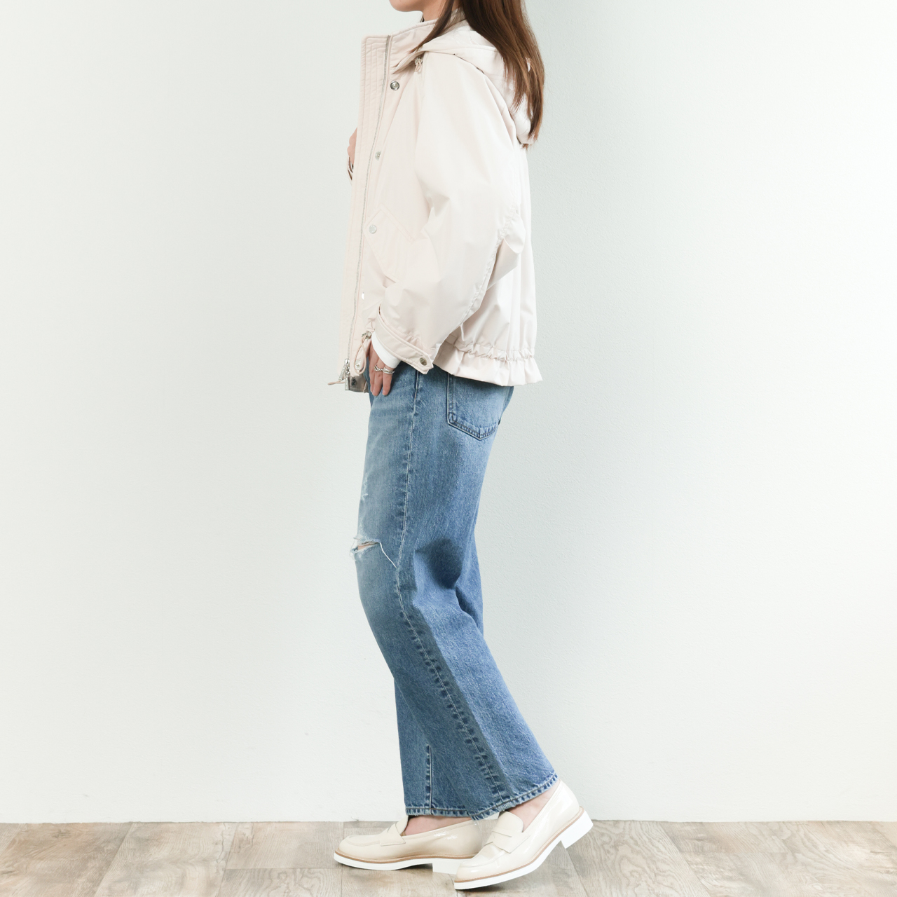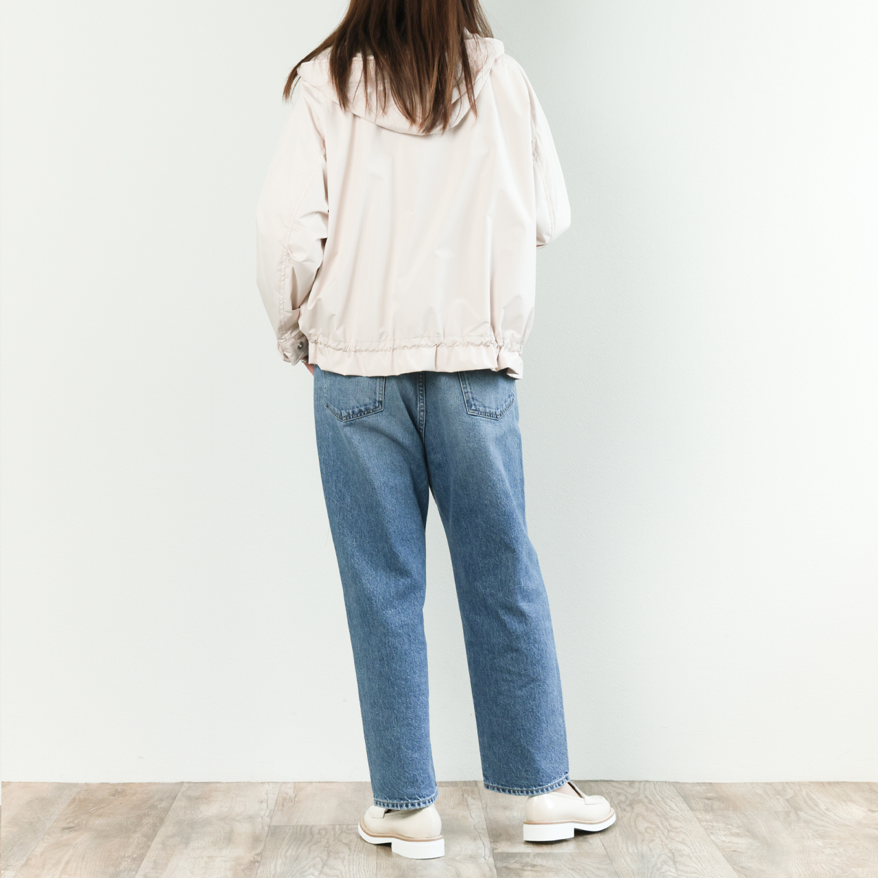 ただ、身幅を広めにすることで落ち感をプラス、裾にあしらったドローコードを締めることでギャザーを寄り、一気にフェミニンな雰囲気になるという、絶妙なデザイン具合がたまりません。