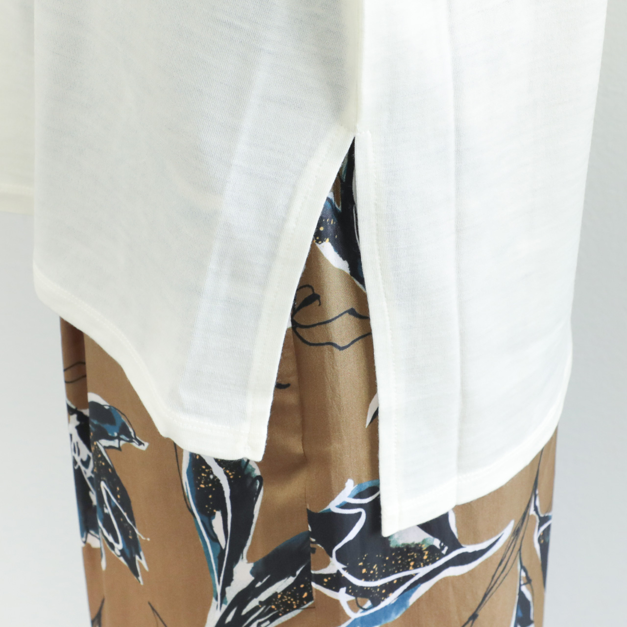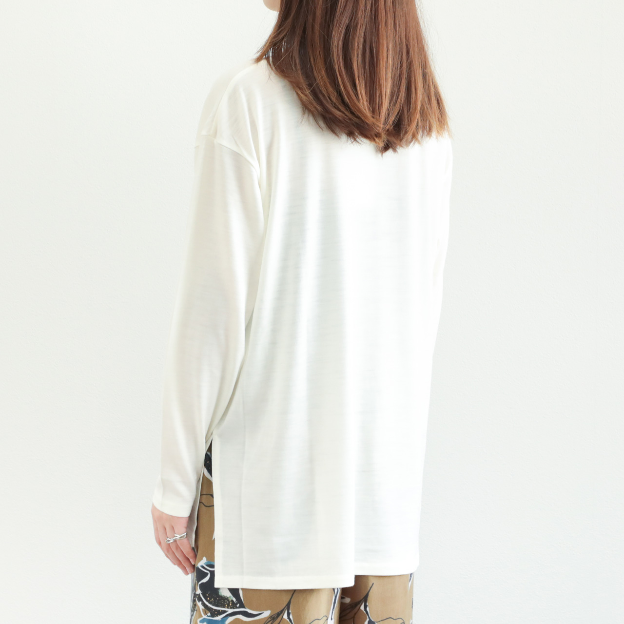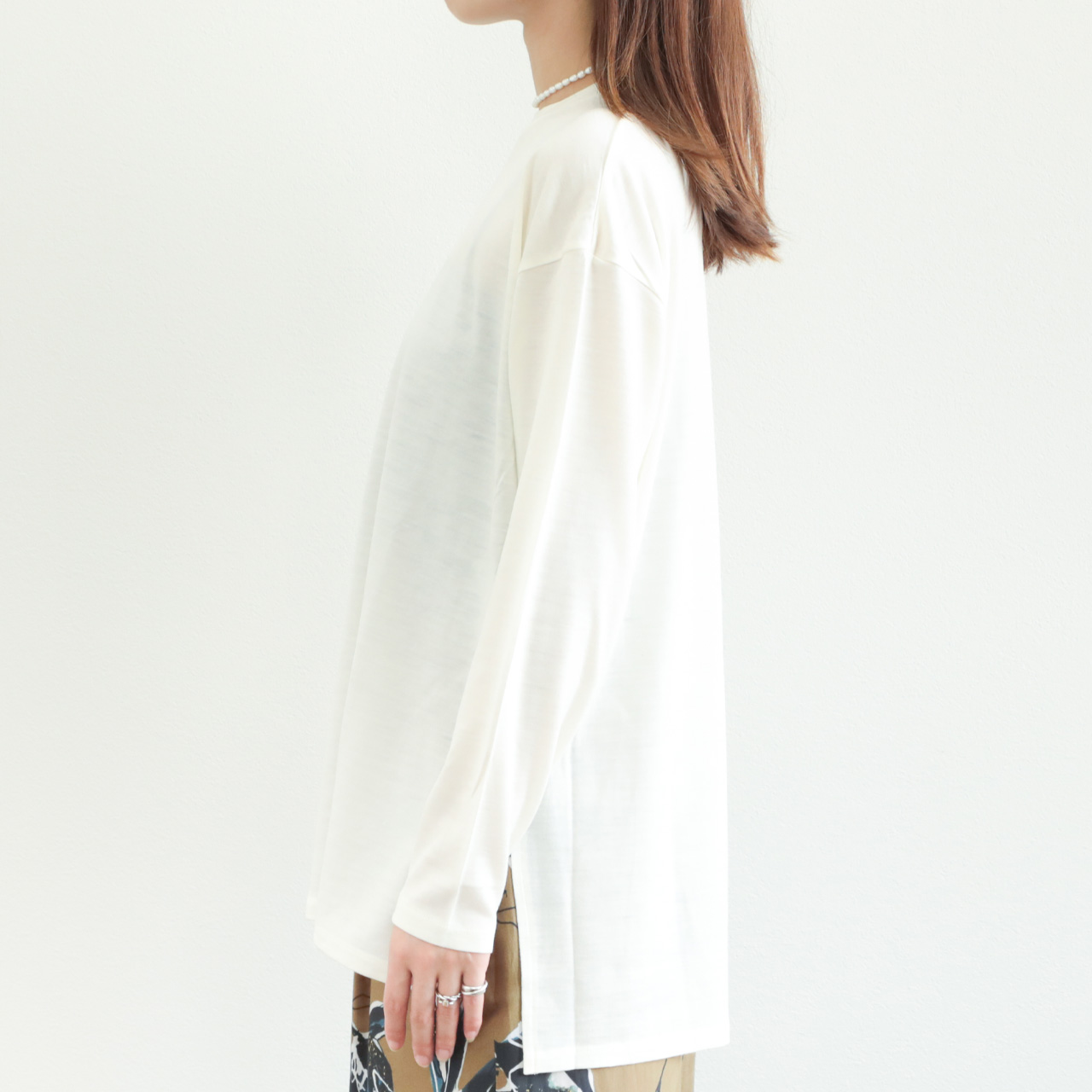 素材感の良さが引き立つクラス感のあるウールロンTです。一枚ではもちろん、ジレやレイヤードワンピースのインナーとしても活躍します。