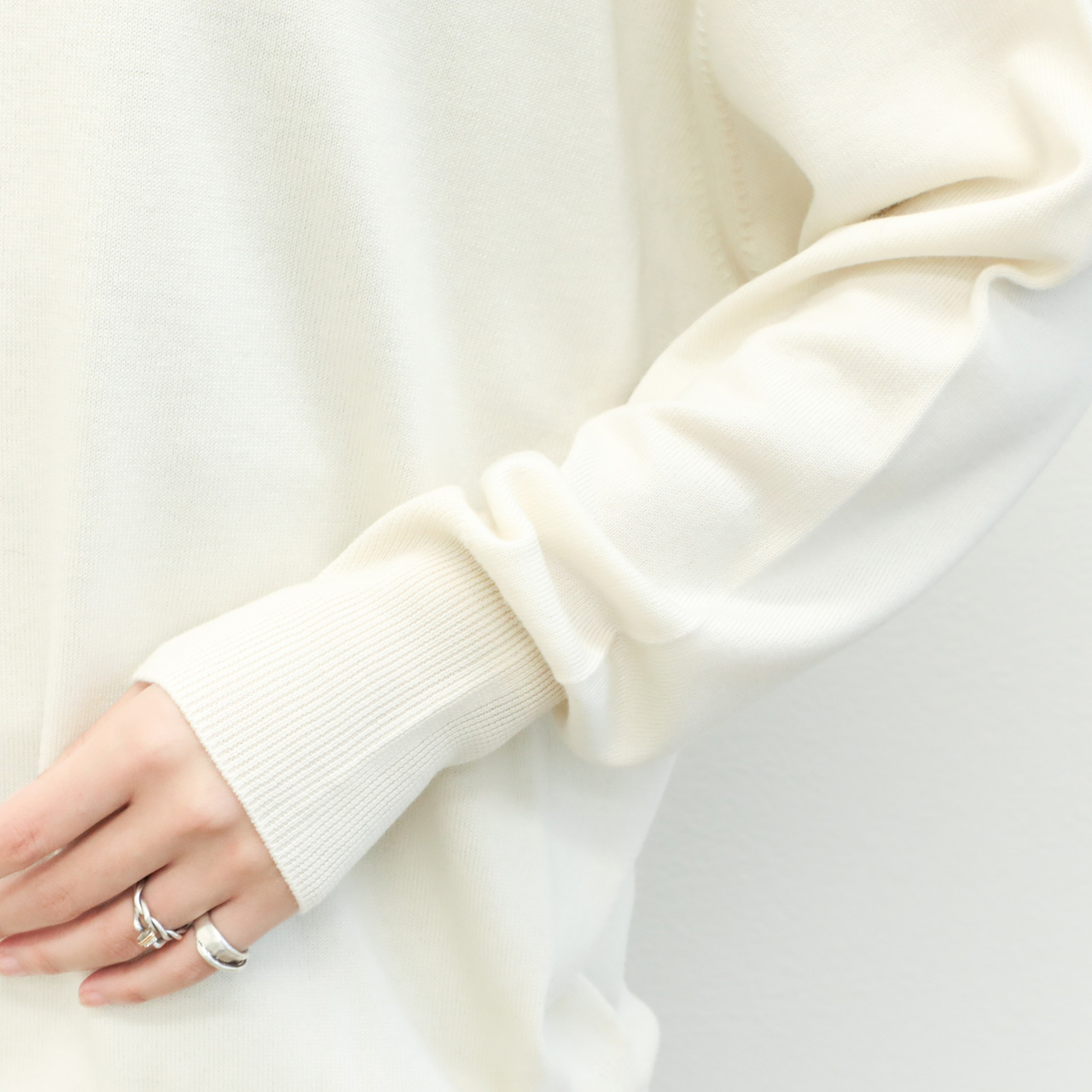 上質なエクストラファインメリノウールを使用したこちらは、絶妙なゆとりのオーバーサイズ感がポイント。