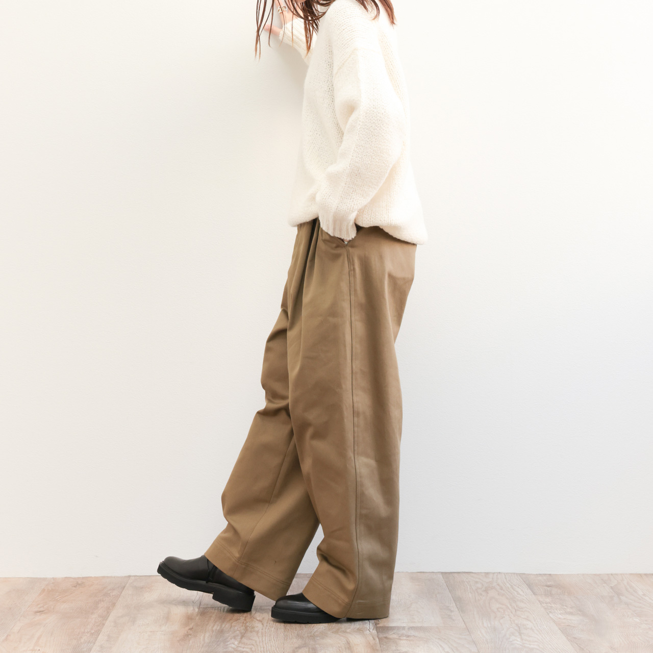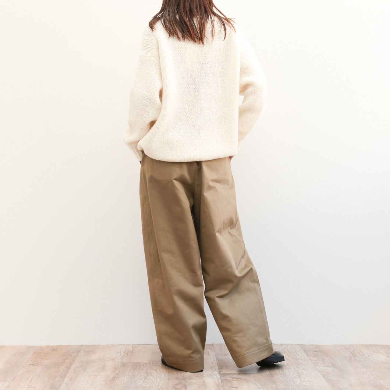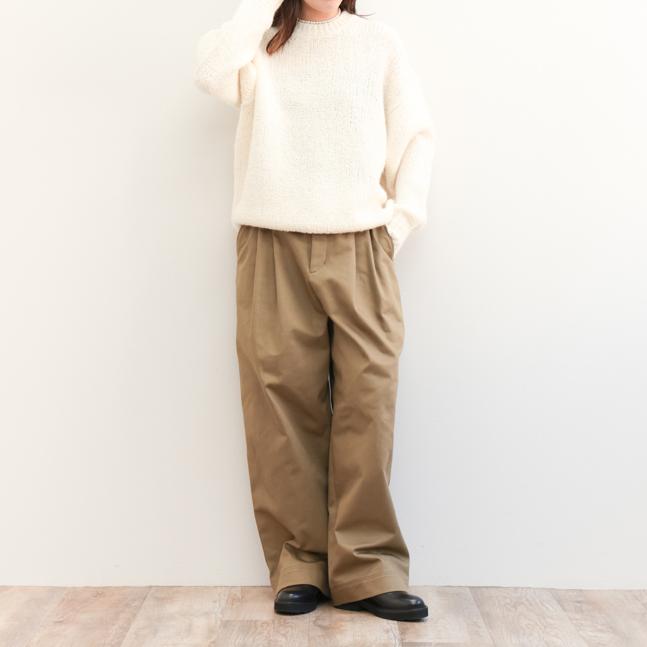 カットソーやシャツ、インナーの相性を問わずレイヤード可能で、きれいめにもカジュアルにも振ることができるニット。是非この使いやすさをご体感ください。